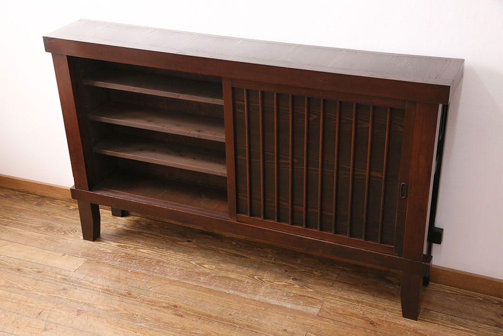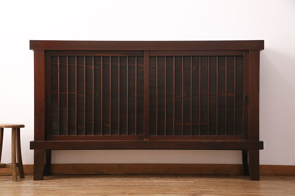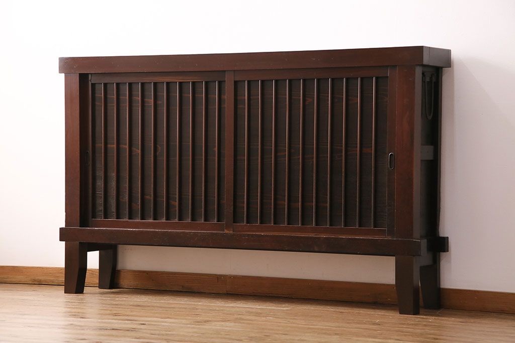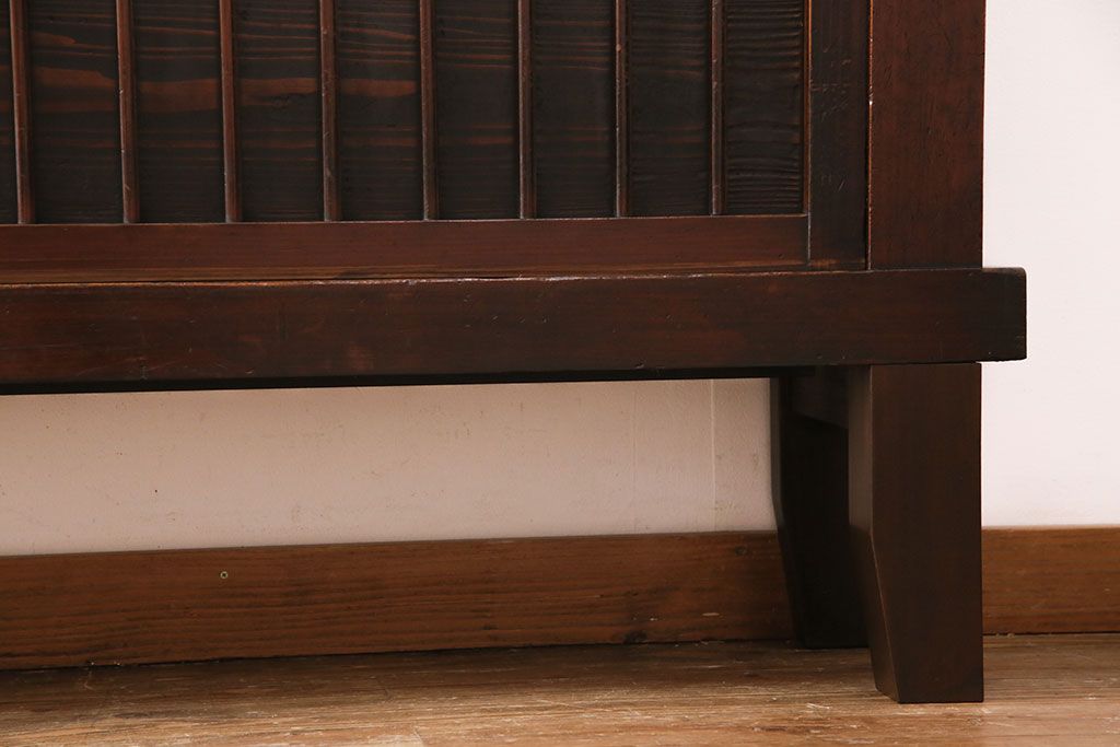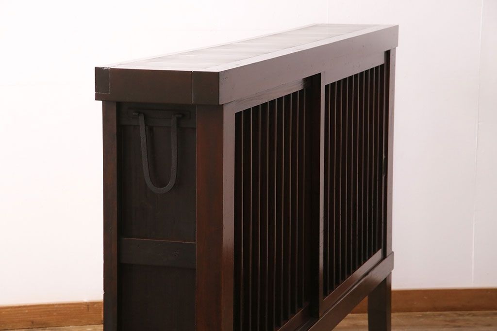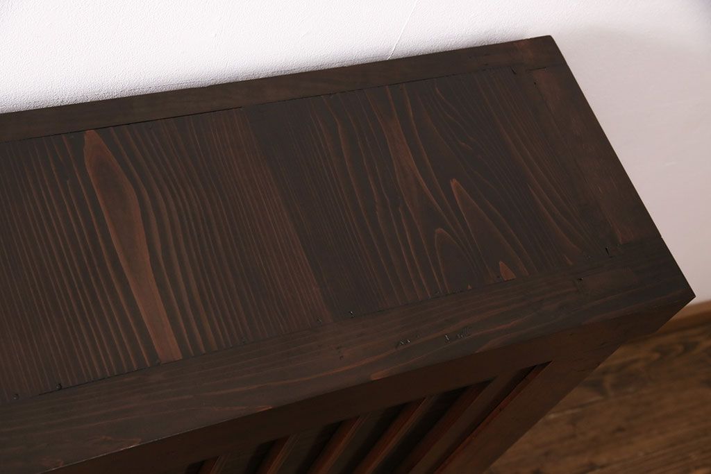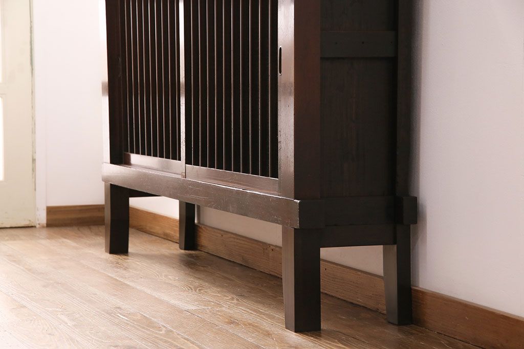 キャビネット・戸棚> 下駄箱 > 明治期の水屋箪笥をリペア&カスタム!収納部をセパレートさせ、棚板を新たに製作。框の耳の間を埋め木加工した天板を取り付け。1トーン落ち着いた色味に着色し仕上げ。(収納棚、戸棚、食器棚、下駄箱)