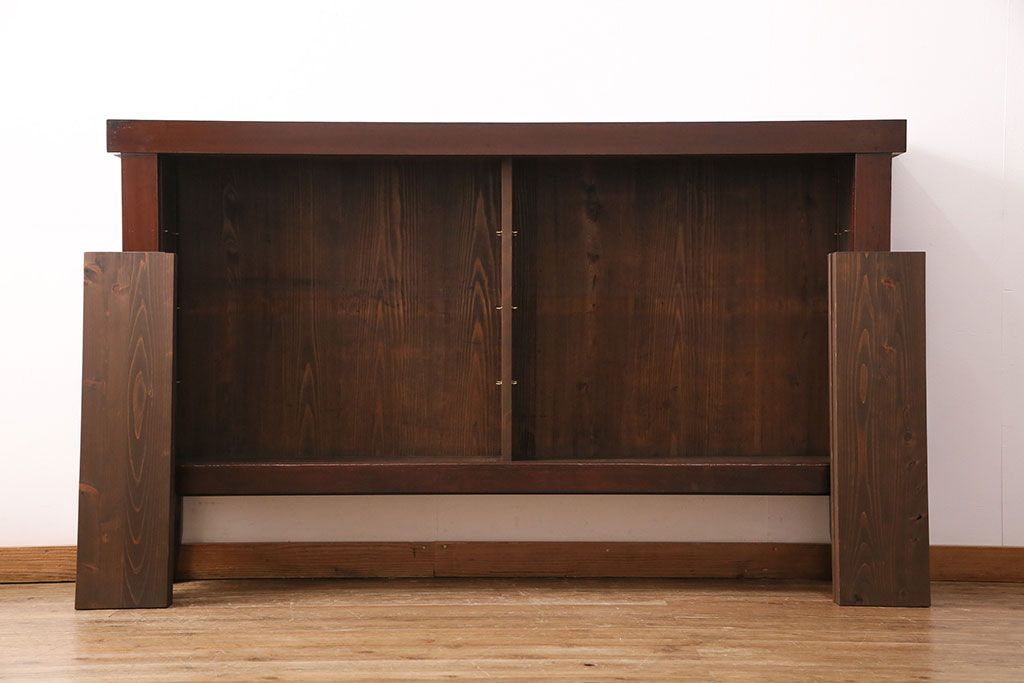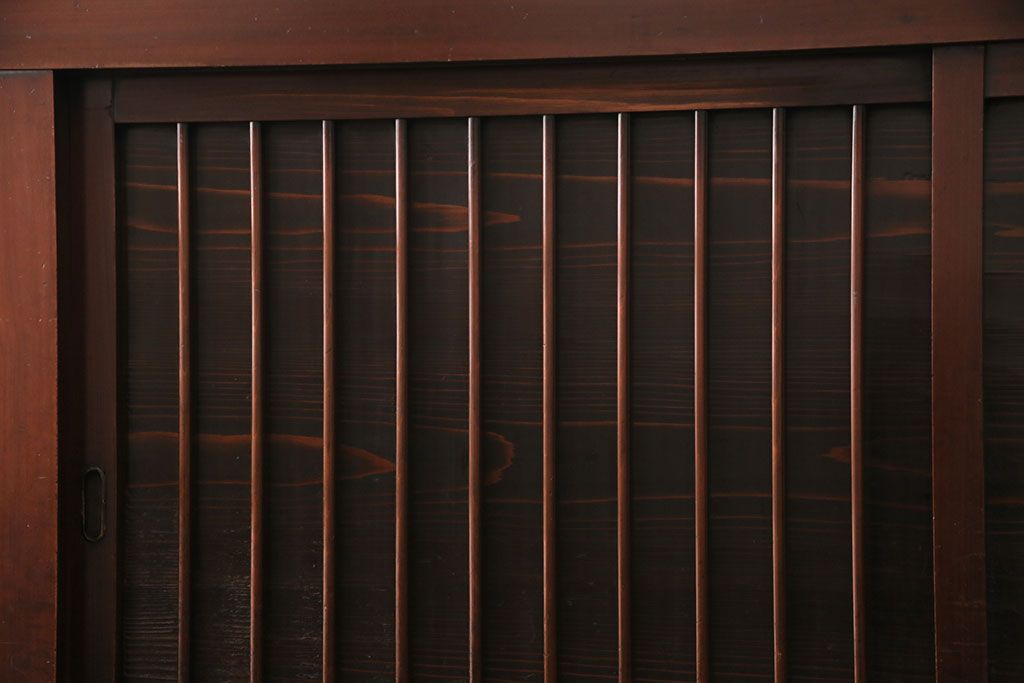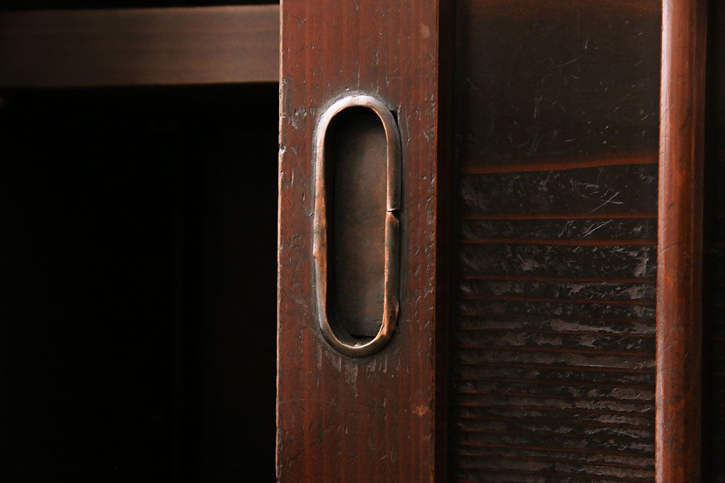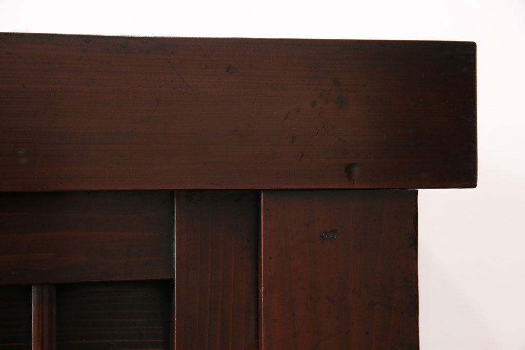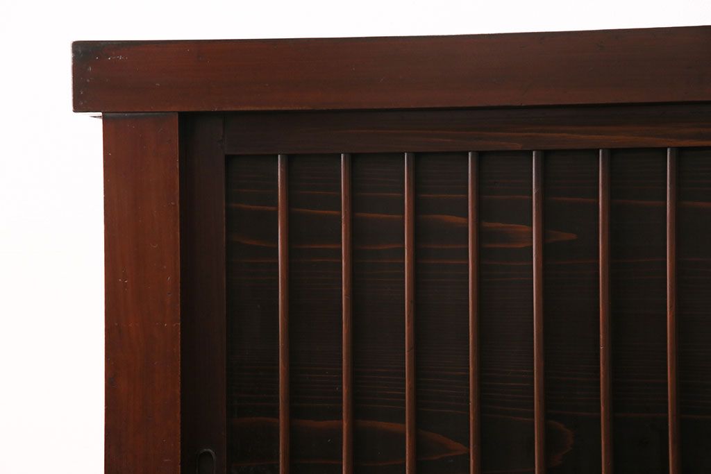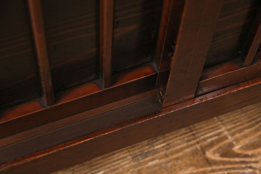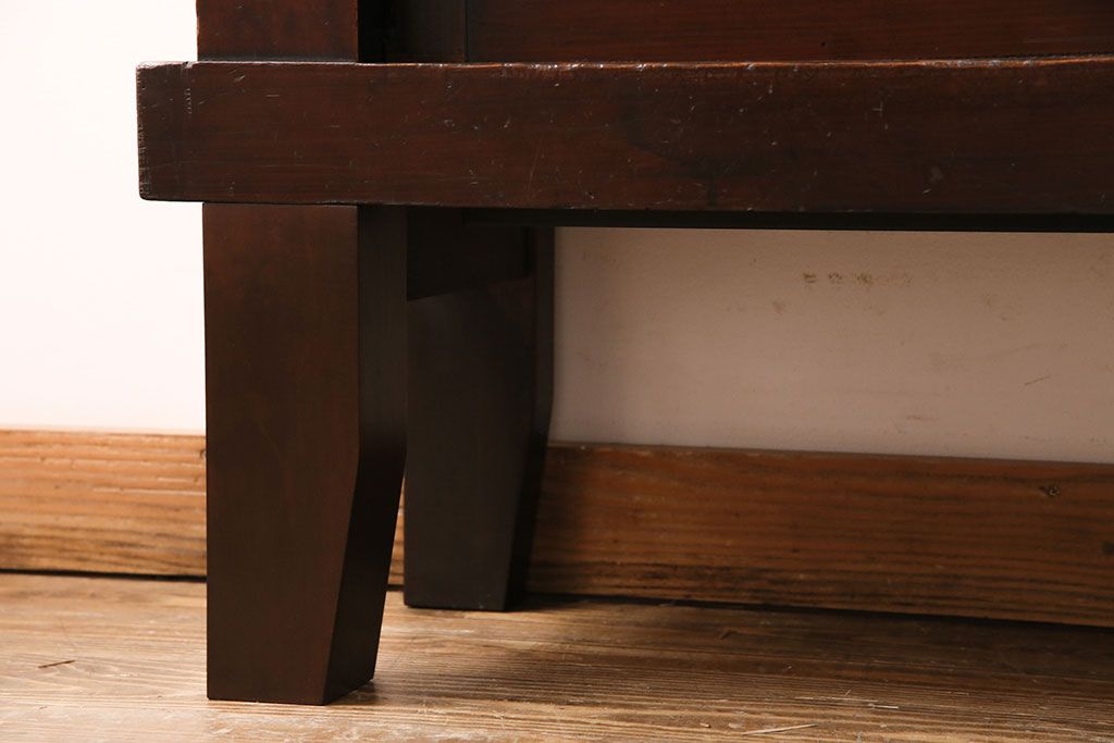 和箪笥> 水屋箪笥 > 明治期の水屋箪笥をリペア&カスタム!収納部をセパレートさせ、棚板を新たに製作。框の耳の間を埋め木加工した天板を取り付け。1トーン落ち着いた色味に着色し仕上げ。(収納棚、戸棚、食器棚、下駄箱)