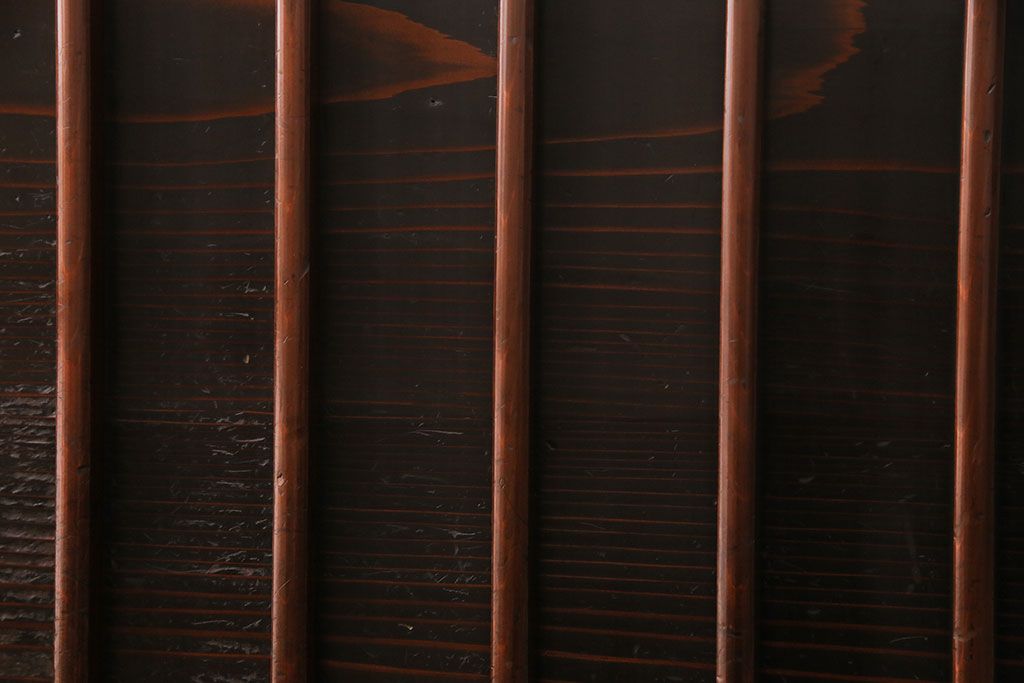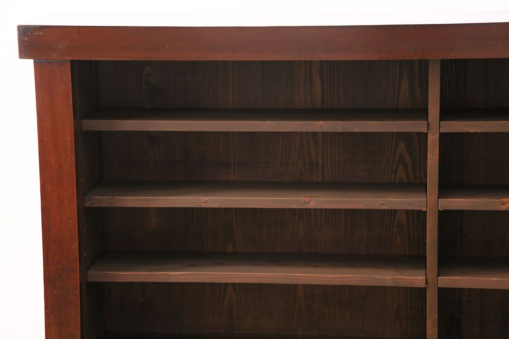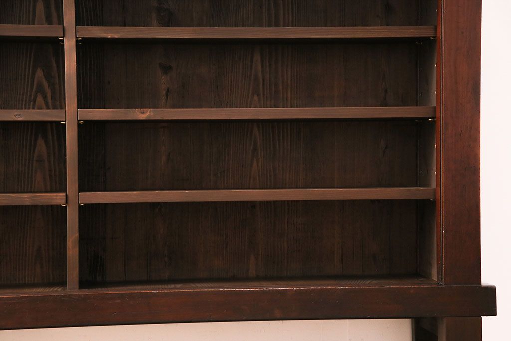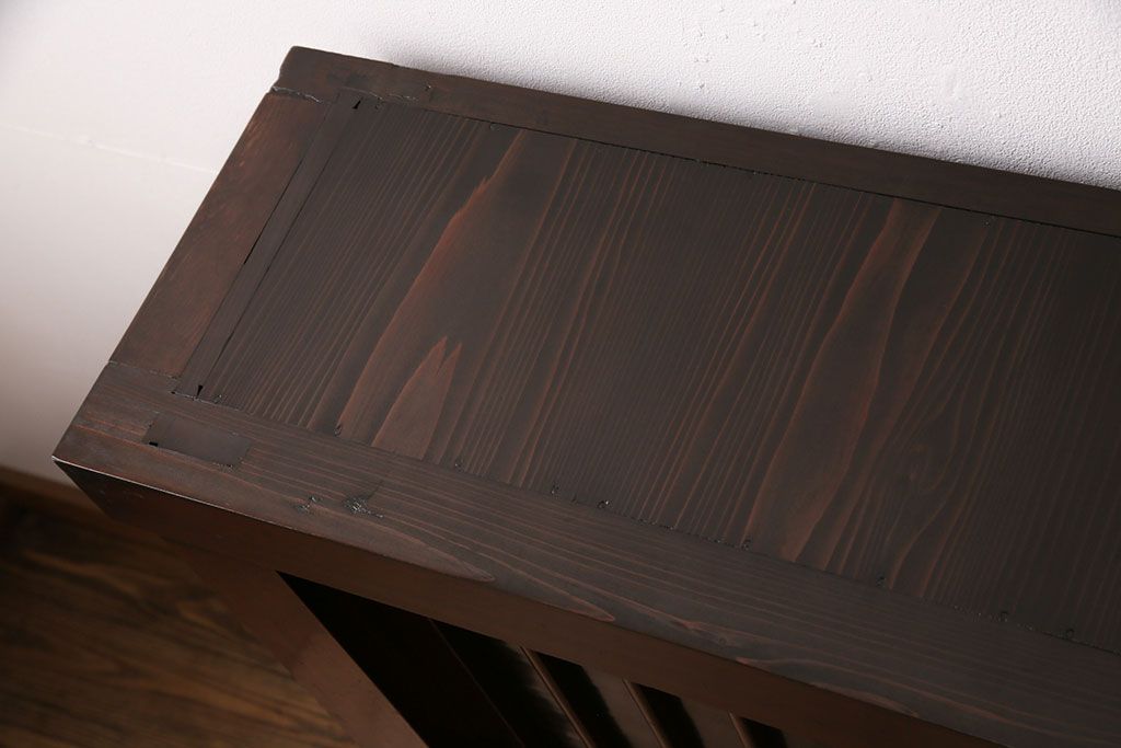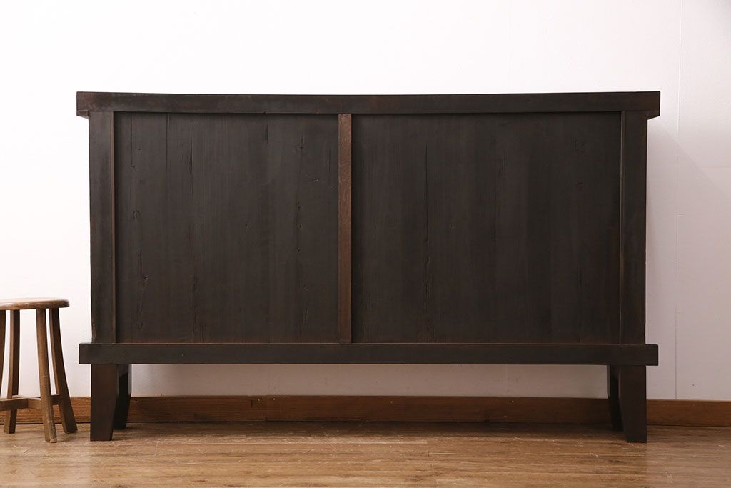 明治期の水屋箪笥をリペア&カスタム!収納部をセパレートさせ、棚板を新たに製作。框の耳の間を埋め木加工した天板を取り付け。1トーン落ち着いた色味に着色し仕上げ。(収納棚、戸棚、食器棚、下駄箱)