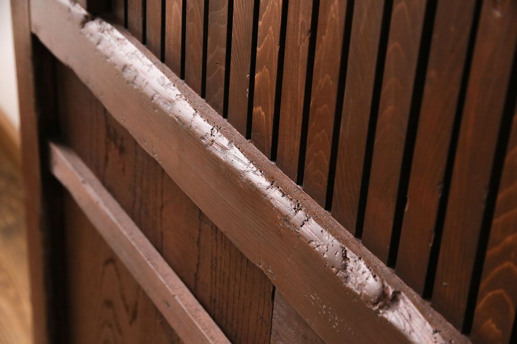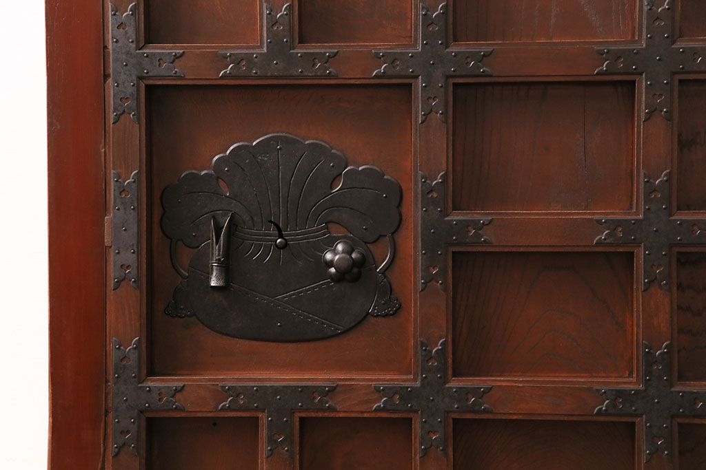 明治期の蔵戸をリペア&カスタム!設置場所に合わせてリサイズ。金具は黒色に着色。(玄関戸、引き戸、建具)