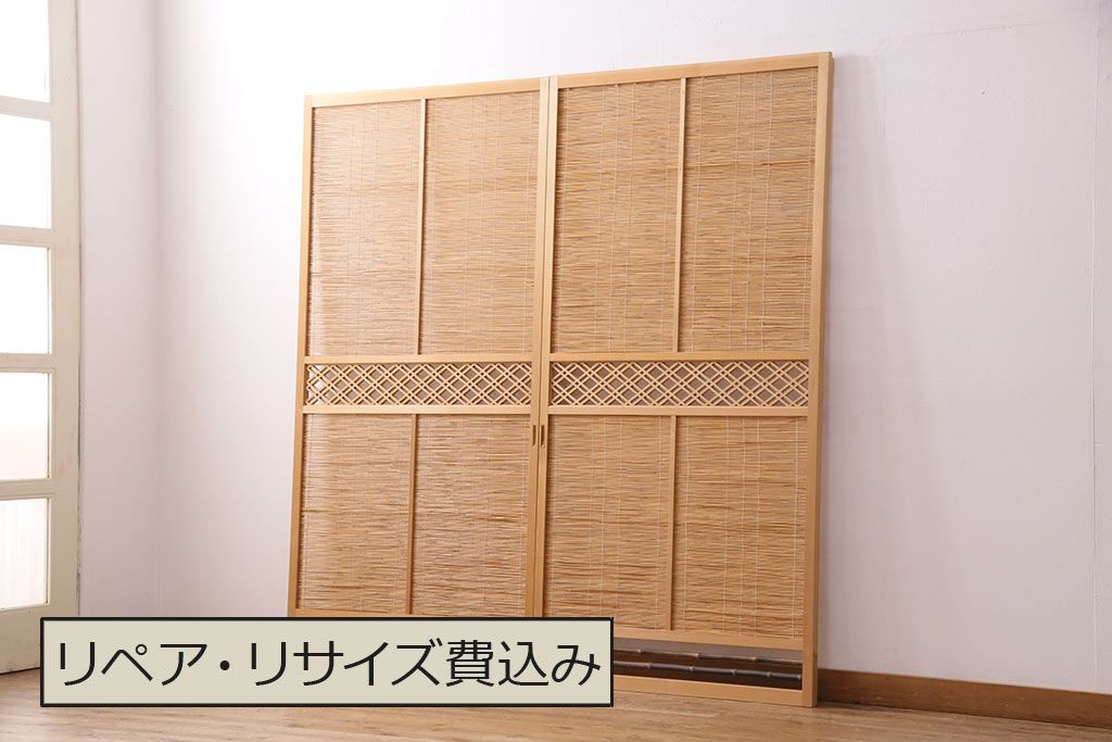 アンティーク建具 上手物! 涼しげな空間作りにおすすめの御簾戸2枚セット(簾戸、簀戸、葭戸、夏障子、夏戸、葦戸)(R-049523)