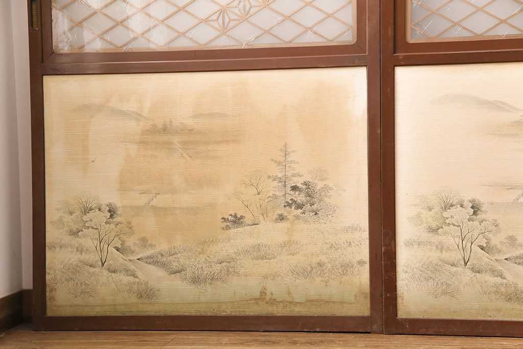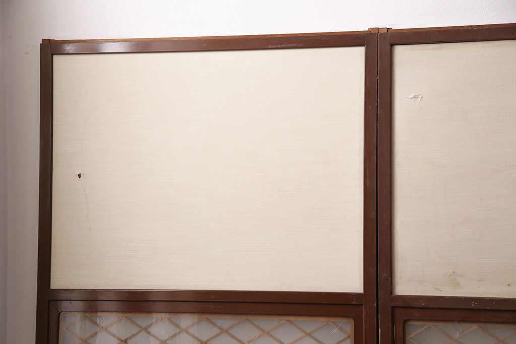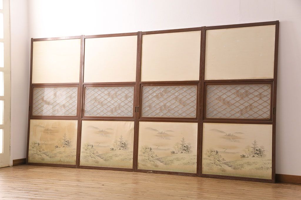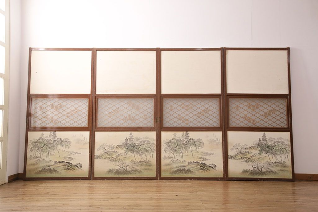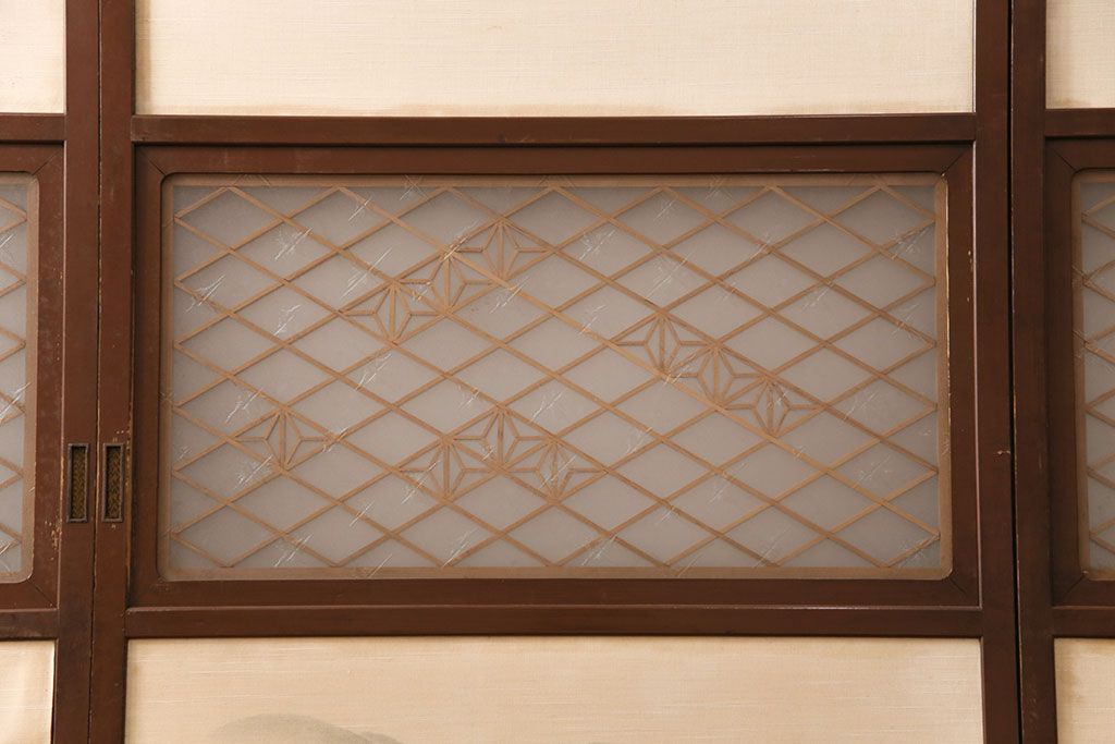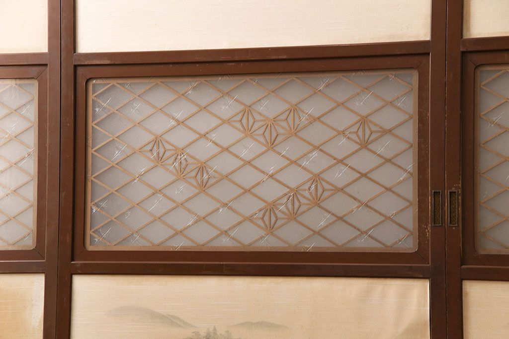 ドア・建具> ふすま > アンティーク建具 昭和後期 和の趣あふれる組子入りふすま4枚セット(引き戸、ガラス帯戸)(R-049651)