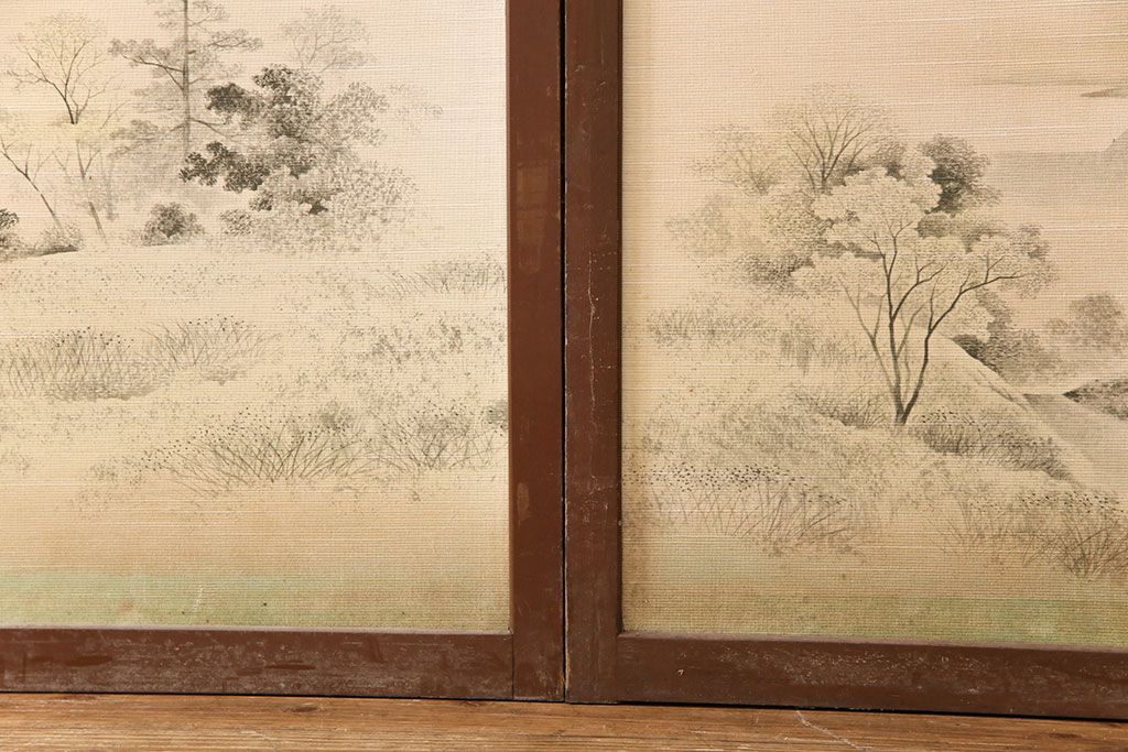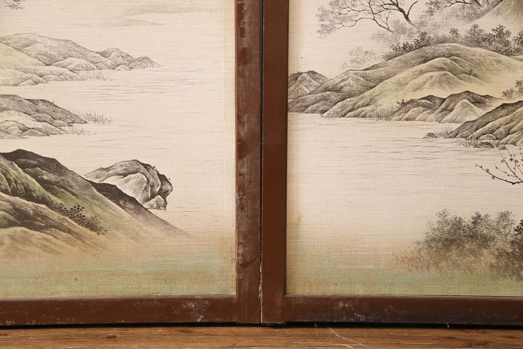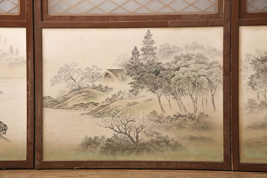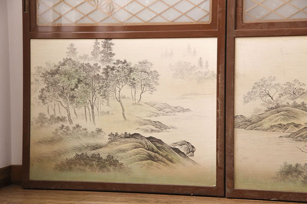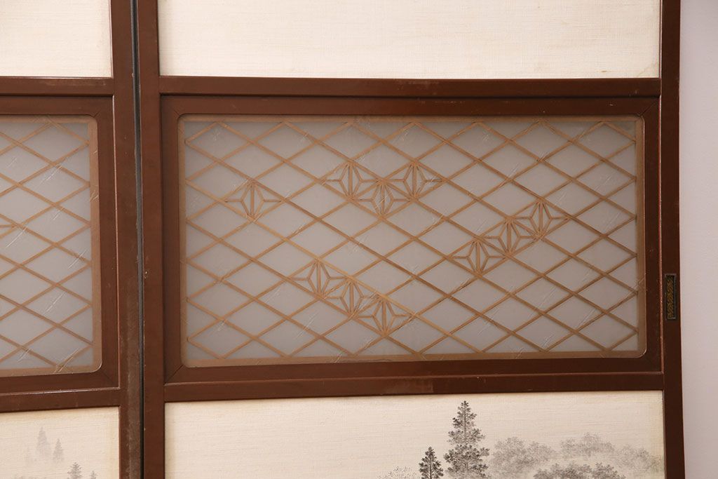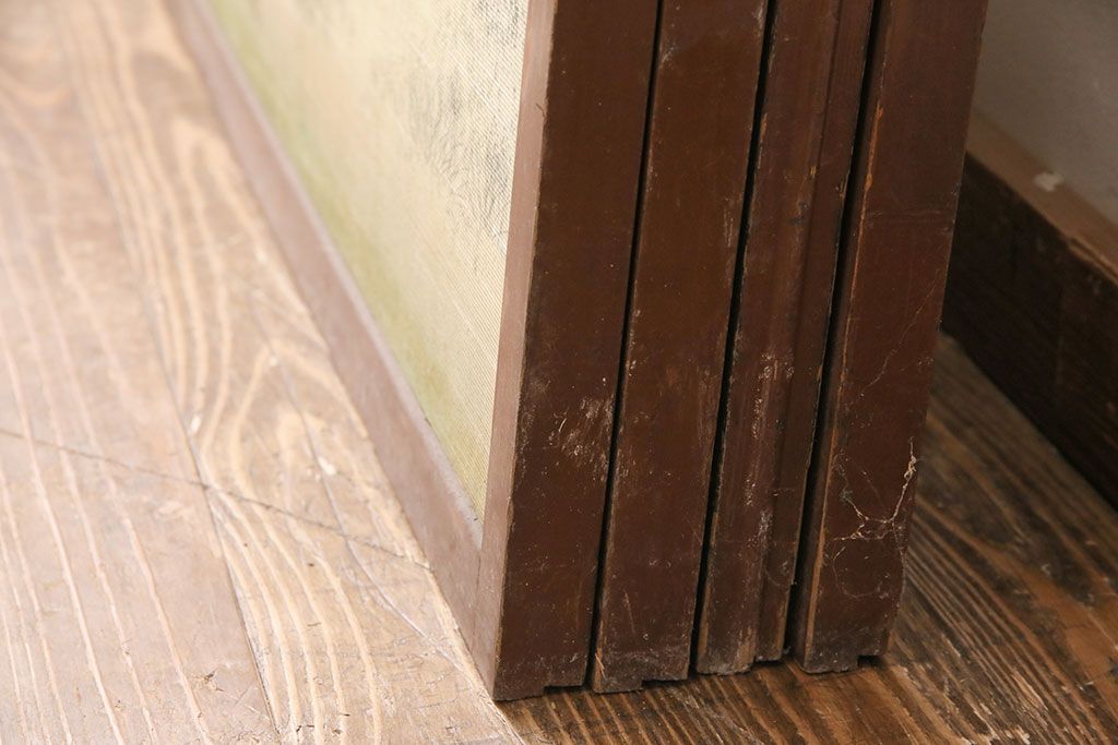ドア・建具> ふすま > アンティーク建具 昭和後期 和の趣あふれる組子入りふすま4枚セット(引き戸、ガラス帯戸)(R-049651)
