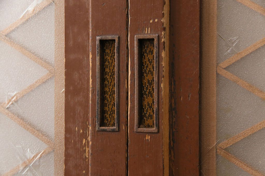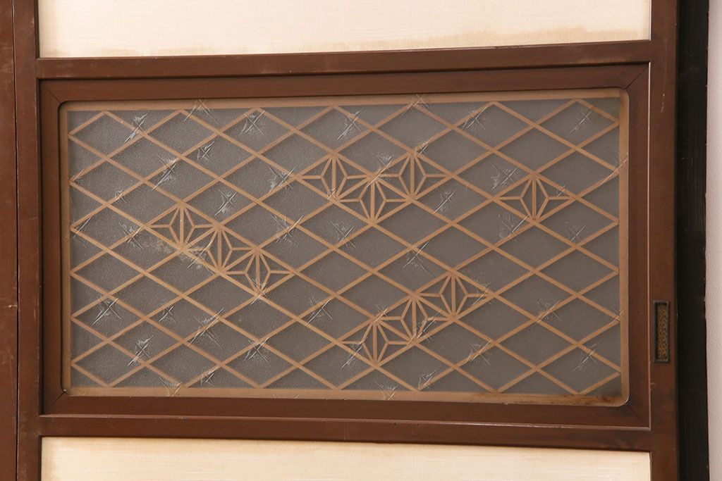アンティーク建具 昭和後期 和の趣あふれる組子入りふすま4枚セット(引き戸、ガラス帯戸)(R-049651)