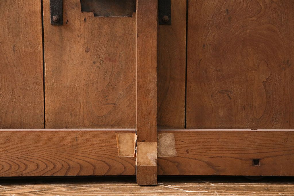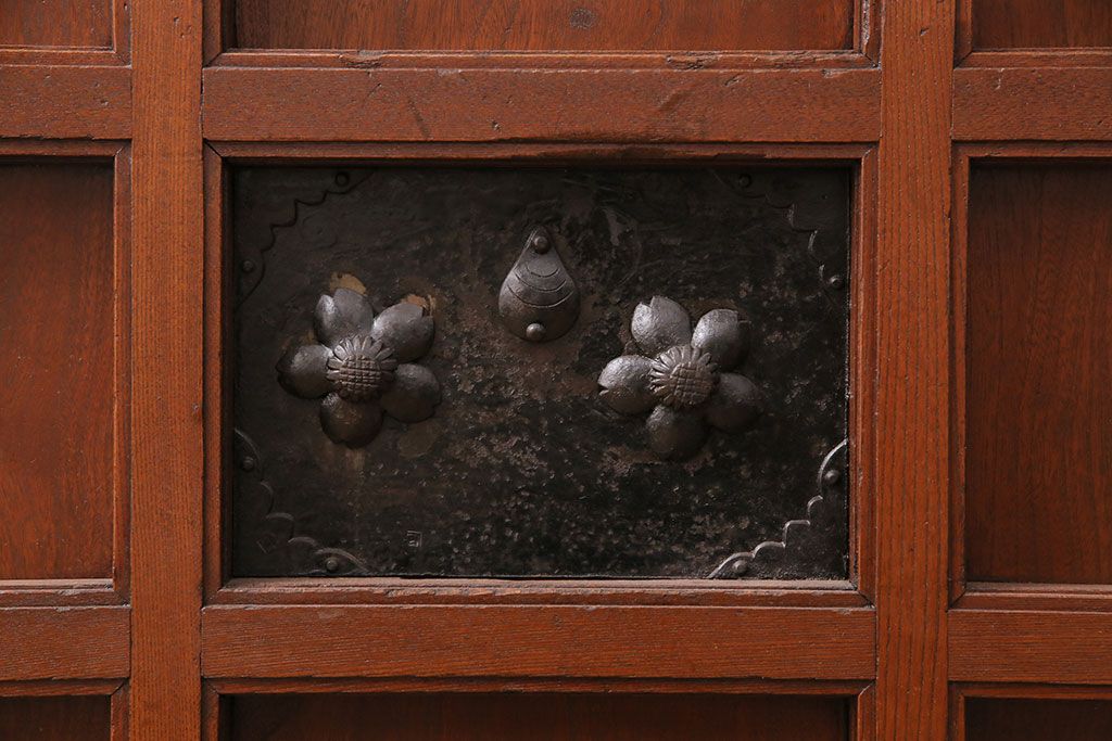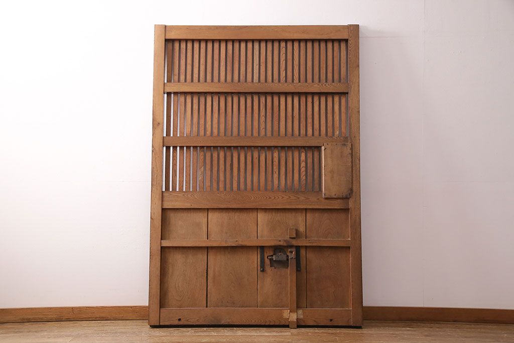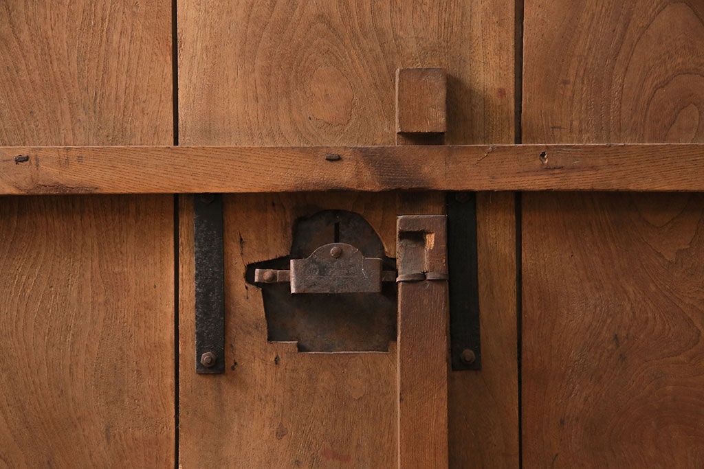 アンティーク建具 総ケヤキ材 和の趣あふれる重厚な佇まいが魅力の蔵戸(玄関戸、引き戸)(R-049871)