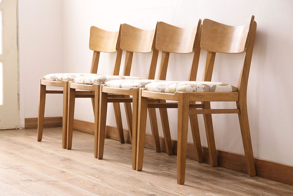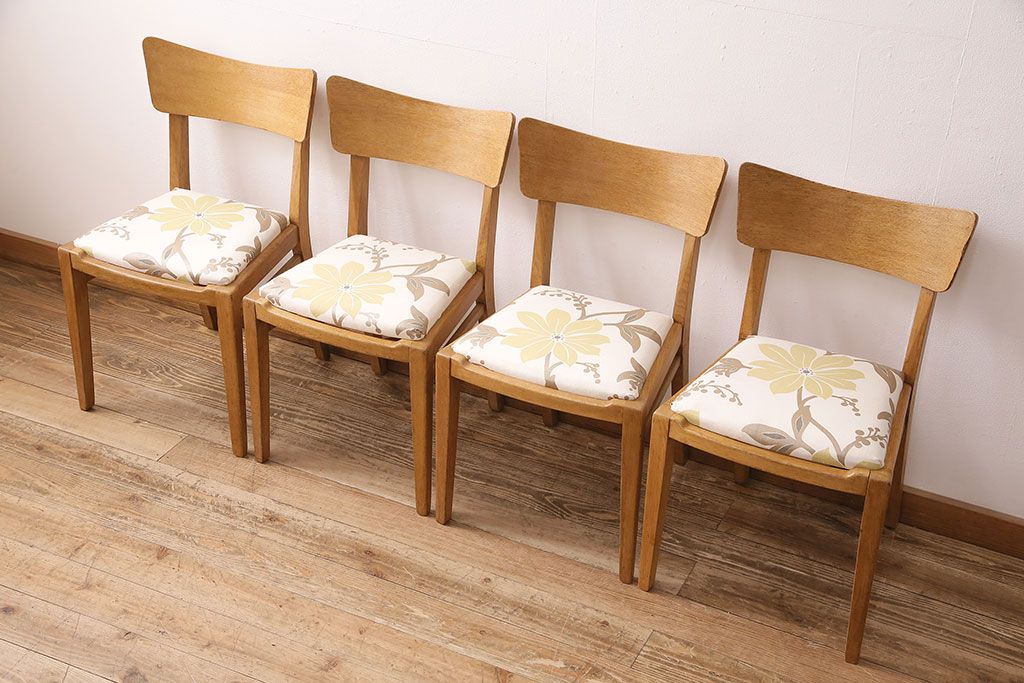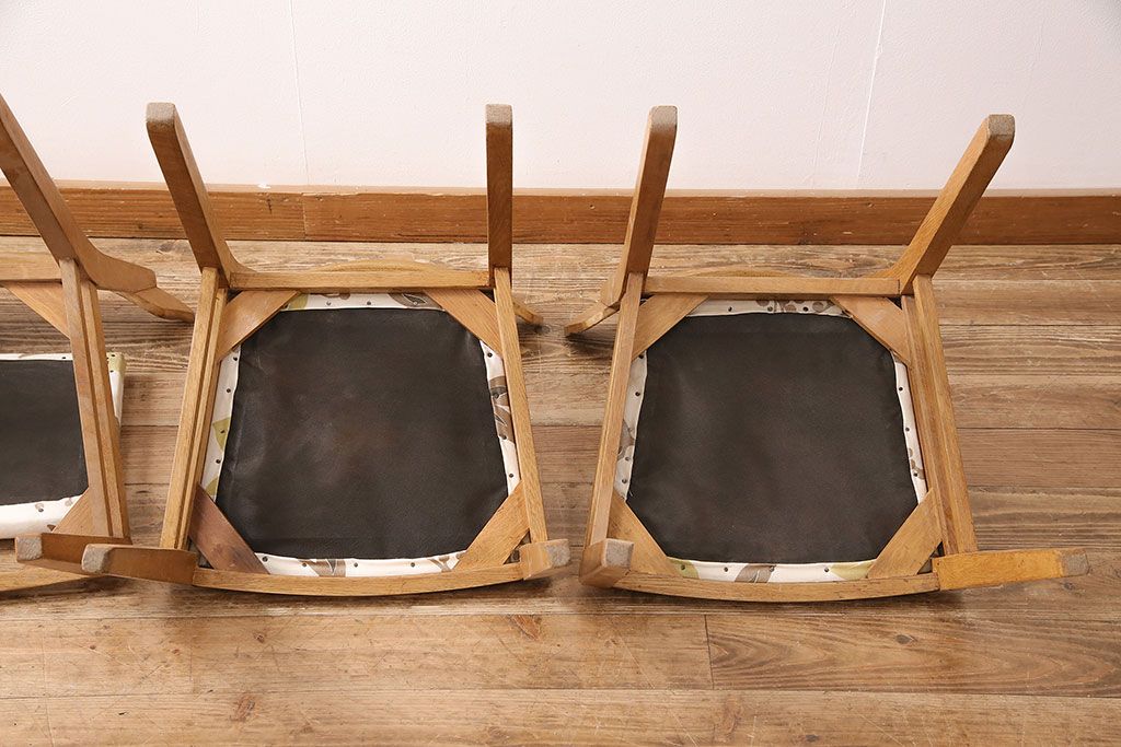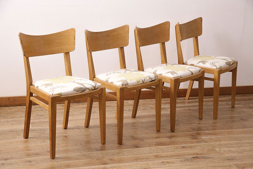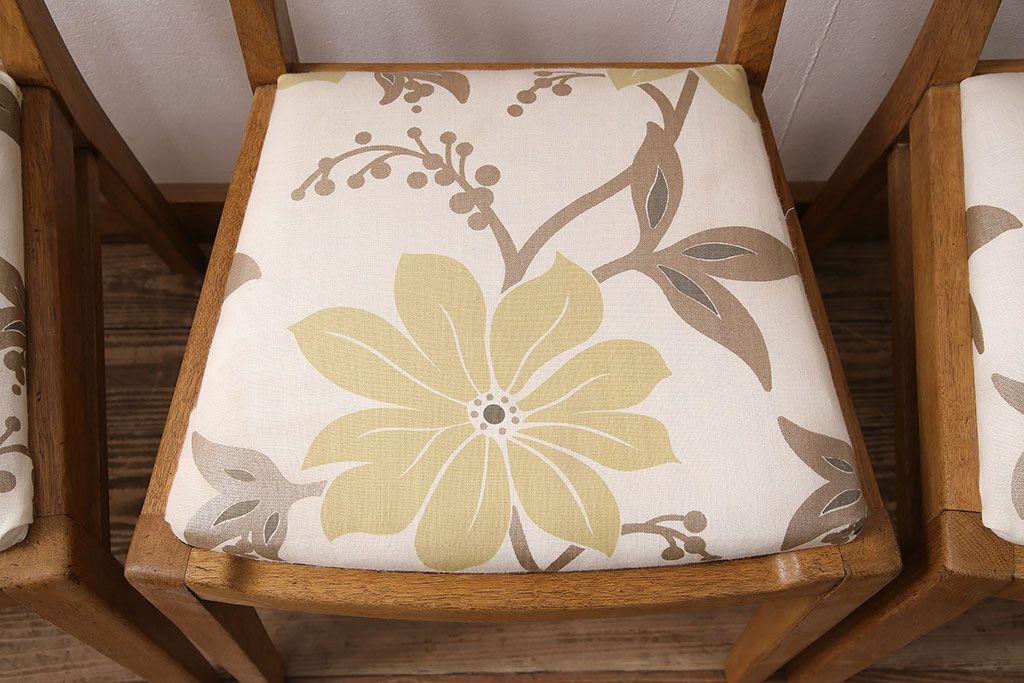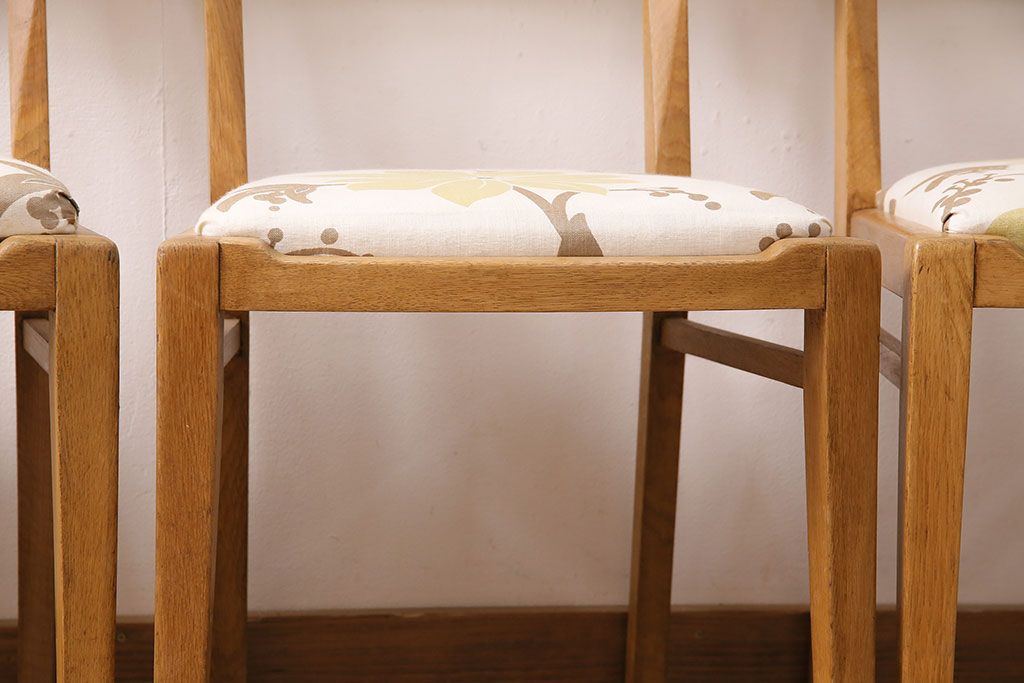状態が気になる方には現状販売はおすすめできませんので、慎重なご検討をお願いいたします。イギリスヴィンテージ オーク材 花柄座面のチェア4脚セット(ダイニングチェア、椅子)(R-048101)です。