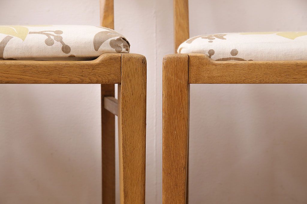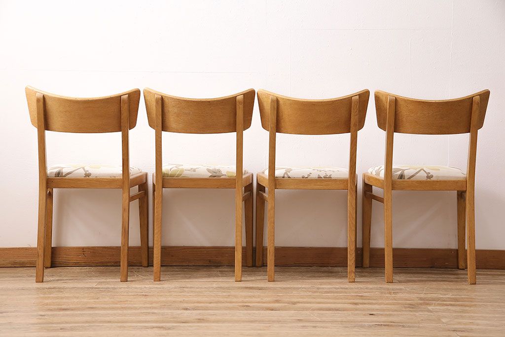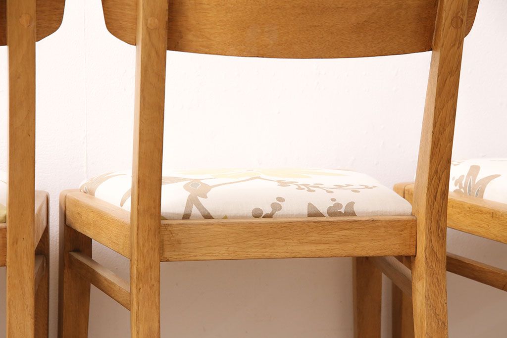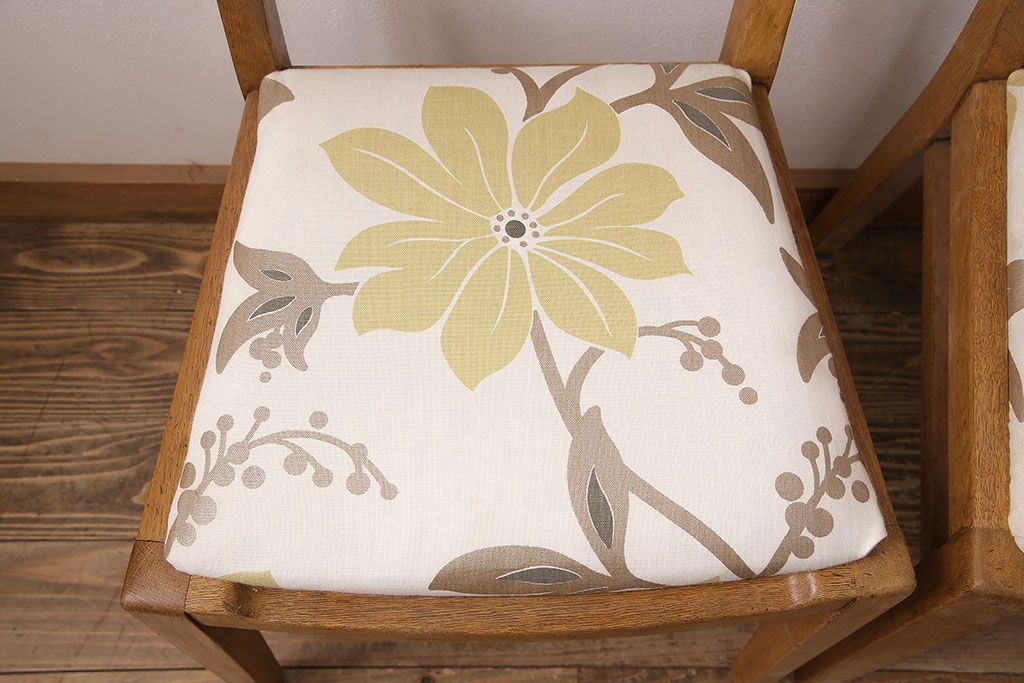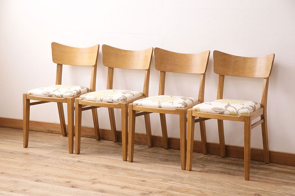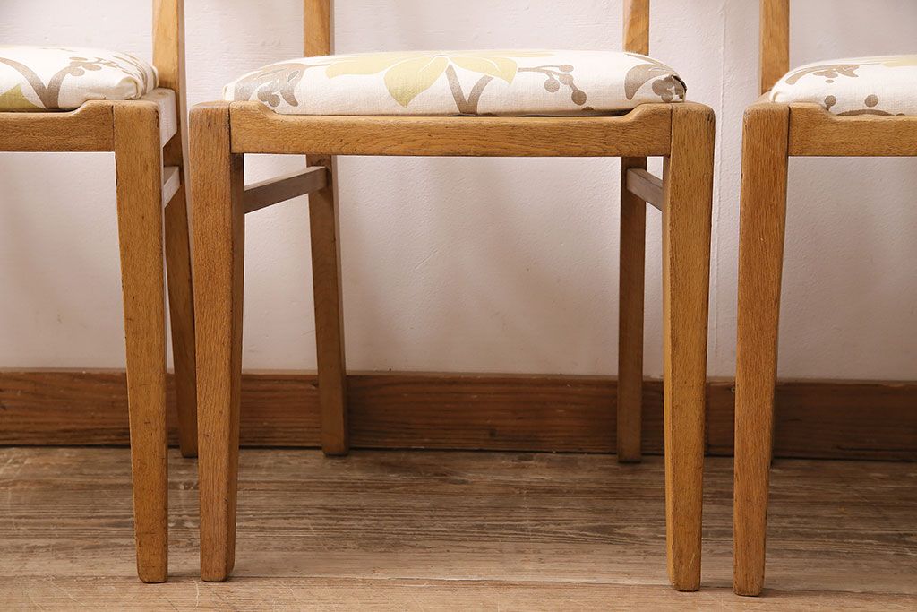 状態が気になる方には現状販売はおすすめできませんので、慎重なご検討をお願いいたします。イギリスヴィンテージ オーク材 花柄座面のチェア4脚セット(ダイニングチェア、椅子)(R-048101)です。