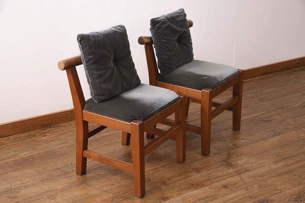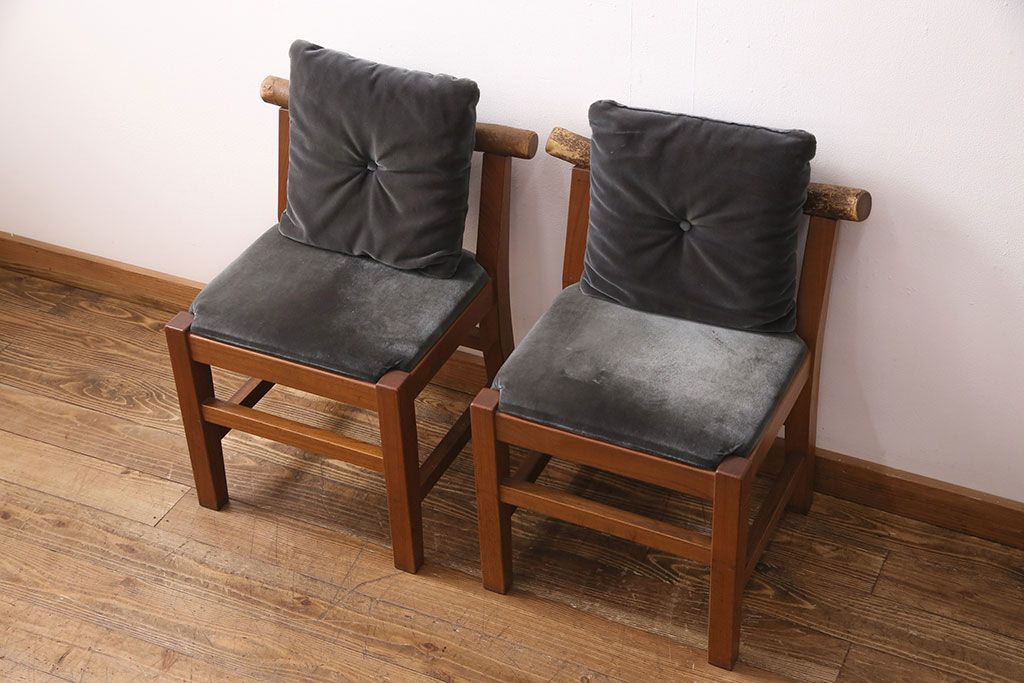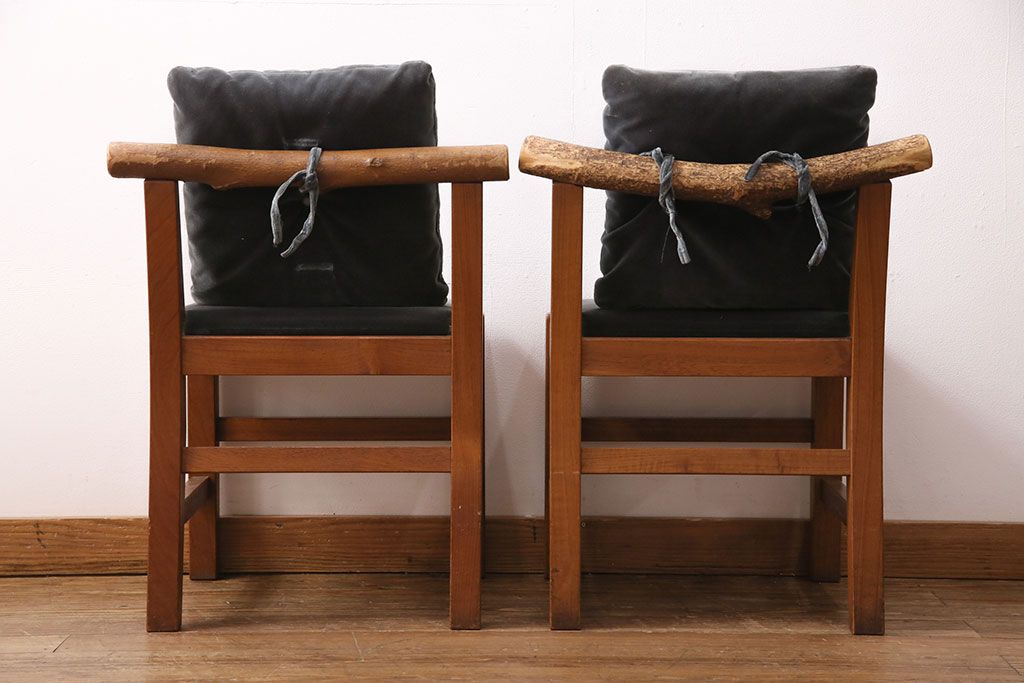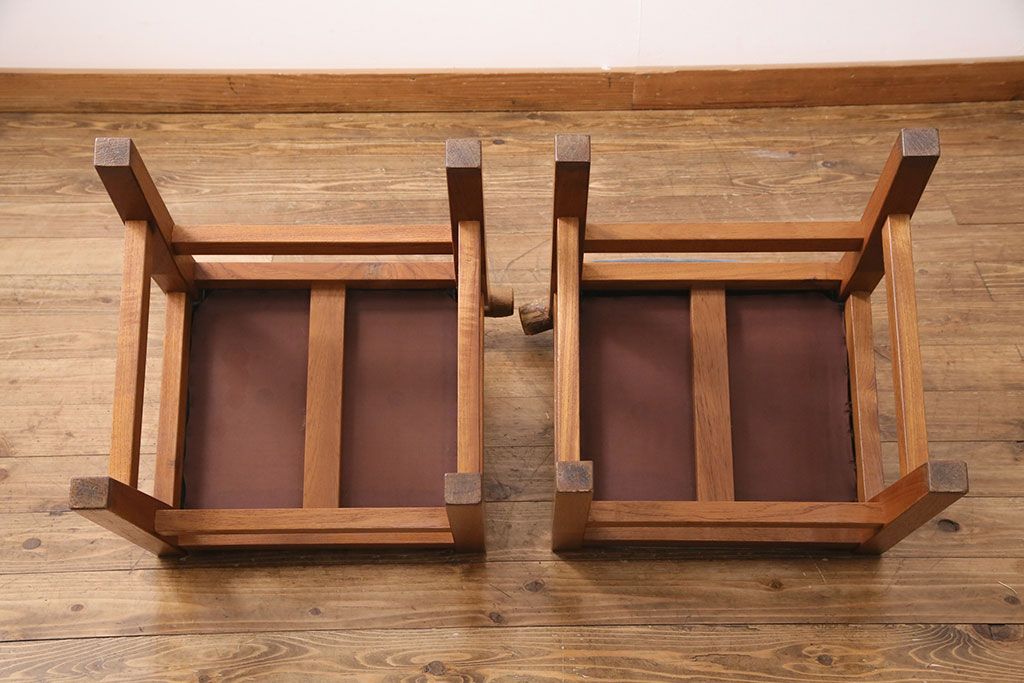 民芸家具 > 和製ヴィンテージ 民芸家具 チーク材 どっしりとした重厚感のあるチェア2脚セット(ダイニングチェア、椅子、ビンテージ、バラ売り可能)(R-049258)