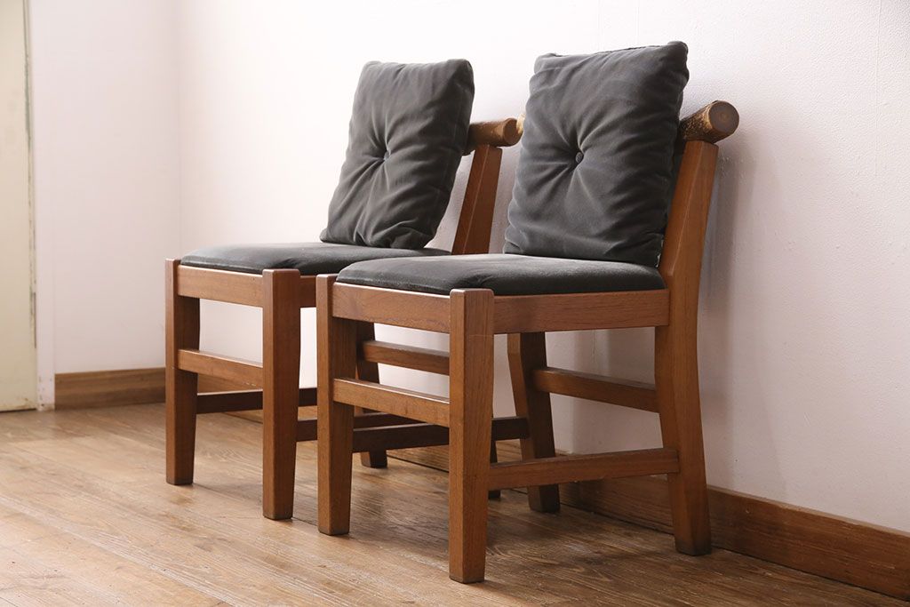 和製ヴィンテージ 民芸家具 チーク材 どっしりとした重厚感のあるチェア2脚セット(ダイニングチェア、椅子、ビンテージ、バラ売り可能)(R-049258)