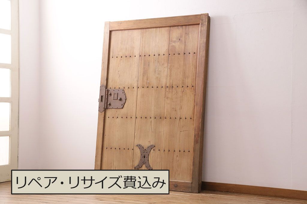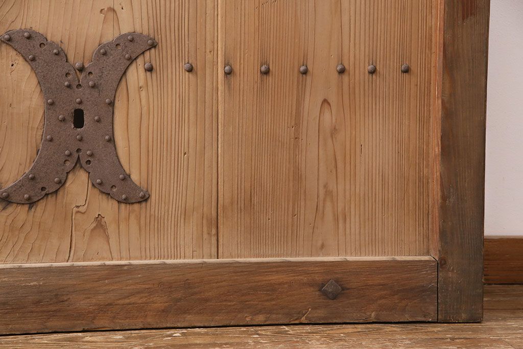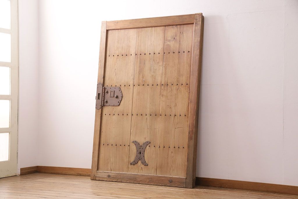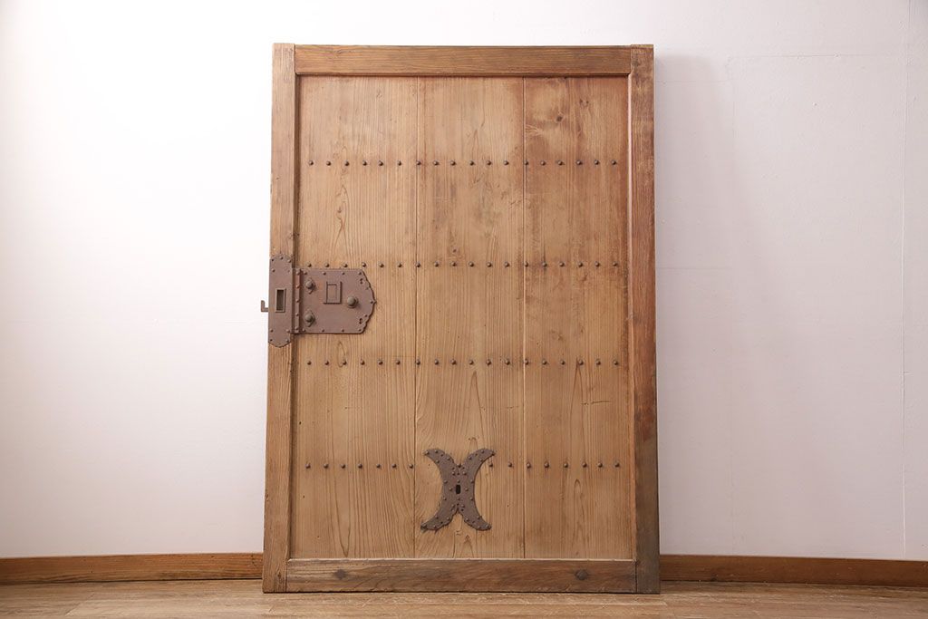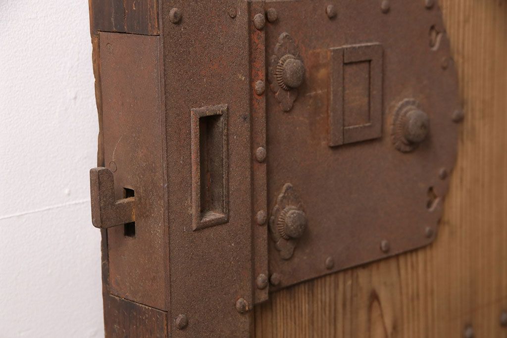 アンティーク建具 ヒノキ材 金具が立派な蔵戸(引き戸、玄関戸、建具)(R-049870)