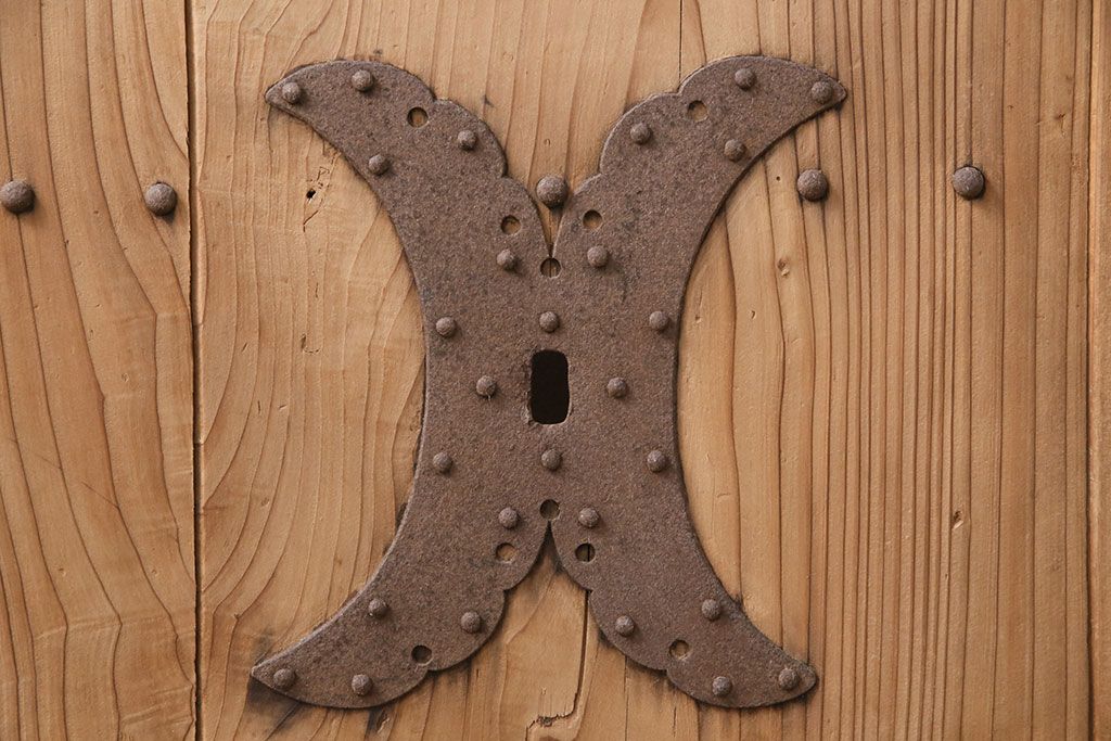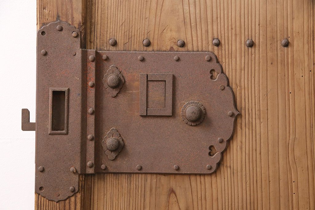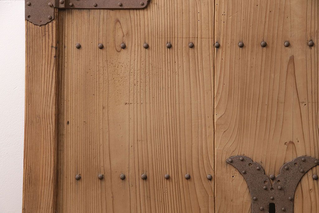 ラフジュ工房> ドア・建具> 玄関ドア・玄関戸 > アンティーク建具 ヒノキ材 金具が立派な蔵戸(引き戸、玄関戸、建具)(R-049870)