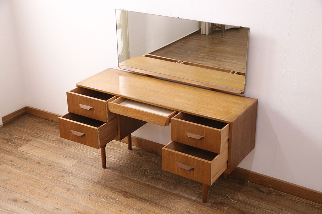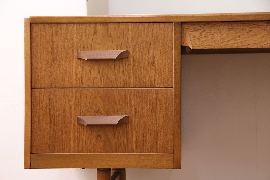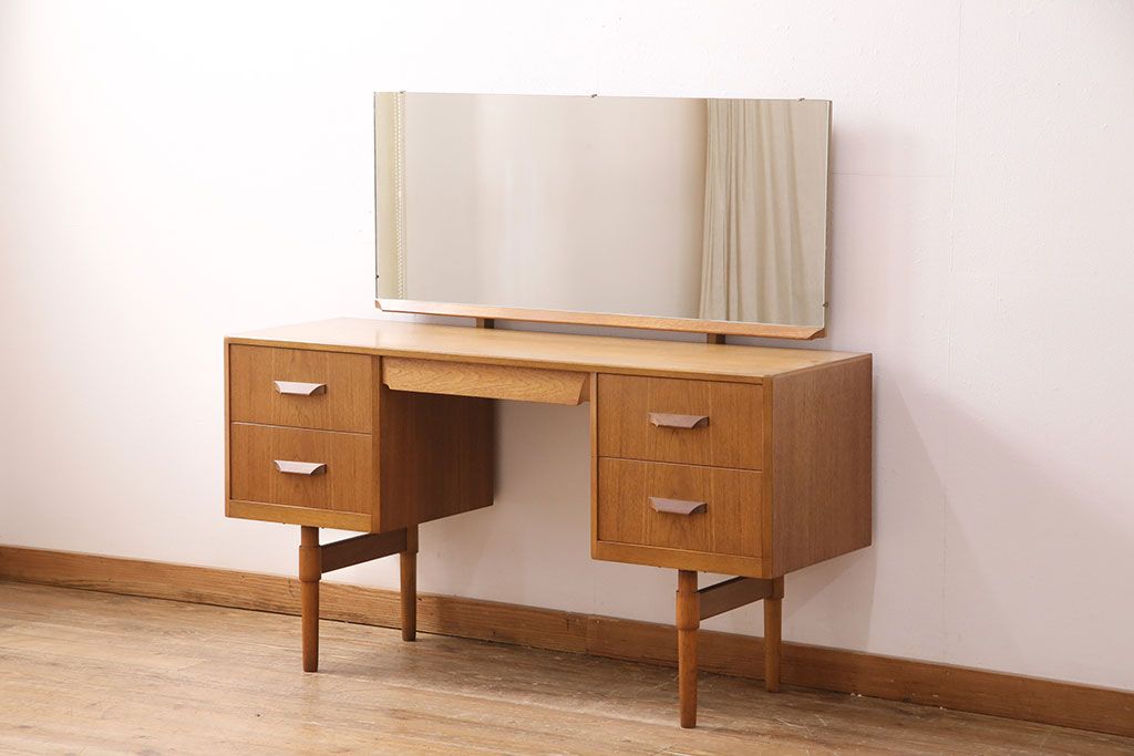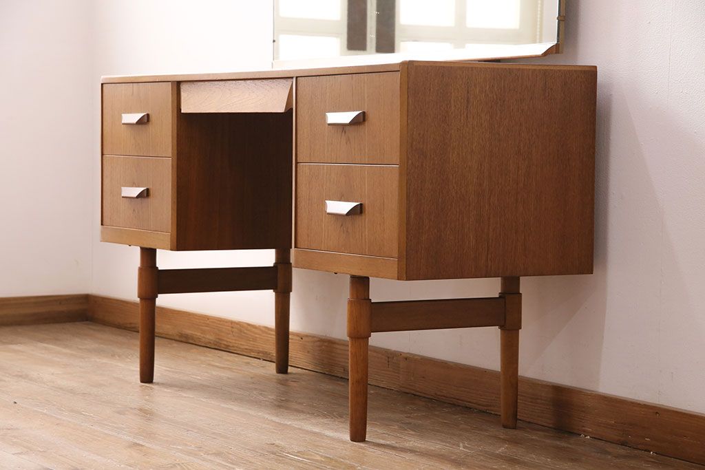 イギリスビンテージ HERBERT E GIBBS(ハーバート・E・ギブス) スタイリッシュなデザインが魅力的なチーク材製ドレッシングテーブル(ドレッサー、化粧台、引き出し、ヴィンテージ)(R-049848)