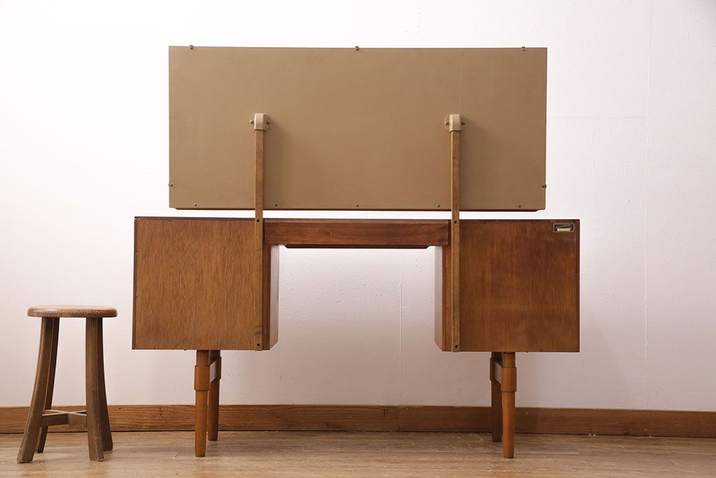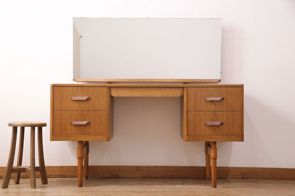 ドレッサー・鏡台> ドレッサー > イギリスビンテージ HERBERT E GIBBS(ハーバート・E・ギブス) スタイリッシュなデザインが魅力的なチーク材製ドレッシングテーブル(ドレッサー、化粧台、引き出し、ヴィンテージ)(R-049848)