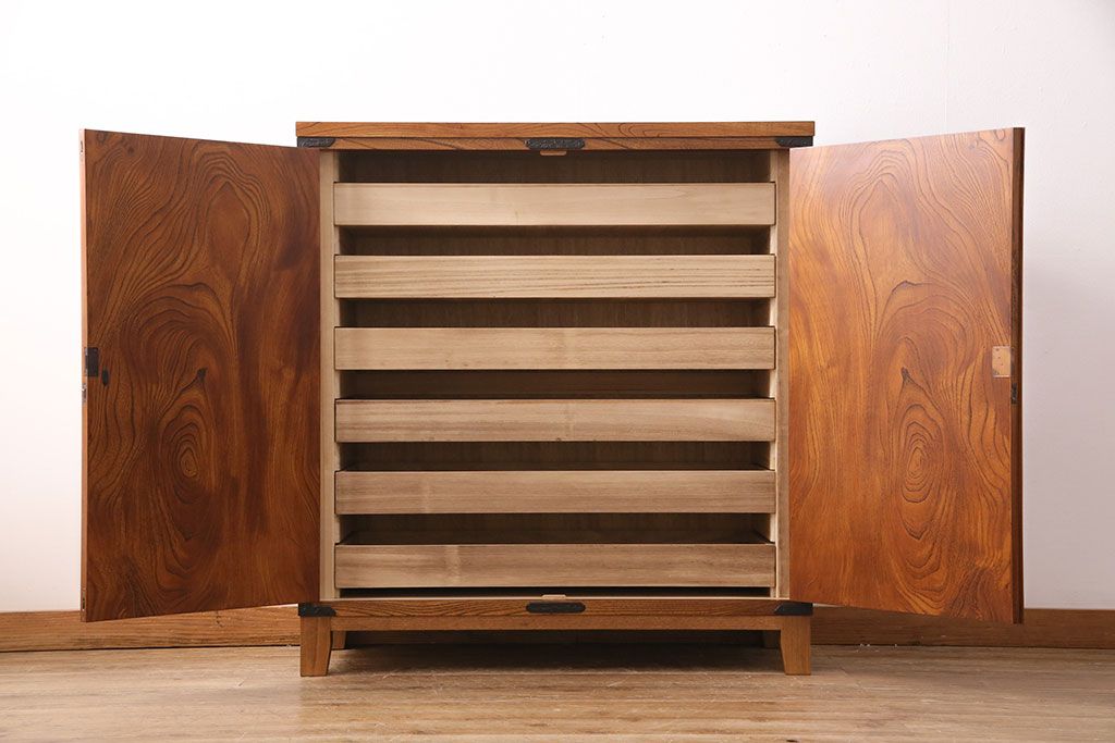 民芸家具 > 中古 伝統民芸 岩谷堂箪笥 脚付きリメイク 2wayが便利な衣装盆付きのサイドボード(引き出し、観音扉、衣装タンス、着物箪笥)(R-049852)