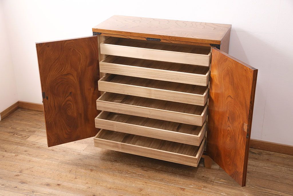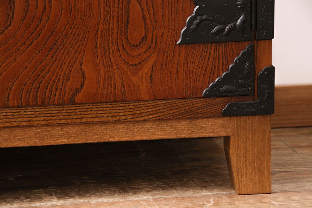 和箪笥 > 中古 伝統民芸 岩谷堂箪笥 脚付きリメイク 2wayが便利な衣装盆付きのサイドボード(引き出し、観音扉、衣装タンス、着物箪笥)(R-049852)