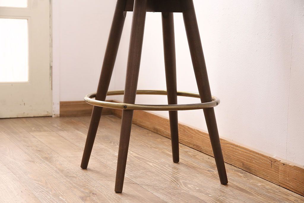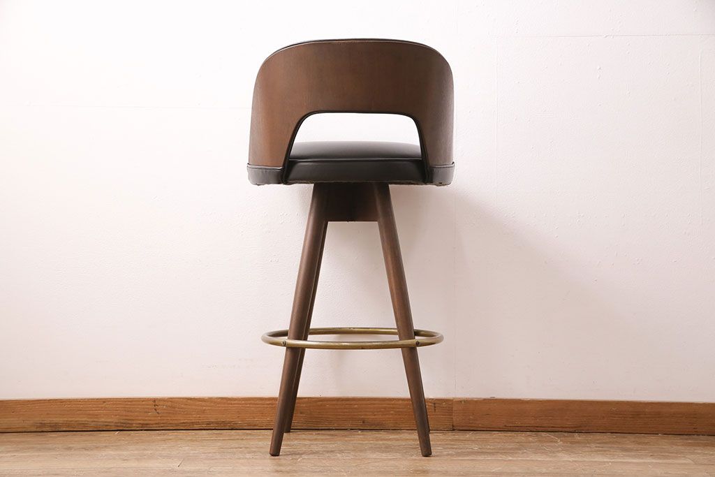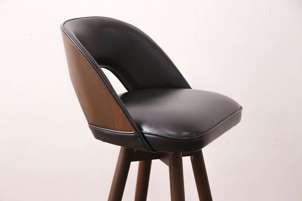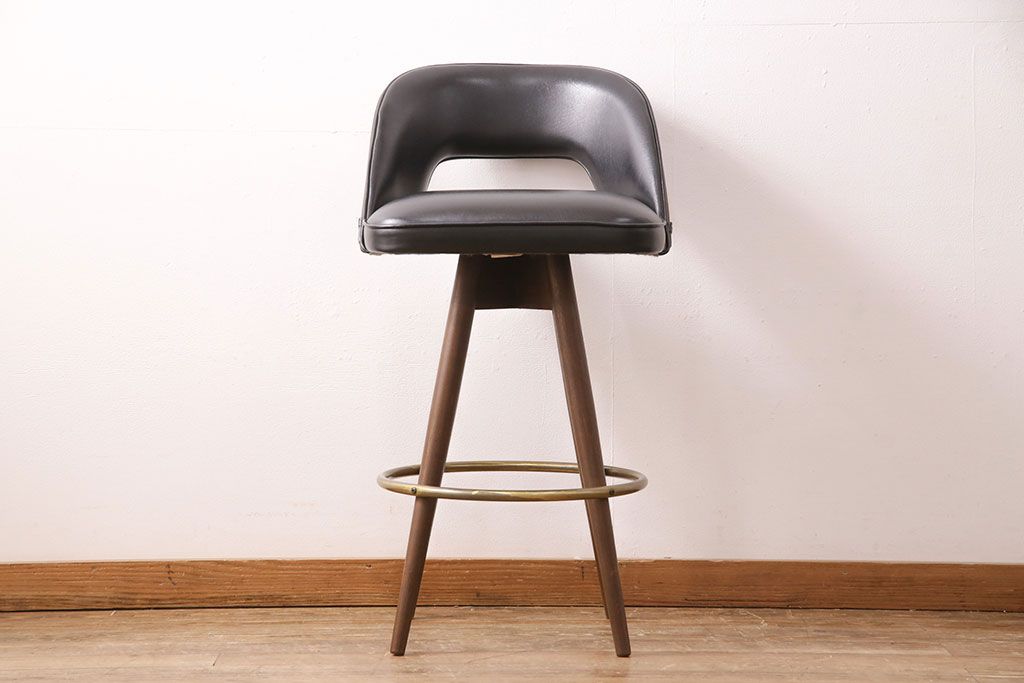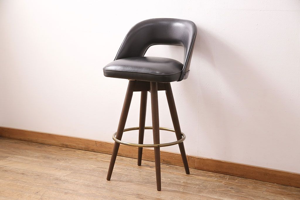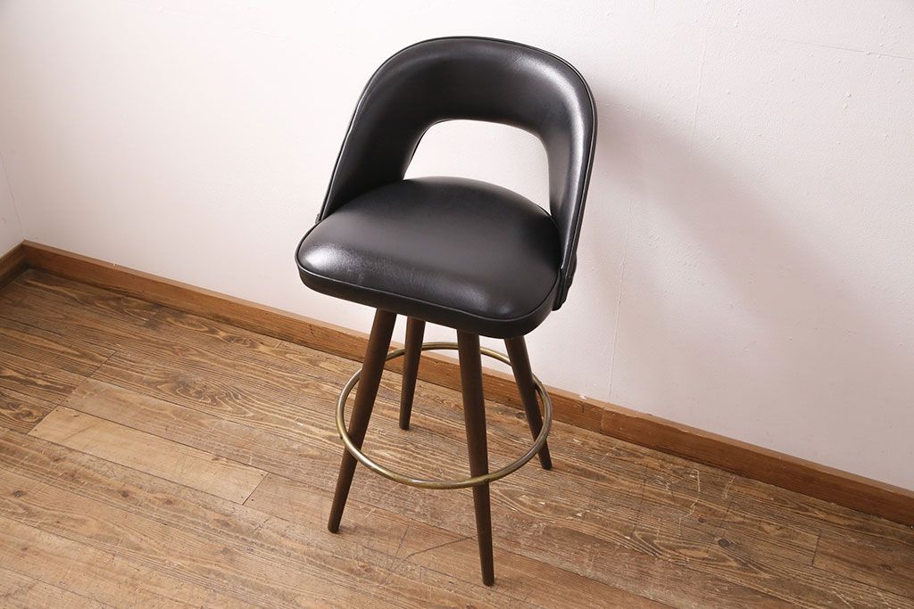 椅子・ベンチ> スツール > 中古 海外ビンテージ アメリカヴィンテージ メンズライクなデザインが格好良い回転チェア(カウンタースツール、ハイスツール、ハイチェア、合皮)(R-049907)