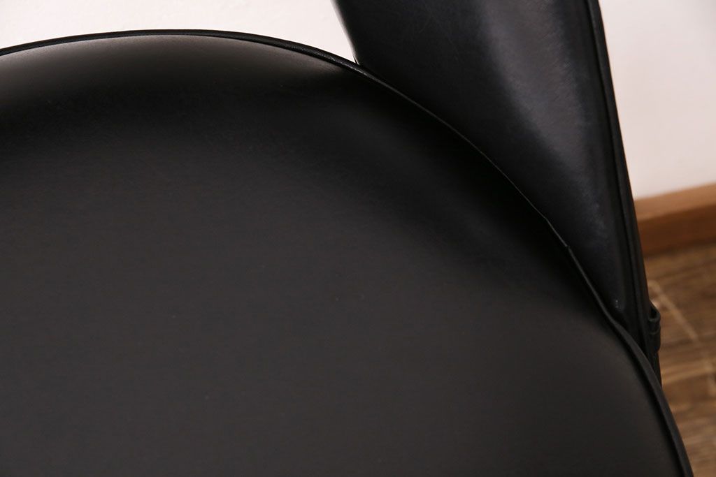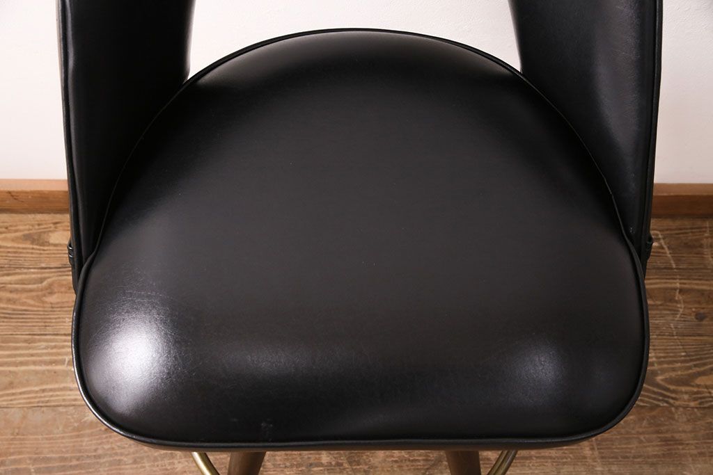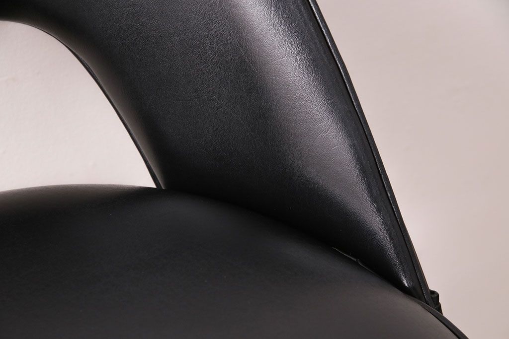 ブラックカラーの合皮素材座面と細長い脚、