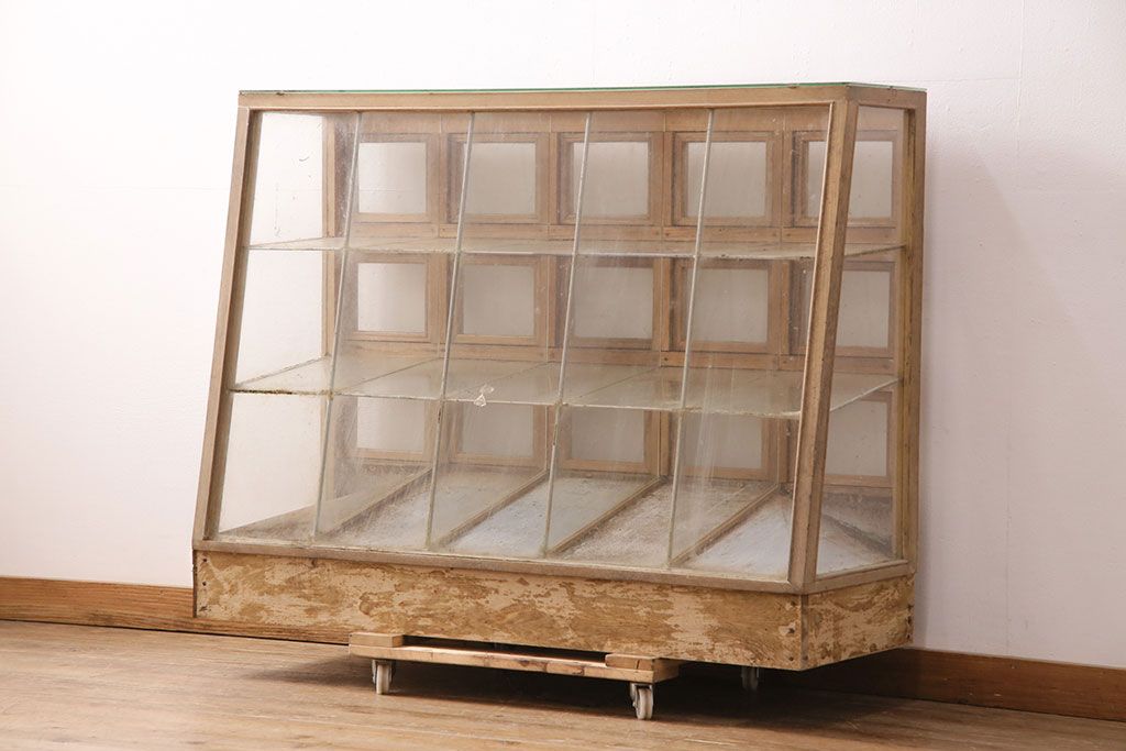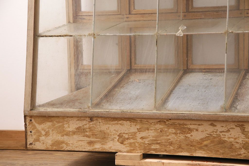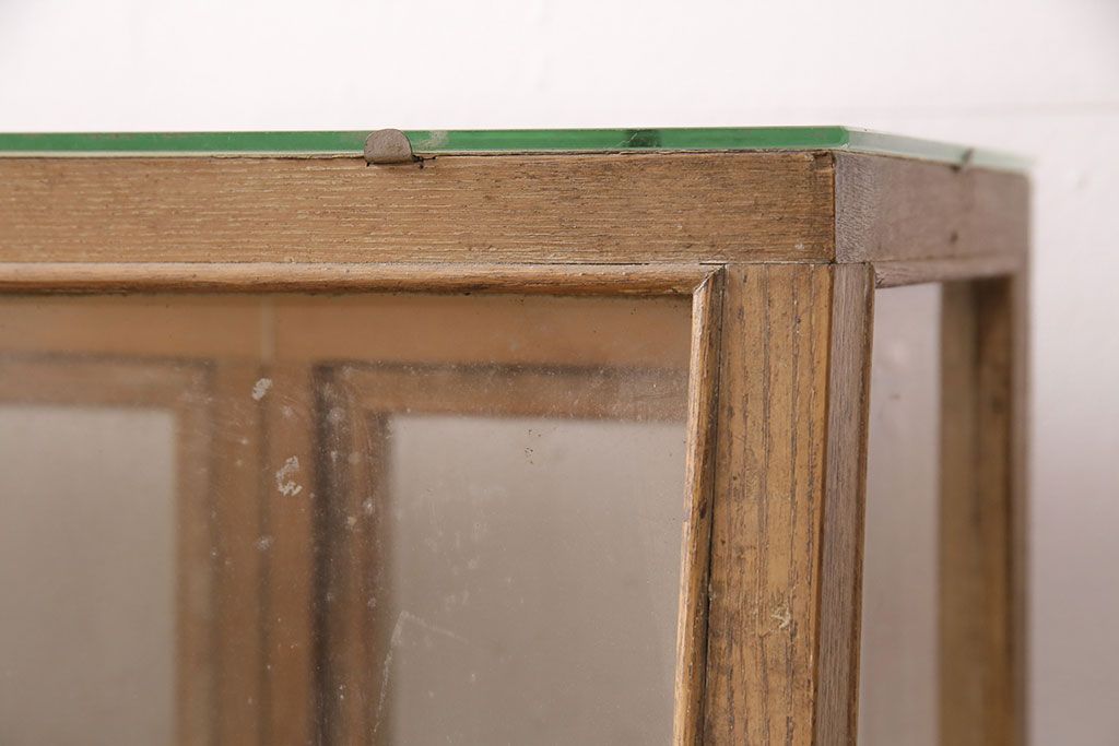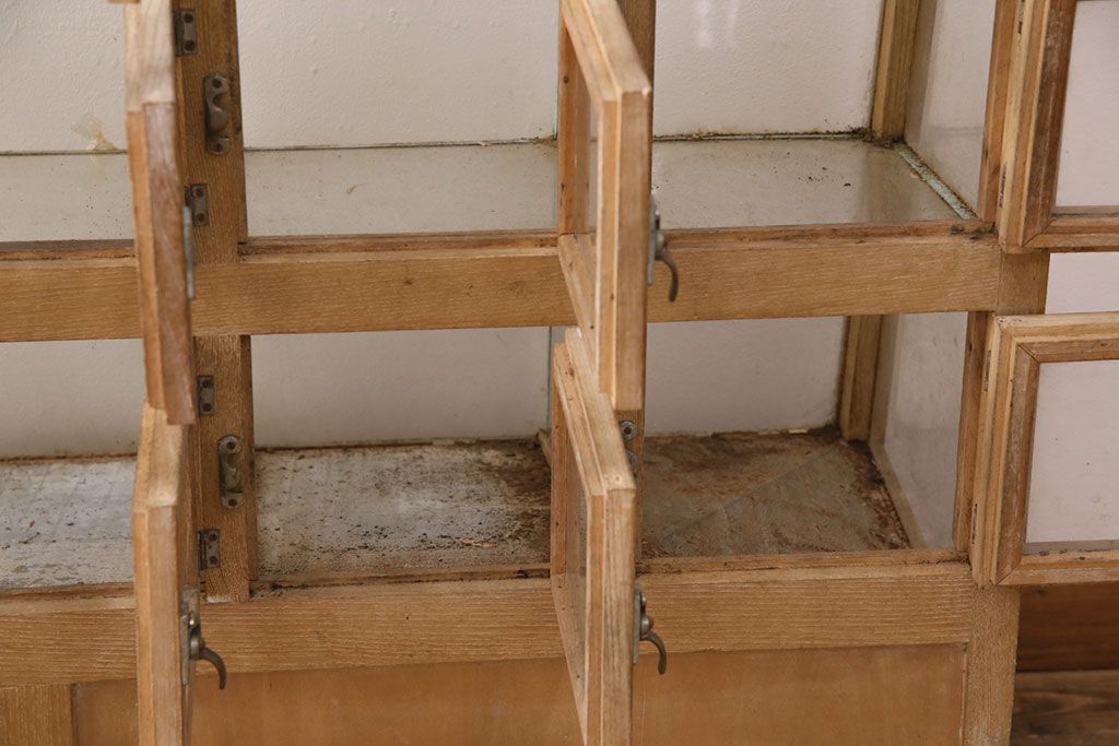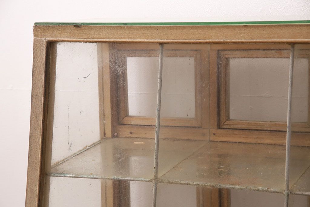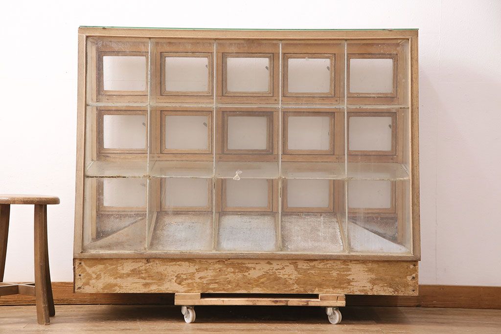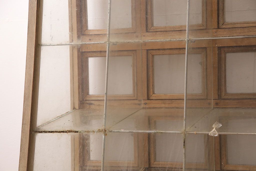 お問い合わせいただければ、優先してアップいたします。和製アンティーク ナラ材 マス目タイプのレトロなガラスケース(ショーケース、陳列棚、店舗什器)(R-049763)です。