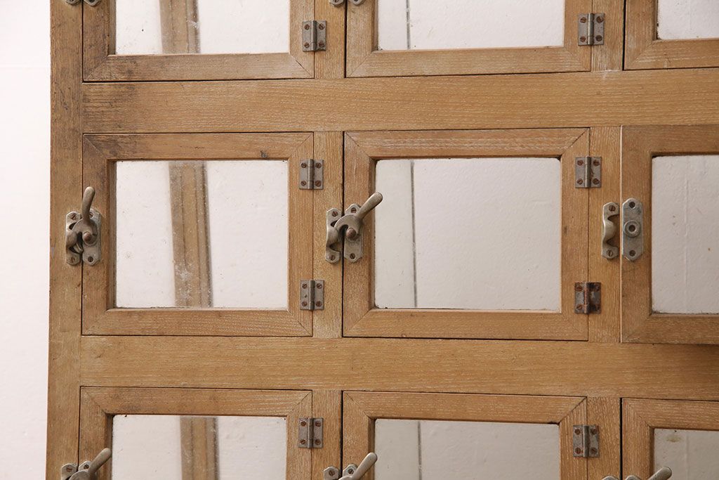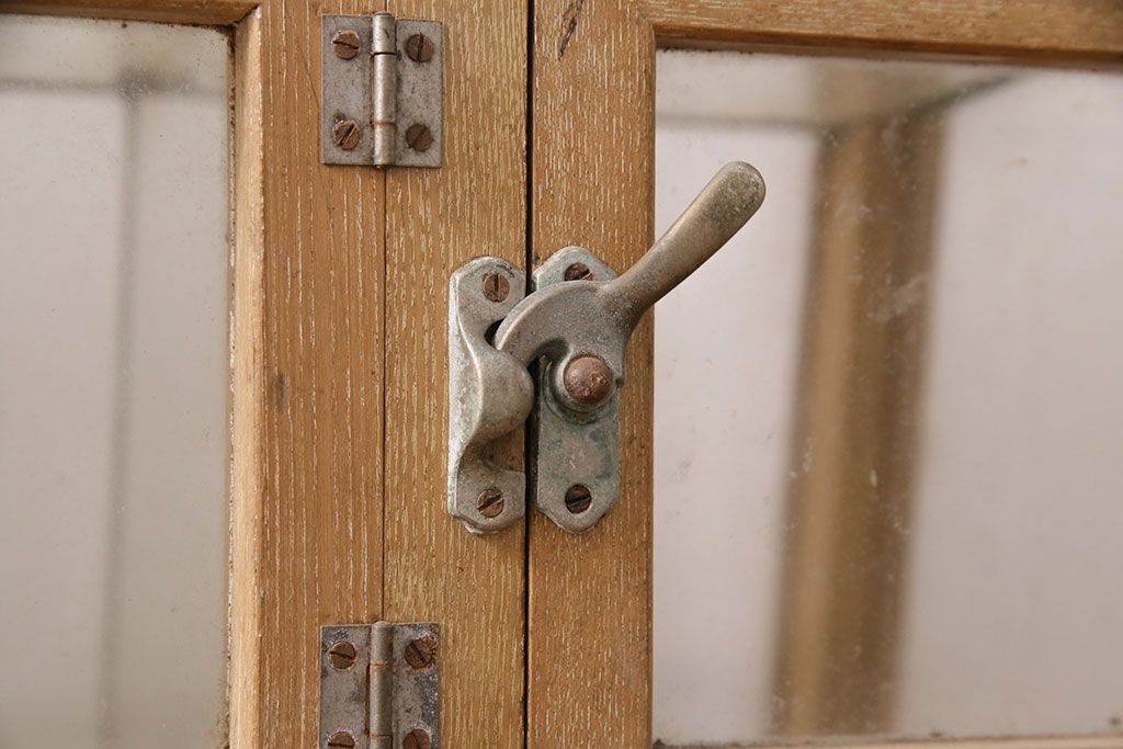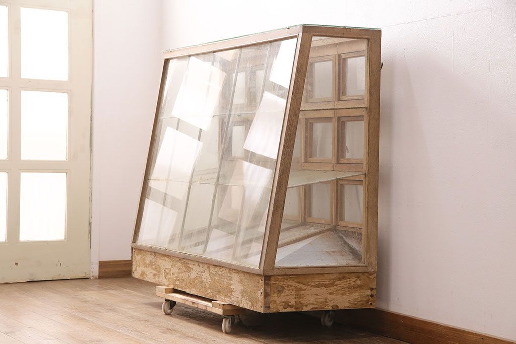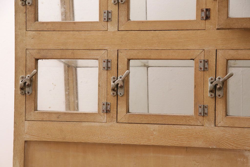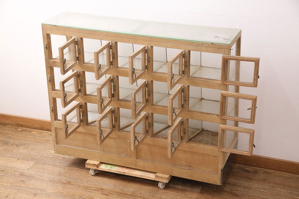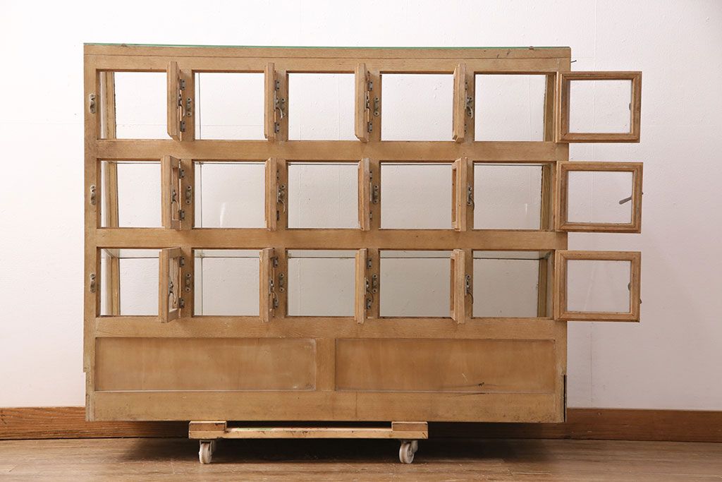 お問い合わせいただければ、優先してアップいたします。和製アンティーク ナラ材 マス目タイプのレトロなガラスケース(ショーケース、陳列棚、店舗什器)(R-049763)です。