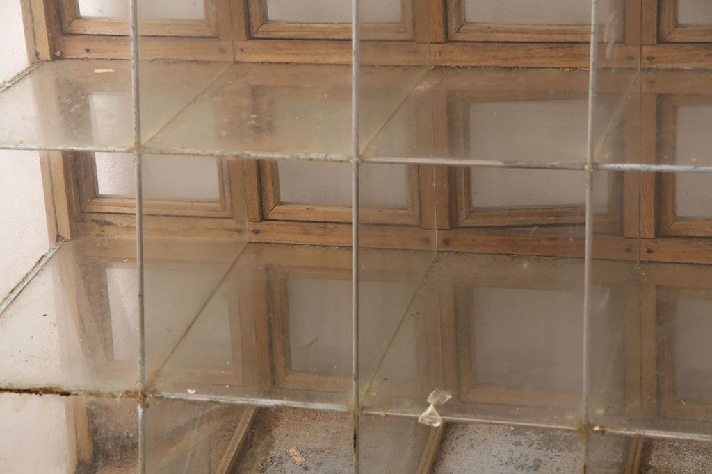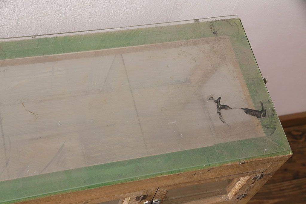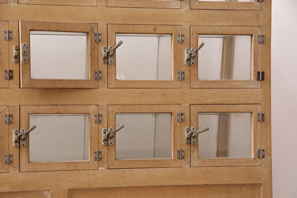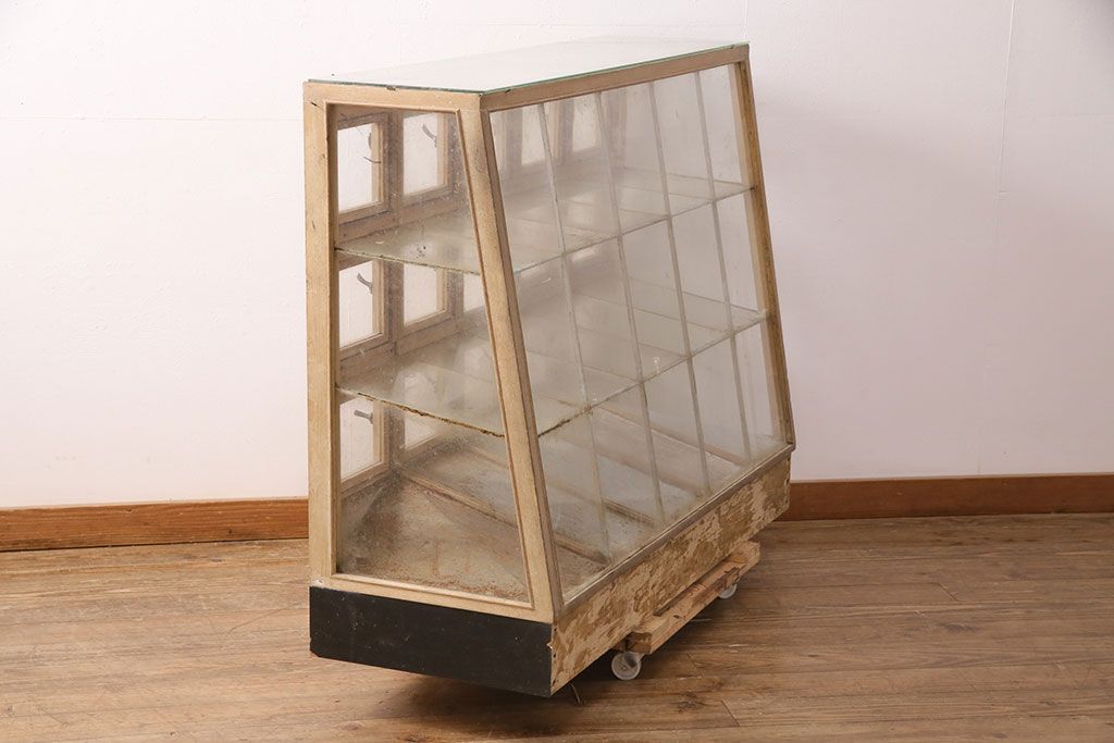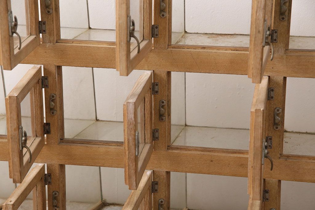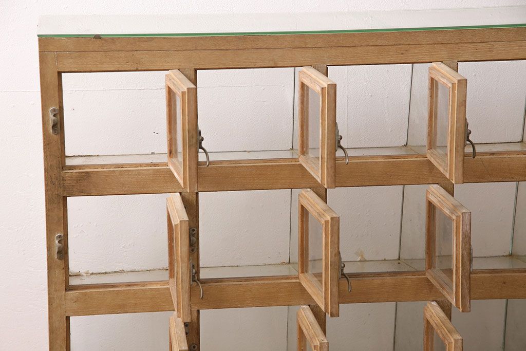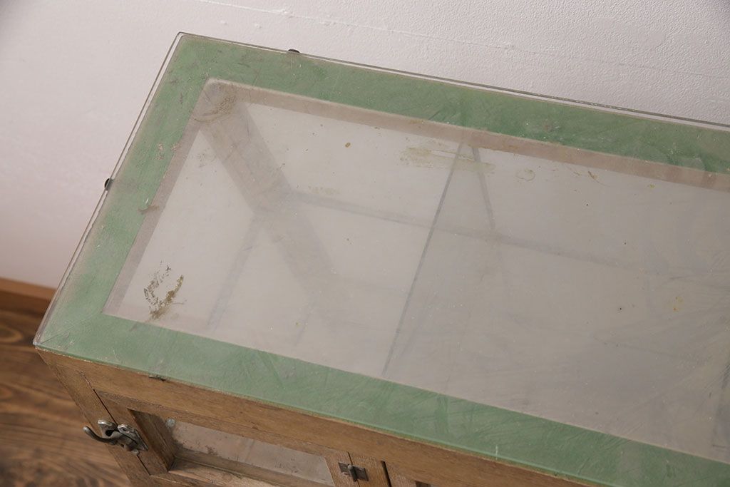 お問い合わせいただければ、優先してアップいたします。和製アンティーク ナラ材 マス目タイプのレトロなガラスケース(ショーケース、陳列棚、店舗什器)(R-049763)です。