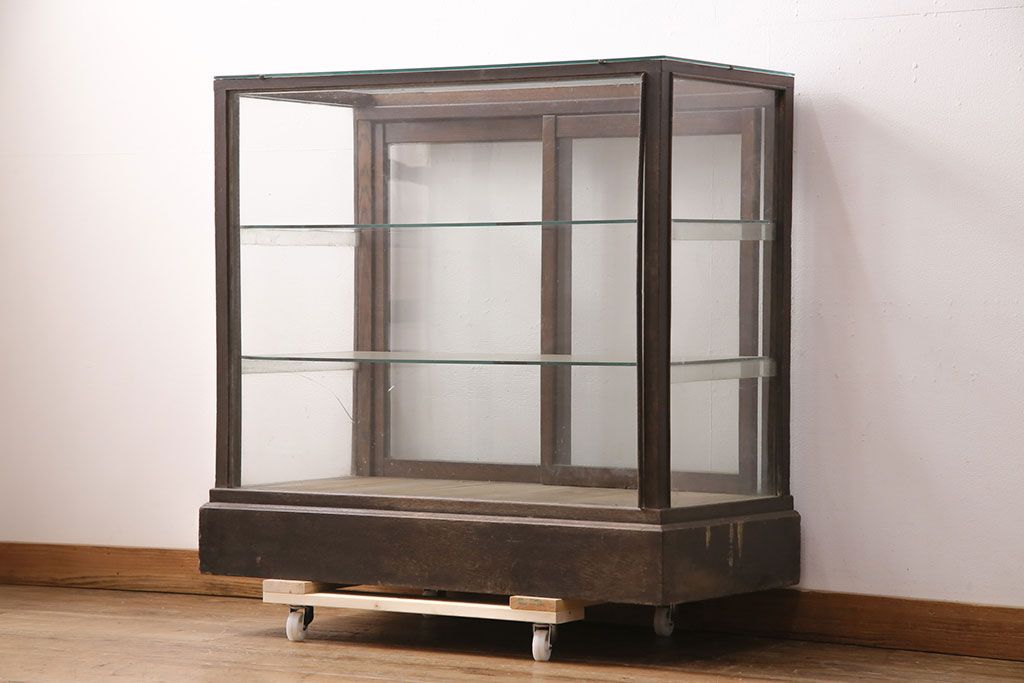 ラフジュ工房> ガラスケース・ショーケース > 和製アンティーク 昭和レトロ ナラ材製のレトロなガラスケース(ショーケース、陳列棚、店舗什器)(R-049247)