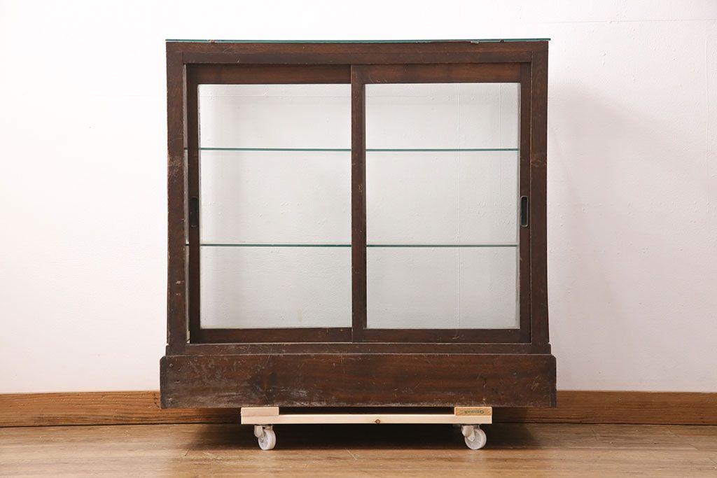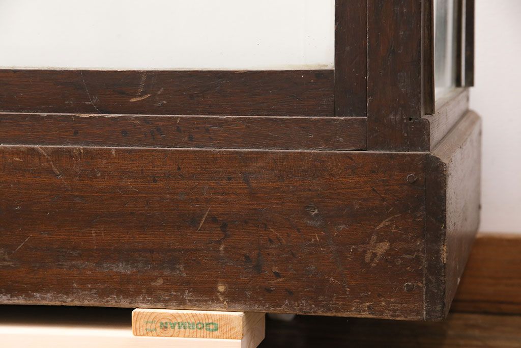 和製アンティーク 昭和レトロ ナラ材製のレトロなガラスケース(ショーケース、陳列棚、店舗什器)(R-049247)