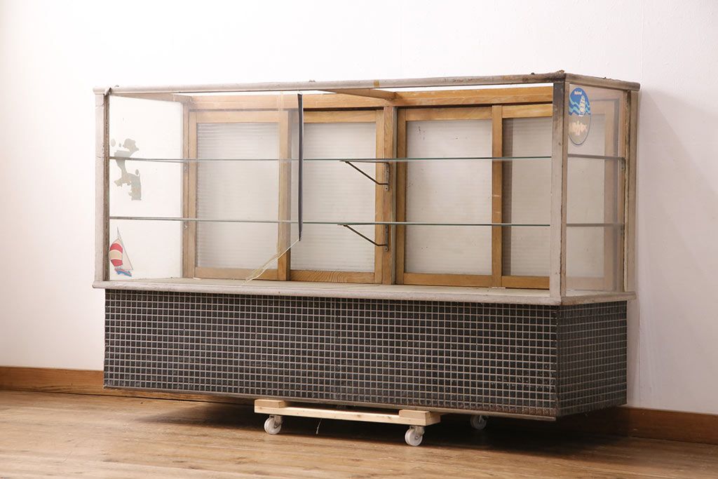 ラフジュ工房> ガラスケース・ショーケース > 和製アンティーク ナラ材 タイル張りが魅力のレトロなガラスケース(ショーケース、飾り棚、陳列棚、店舗什器)(R-049460)