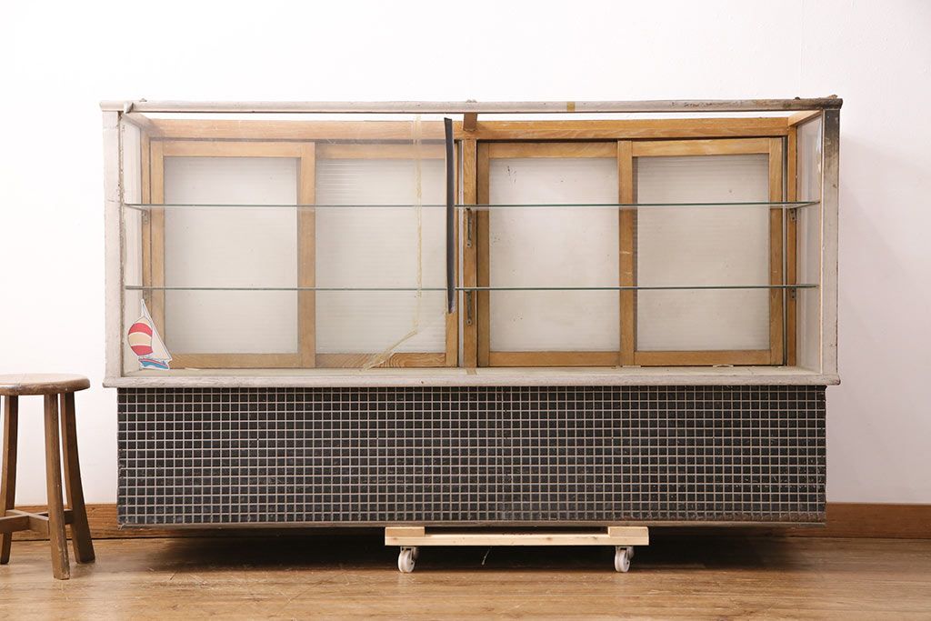 ラフジュ工房> ガラスケース・ショーケース> カウンターショーケース > 和製アンティーク ナラ材 タイル張りが魅力のレトロなガラスケース(ショーケース、飾り棚、陳列棚、店舗什器)(R-049460)