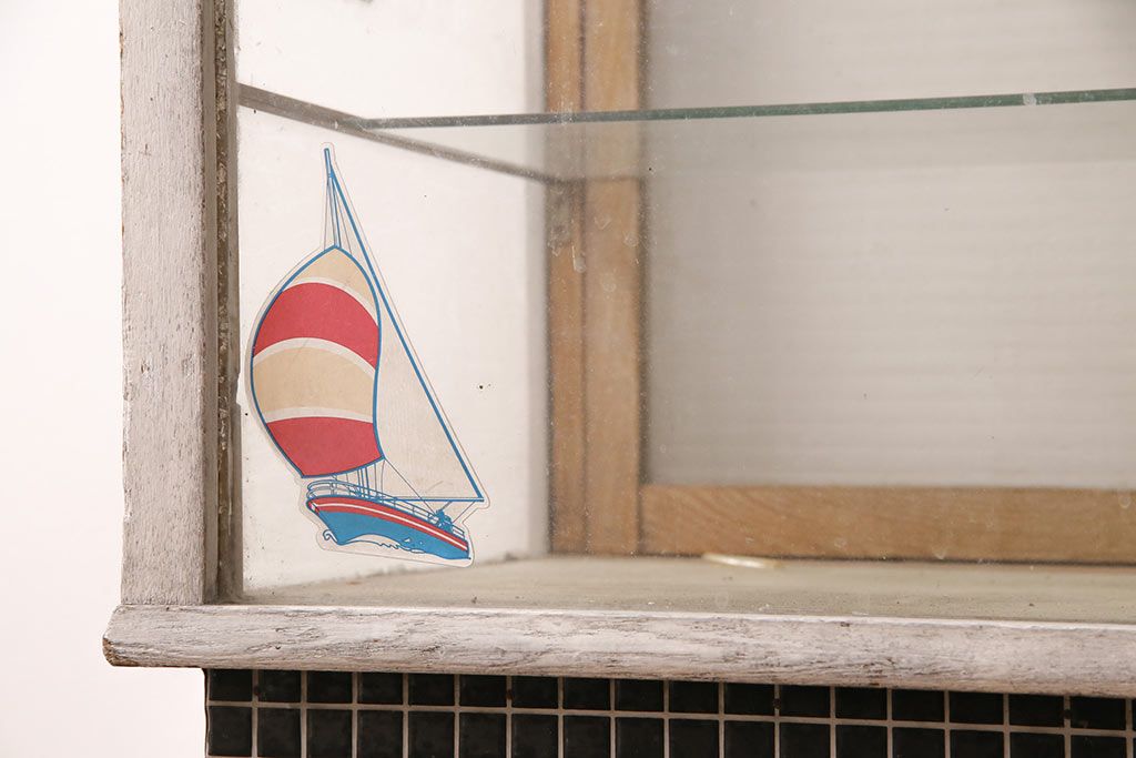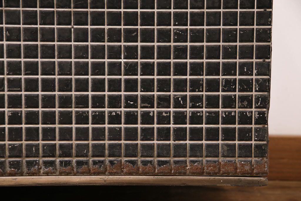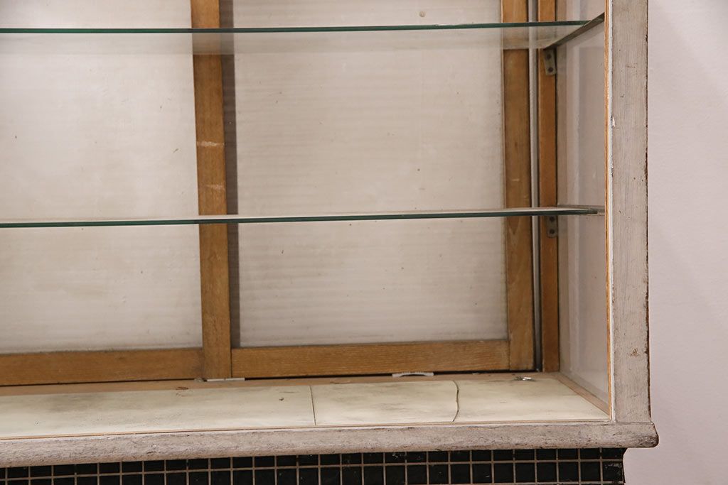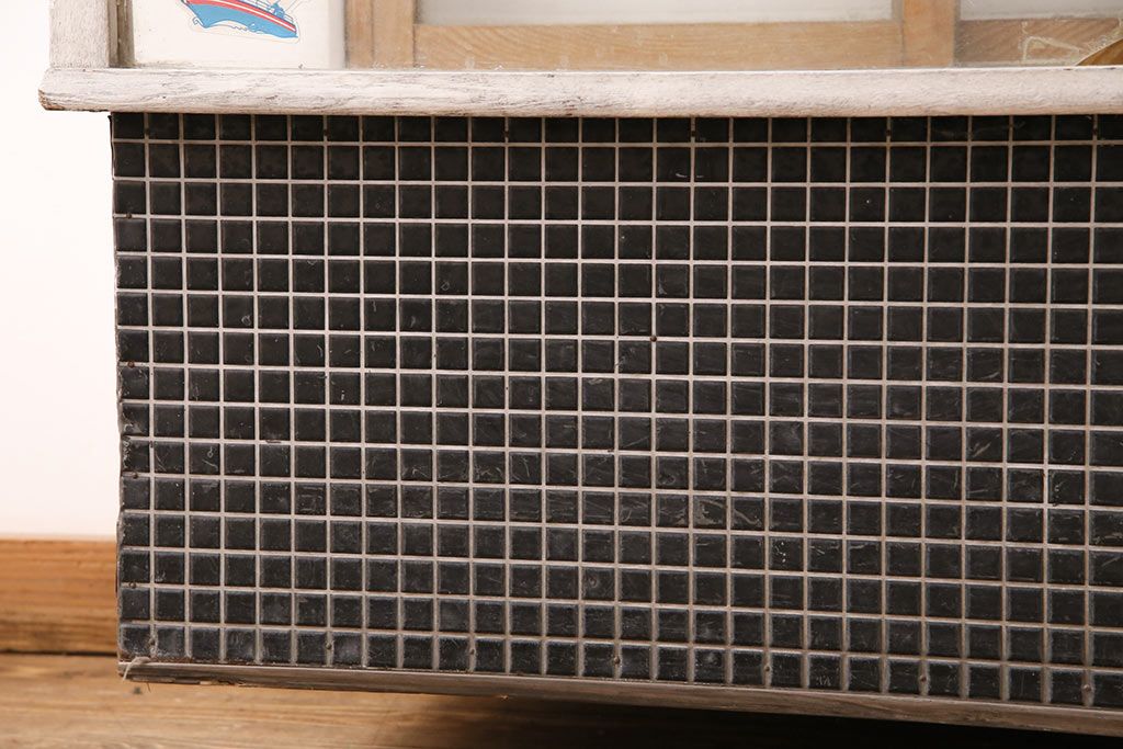 和製アンティーク ナラ材 タイル張りが魅力のレトロなガラスケース(ショーケース、飾り棚、陳列棚、店舗什器)(R-049460)