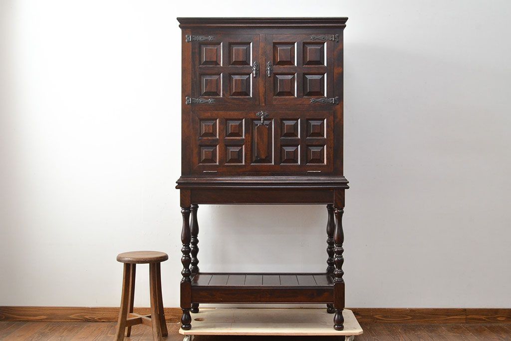 民芸家具 > 中古 美品 松本民芸家具 コレクションにもおすすめ!クラシックな雰囲気が格好いいS.P型ワインボード(ワインラック、収納棚、戸棚、キャビネット、SP型)(定価約99万円)(R-049972)