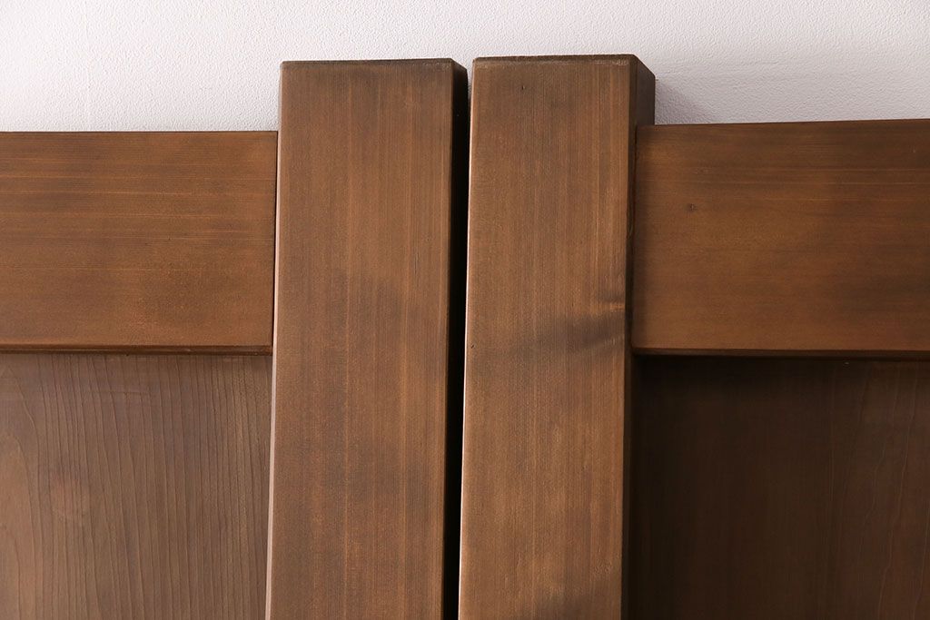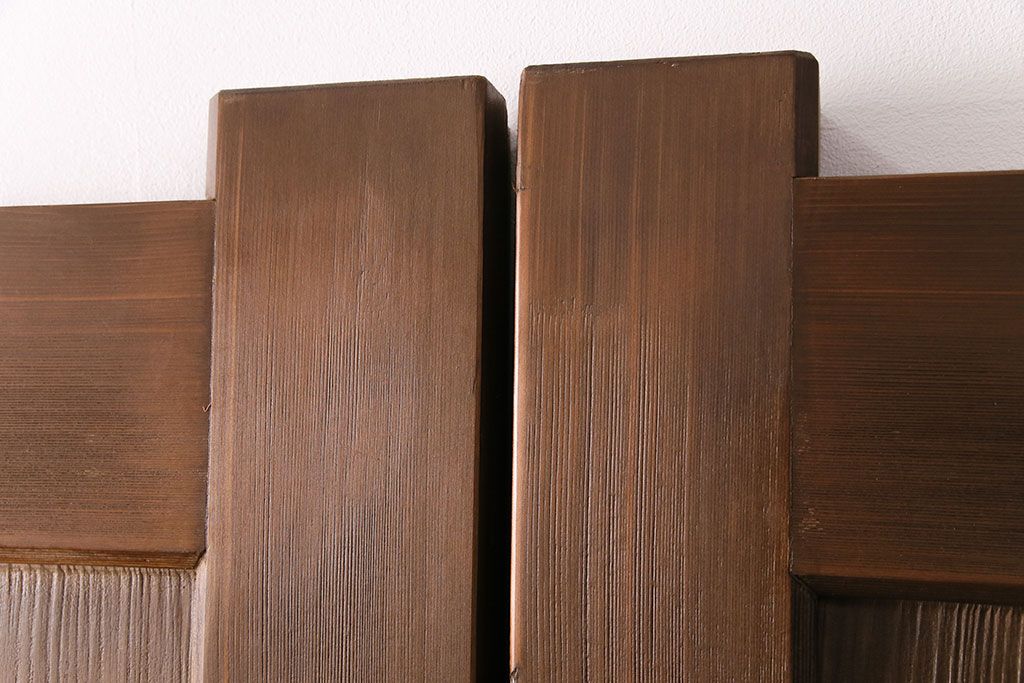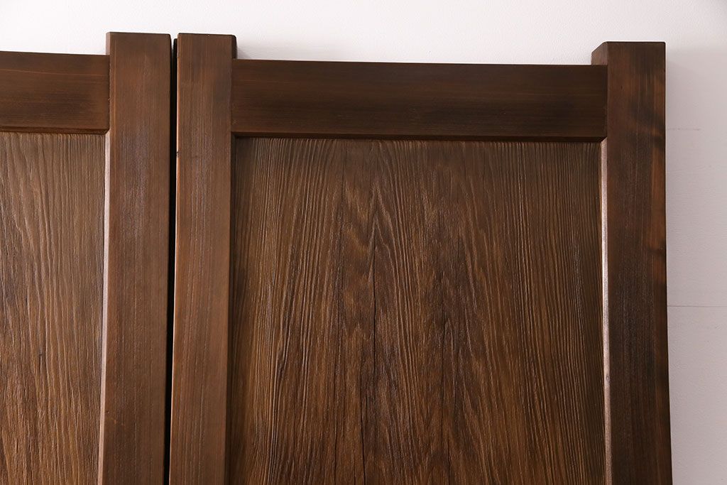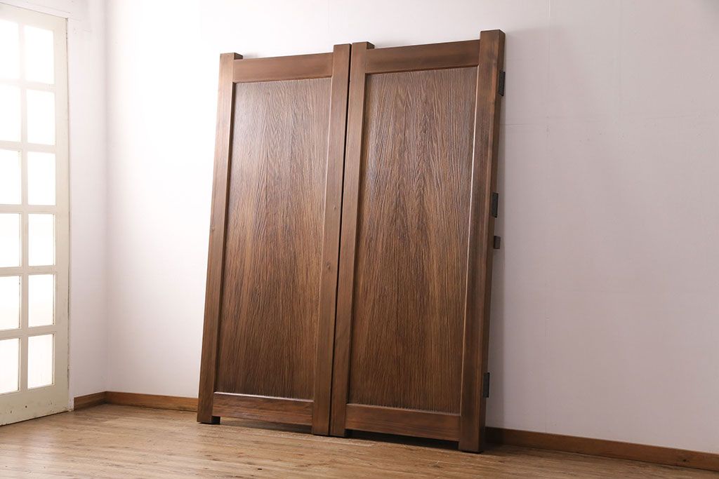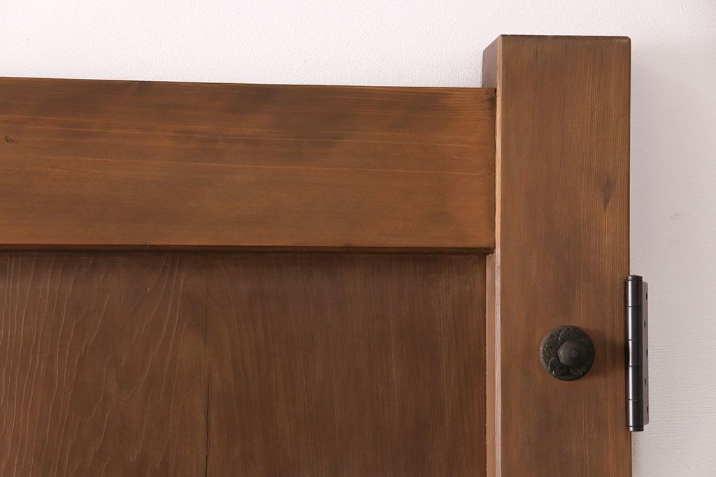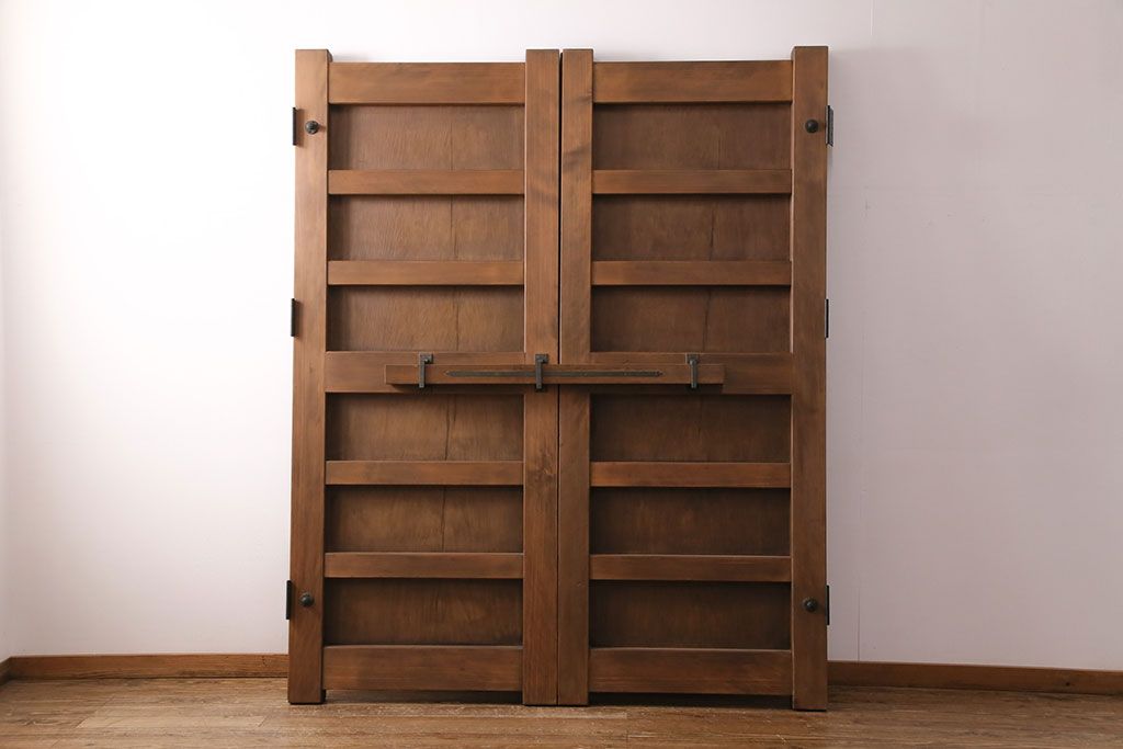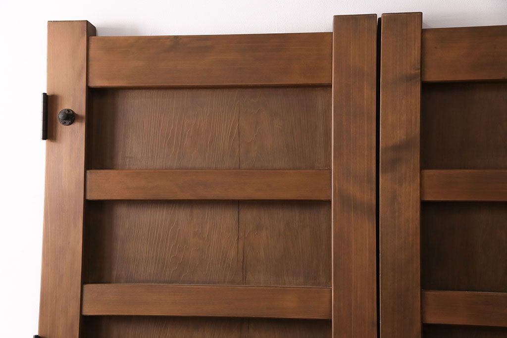 大正昭和初期の門扉一対をリペア&カスタム!耐荷重蝶番を取り付け。剥離後、明るい茶色に着色し、仕上げ。(木製ドア、建具)