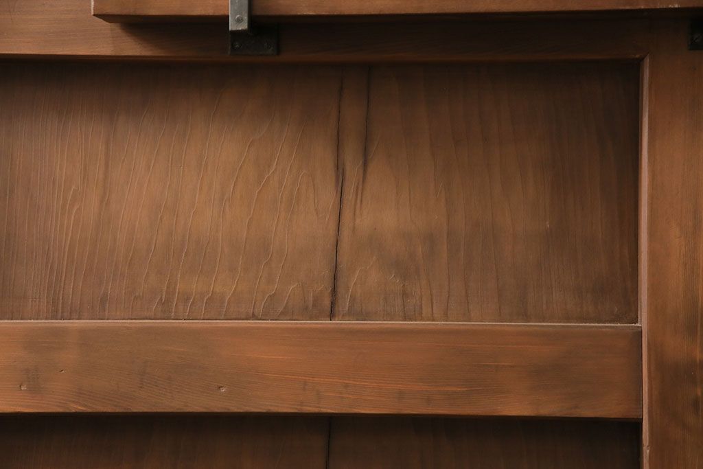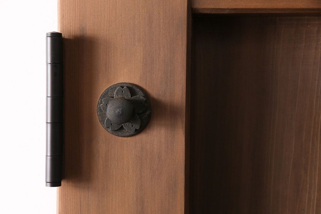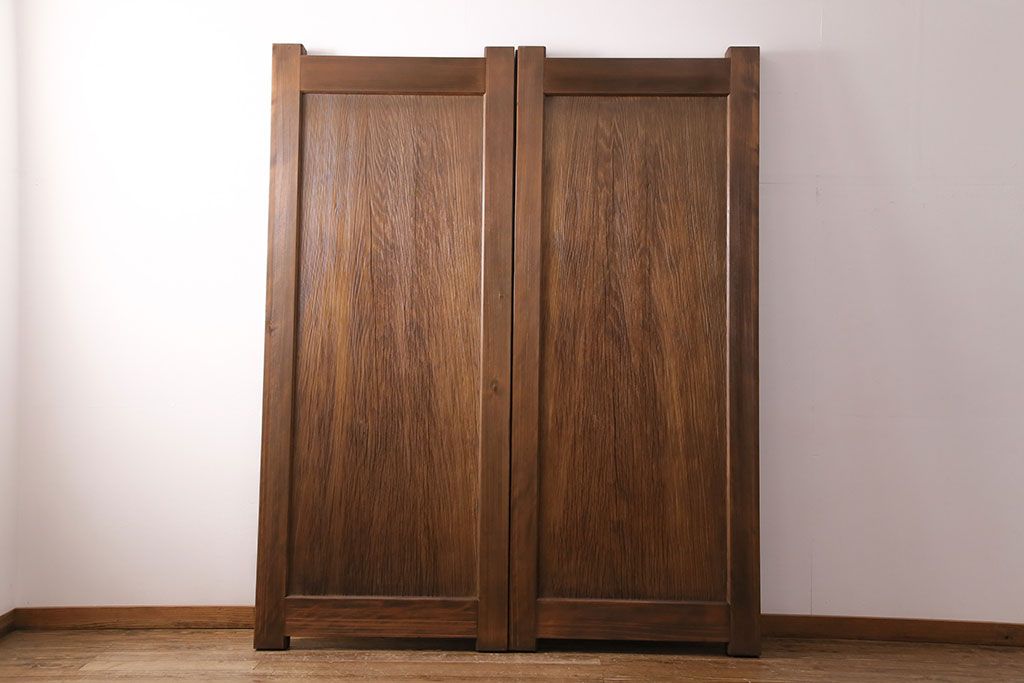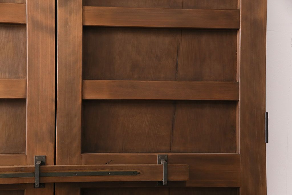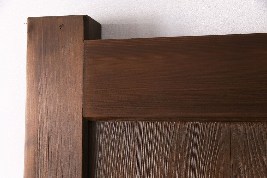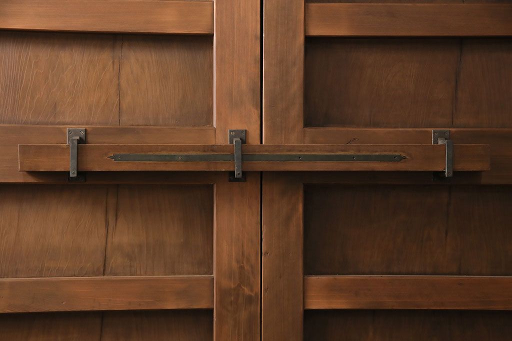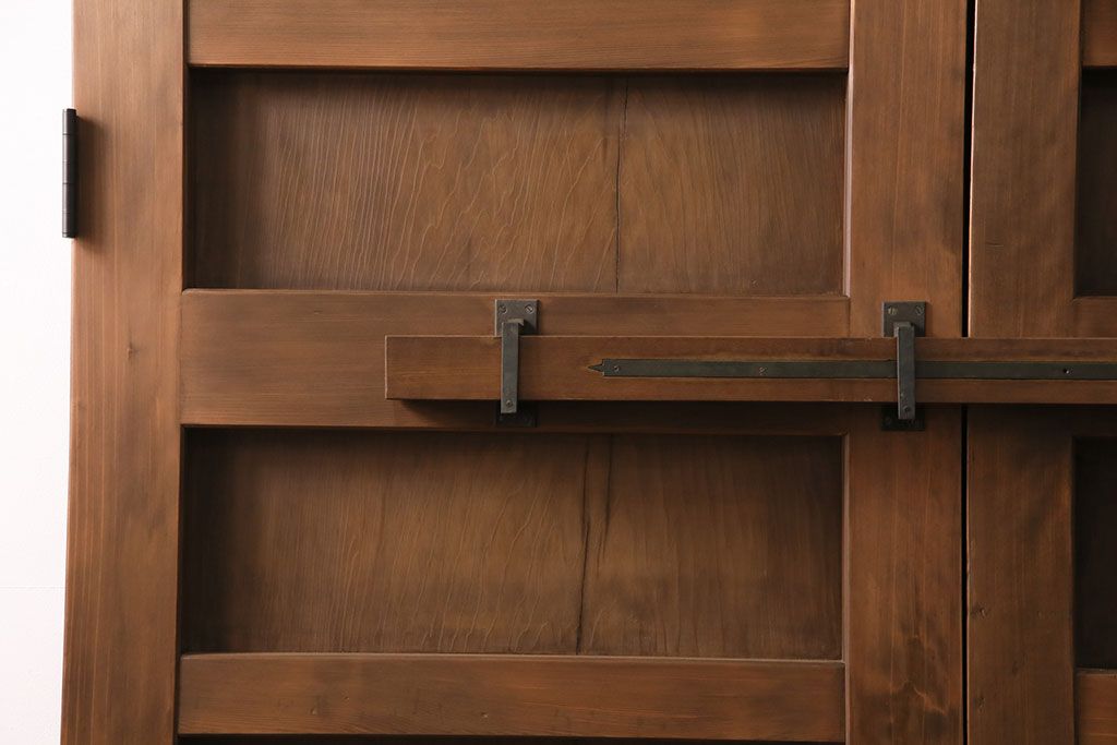 大正昭和初期の門扉一対をリペア&カスタム!耐荷重蝶番を取り付け。剥離後、明るい茶色に着色し、仕上げ。(木製ドア、建具)
