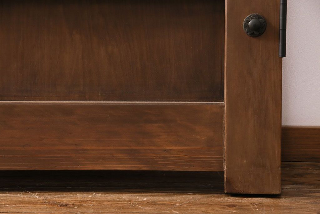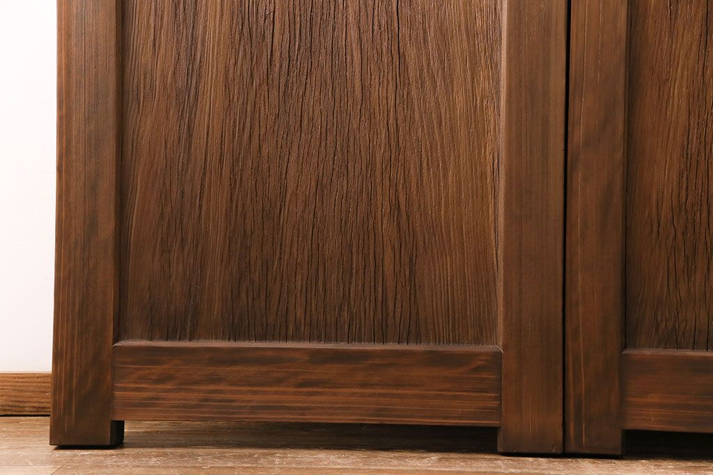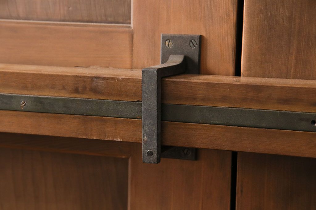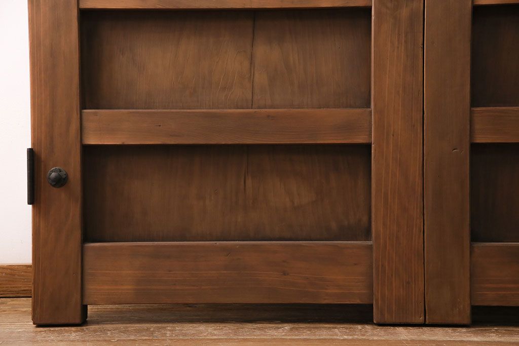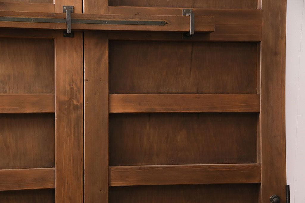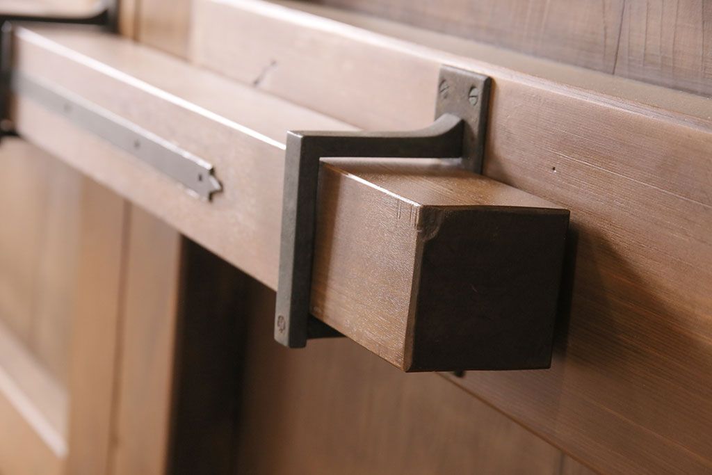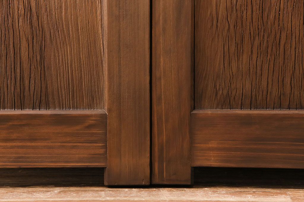 大正昭和初期の門扉一対をリペア&カスタム!耐荷重蝶番を取り付け。剥離後、明るい茶色に着色し、仕上げ。(木製ドア、建具)