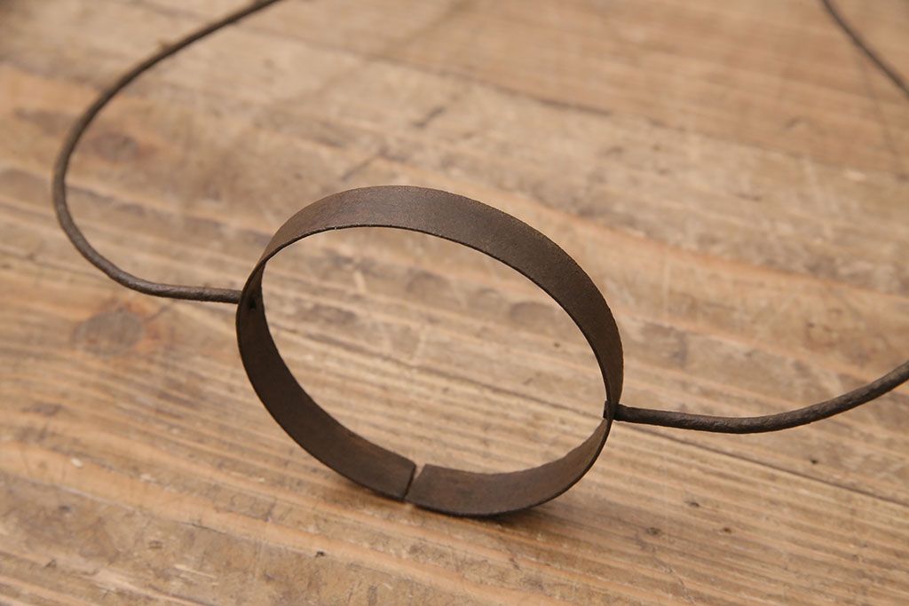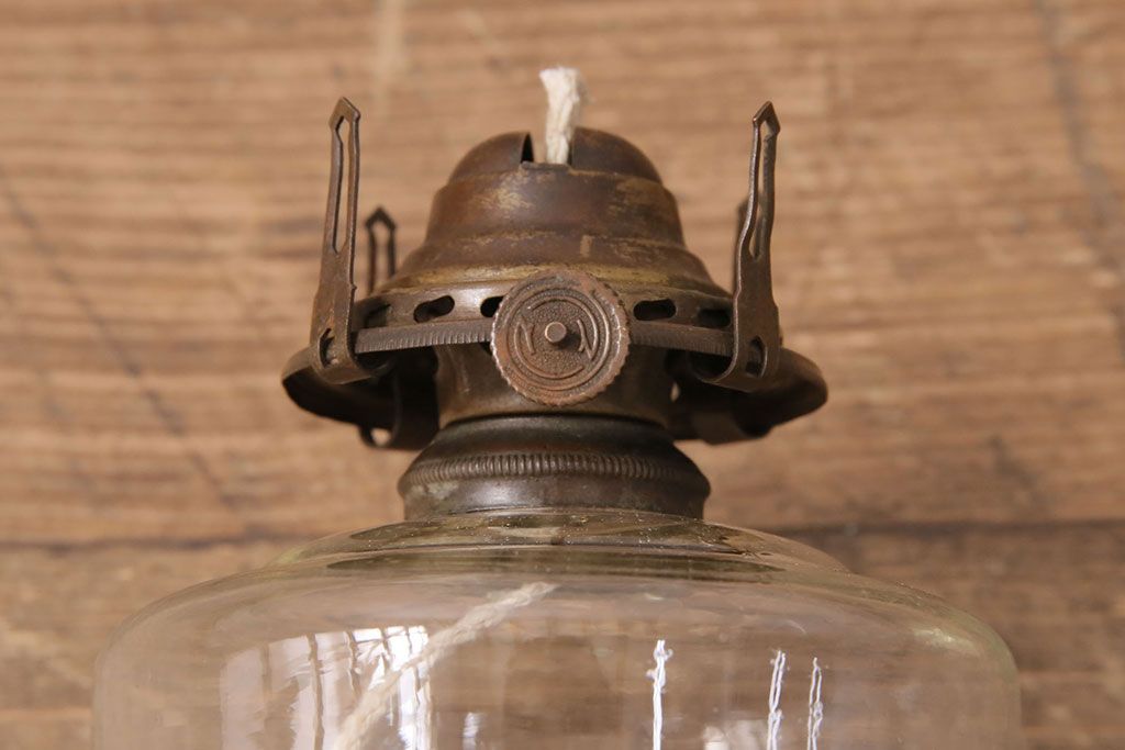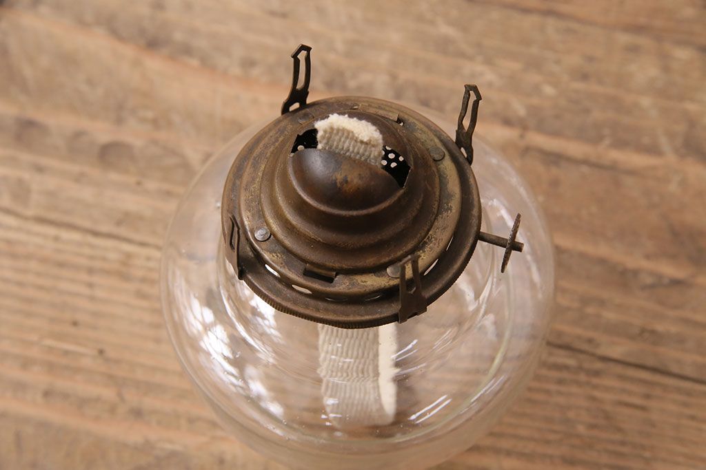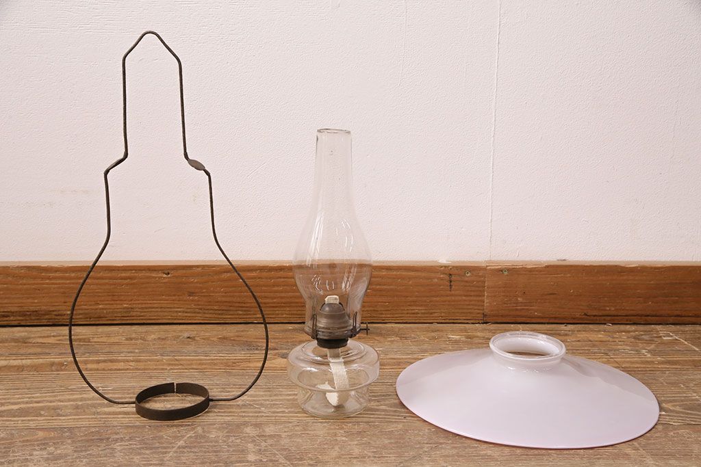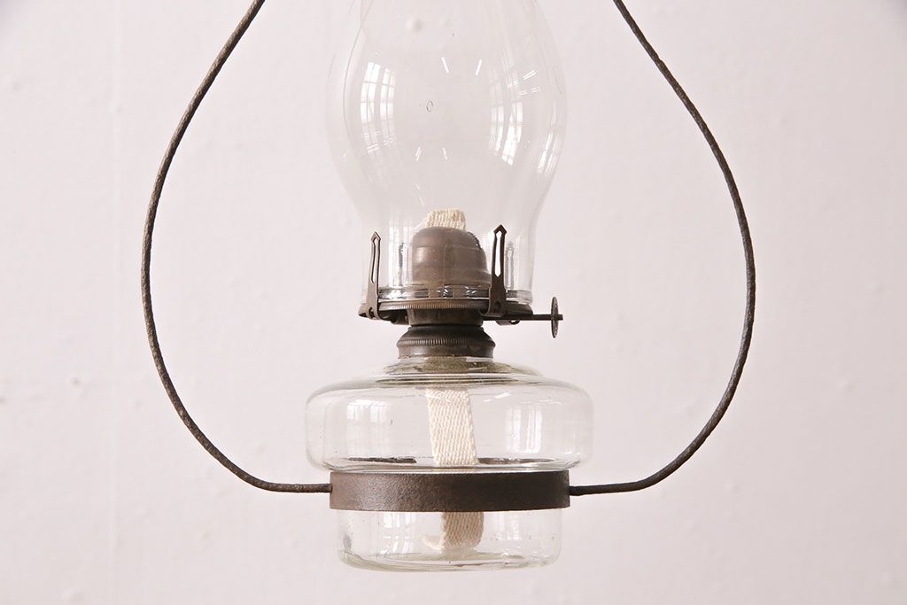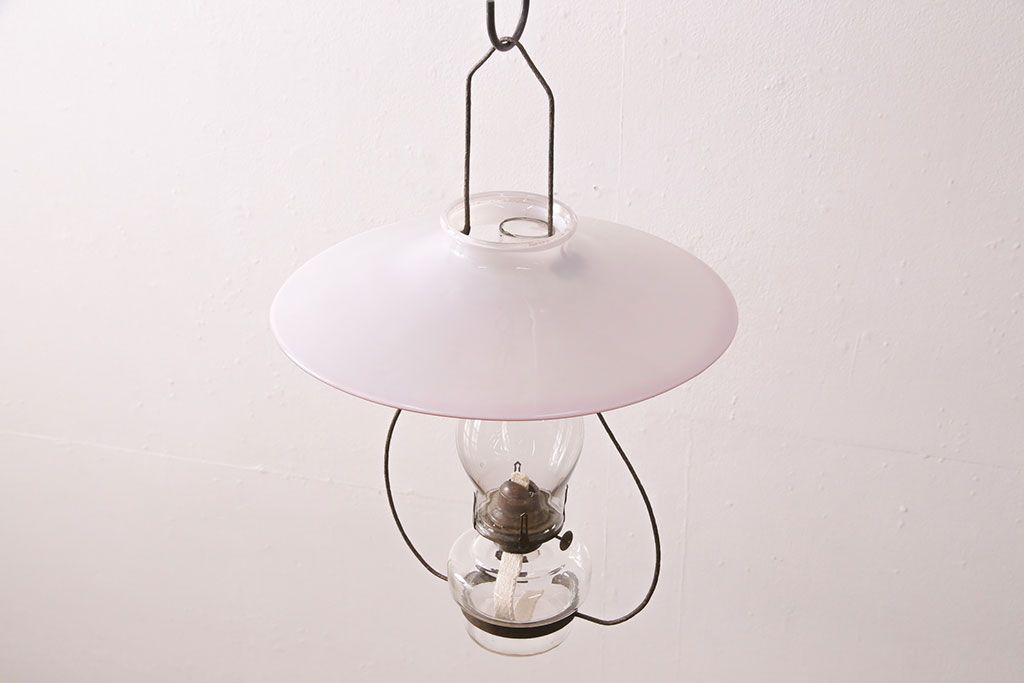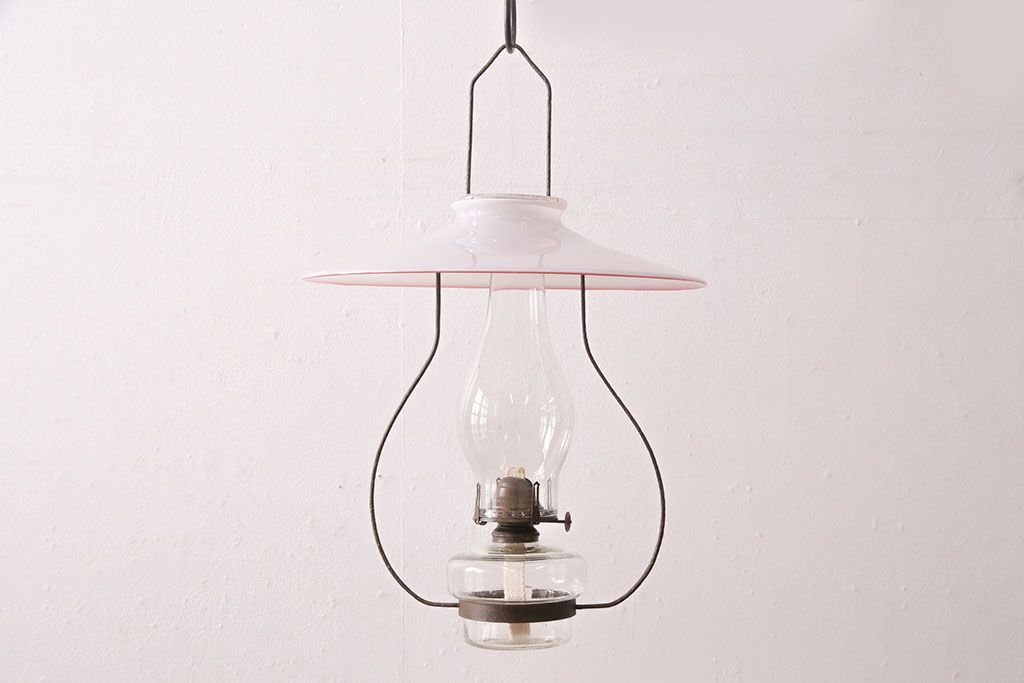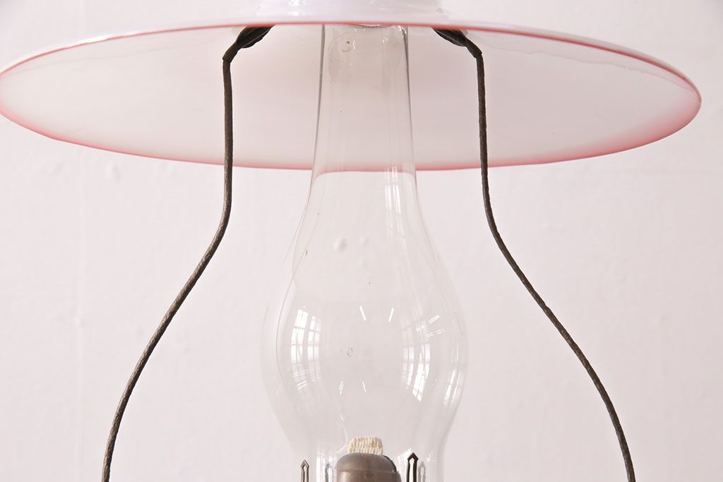 和製アンティーク 平芯5分芯 ピンクの縁が可愛らしいアクセントのオイルランプ(ハンギングランプ、吊り下げランプ、ランタン)(R-049949)