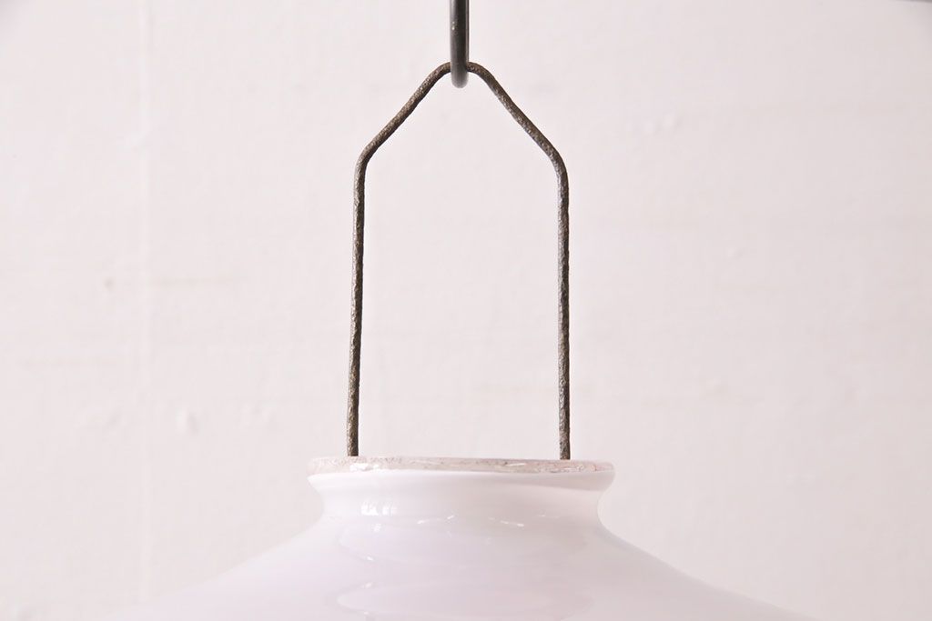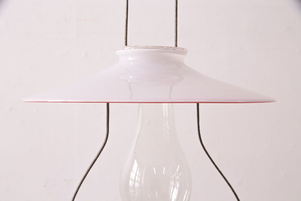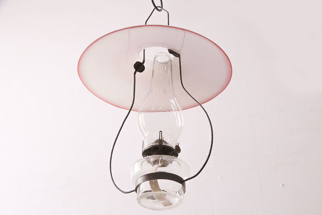 和製アンティーク 平芯5分芯 ピンクの縁が可愛らしいアクセントのオイルランプ(ハンギングランプ、吊り下げランプ、ランタン)(R-049949)です。