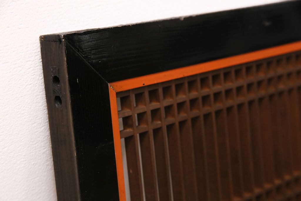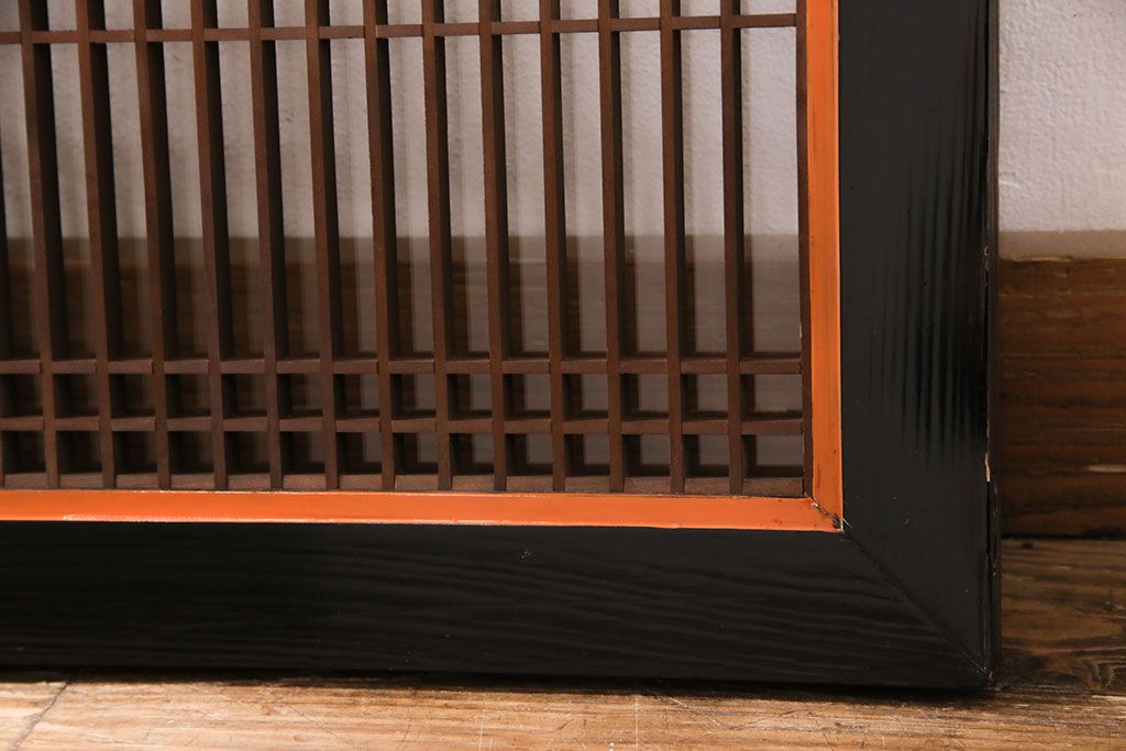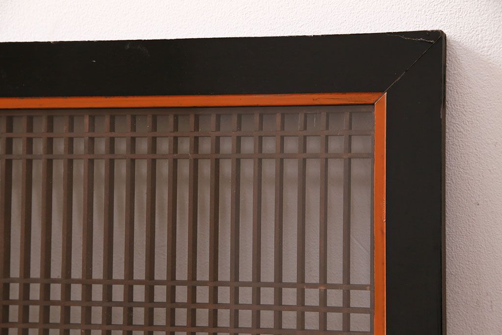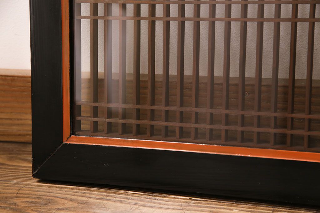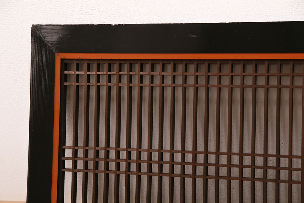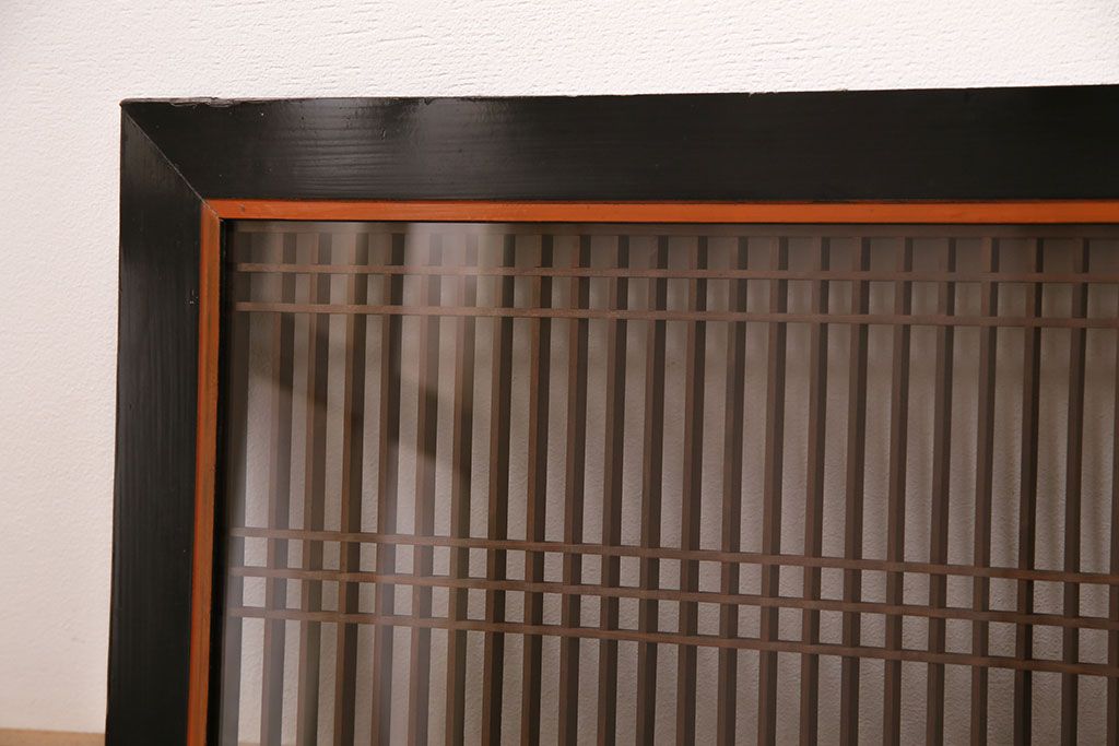 和製アンティーク 片面ガラス 凛とした佇まいが品の良さを高める筬欄間(オサランマ、明かり取り、明り取り、建具)(R-049977)です。 昭和中期につくられた筬(おさ)欄間です。 整然と並ぶ細かな桟に、黒い色味の枠が 凛としたモダンな印象を高めています。 欄間としてのご使用はもちろん、 ディスプレイとしてもおすすめですよ。 ご自宅や店舗での 和モダンな空間づくりにいかがでしょうか。 こちらのお品は片面ガラスです。 ダメージが少なく、アンティーク品として高品質なお品です。 使用上問題のあるダメージはありません。 ■框サイズ 上40mm/左35mm/右35mm/下40mm ■重量 約6kg