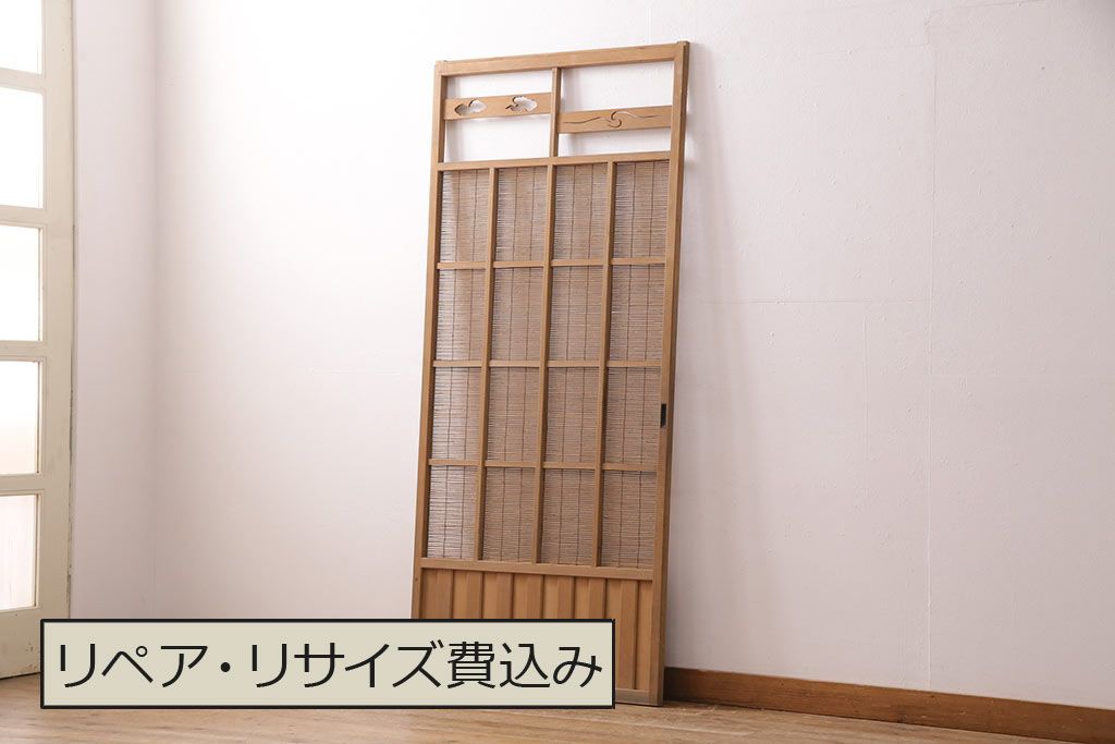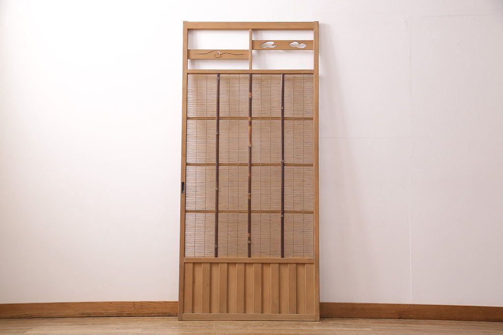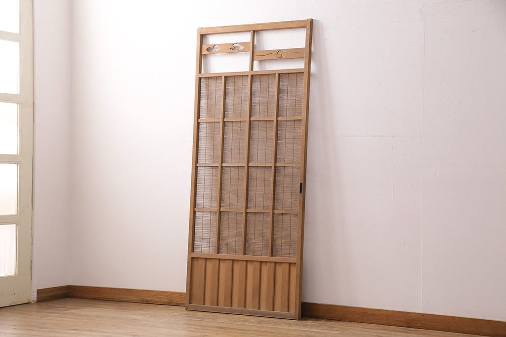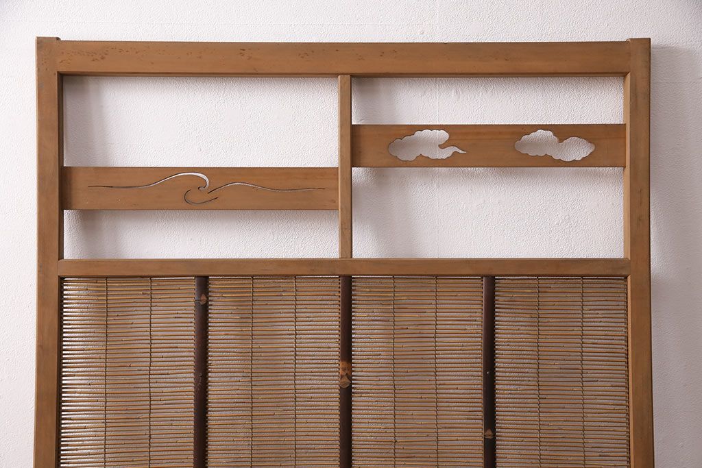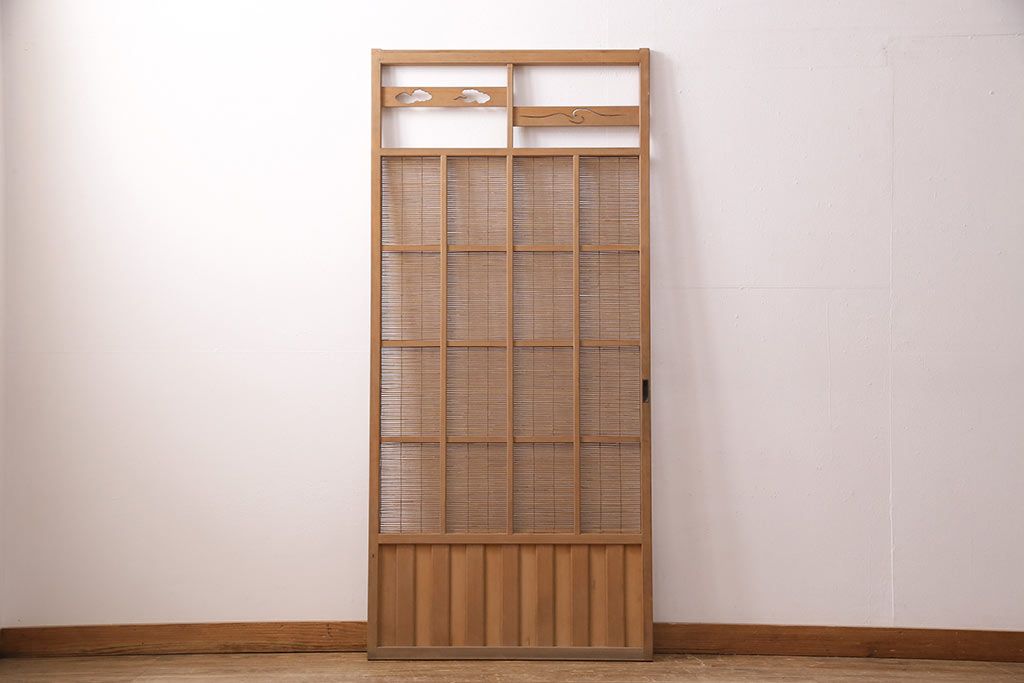 アンティーク建具 雲と風をイメージした透かし彫りがおしゃれな御簾戸1枚(簾戸、簀戸、葭戸、夏障子、すど、葦戸)(R-049622)