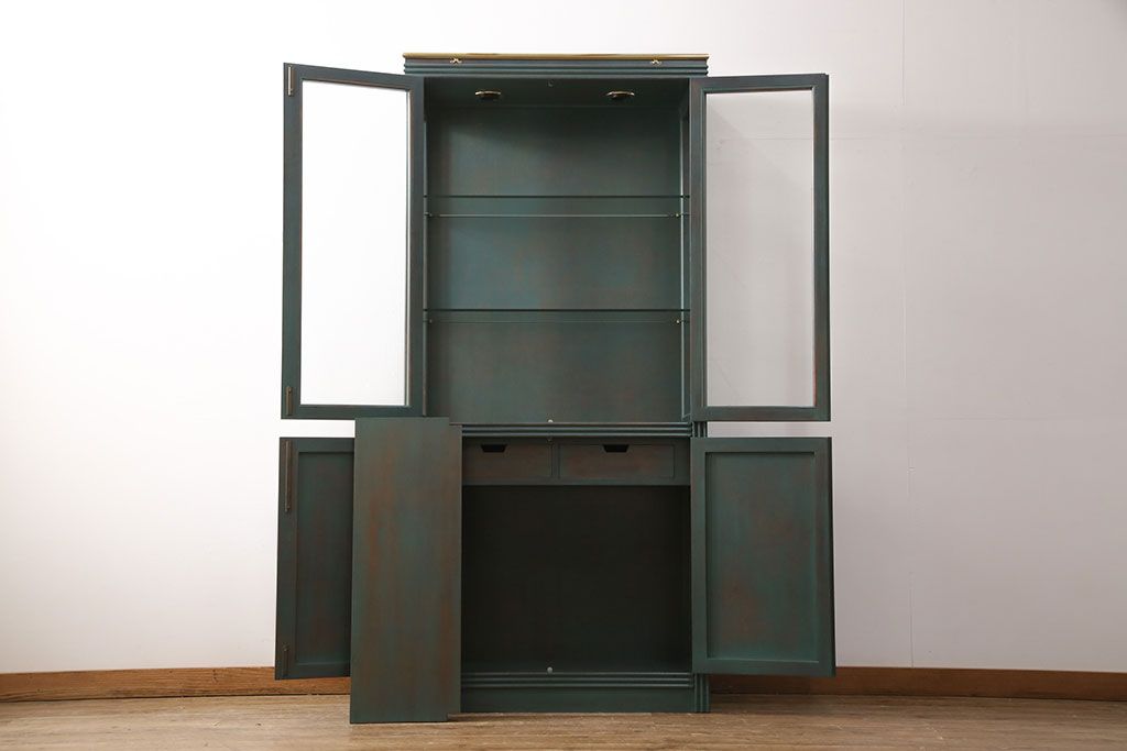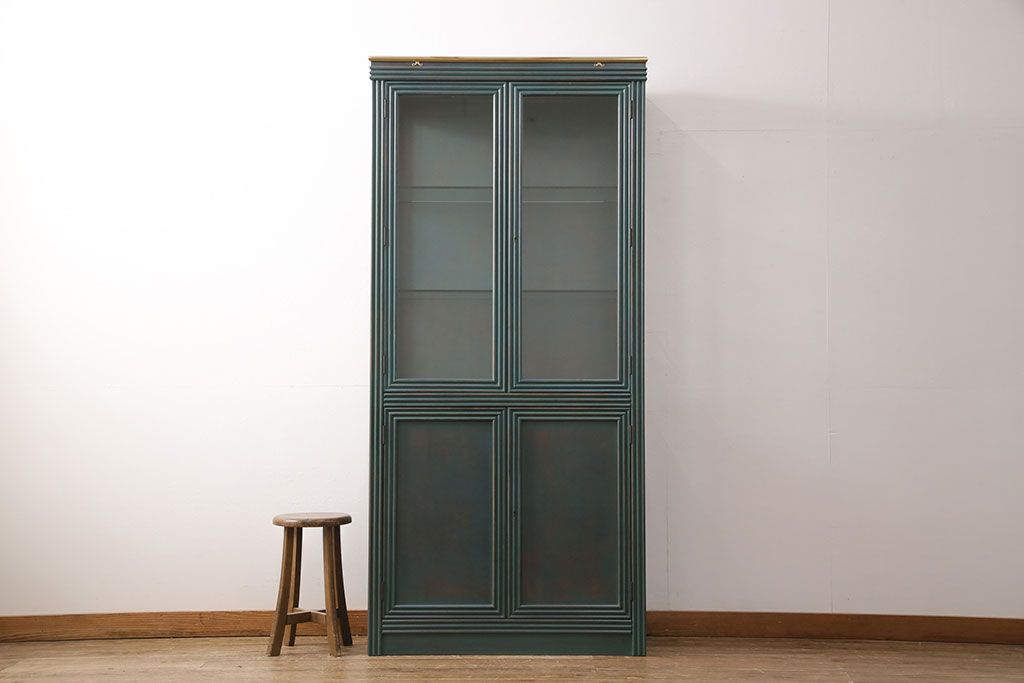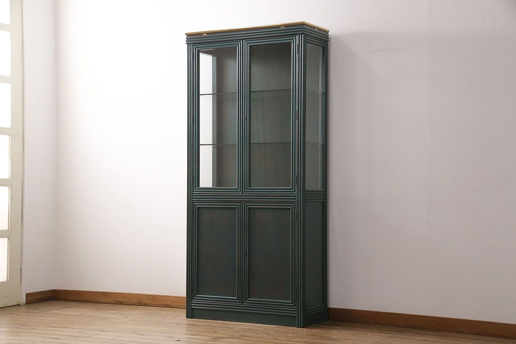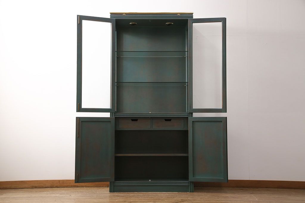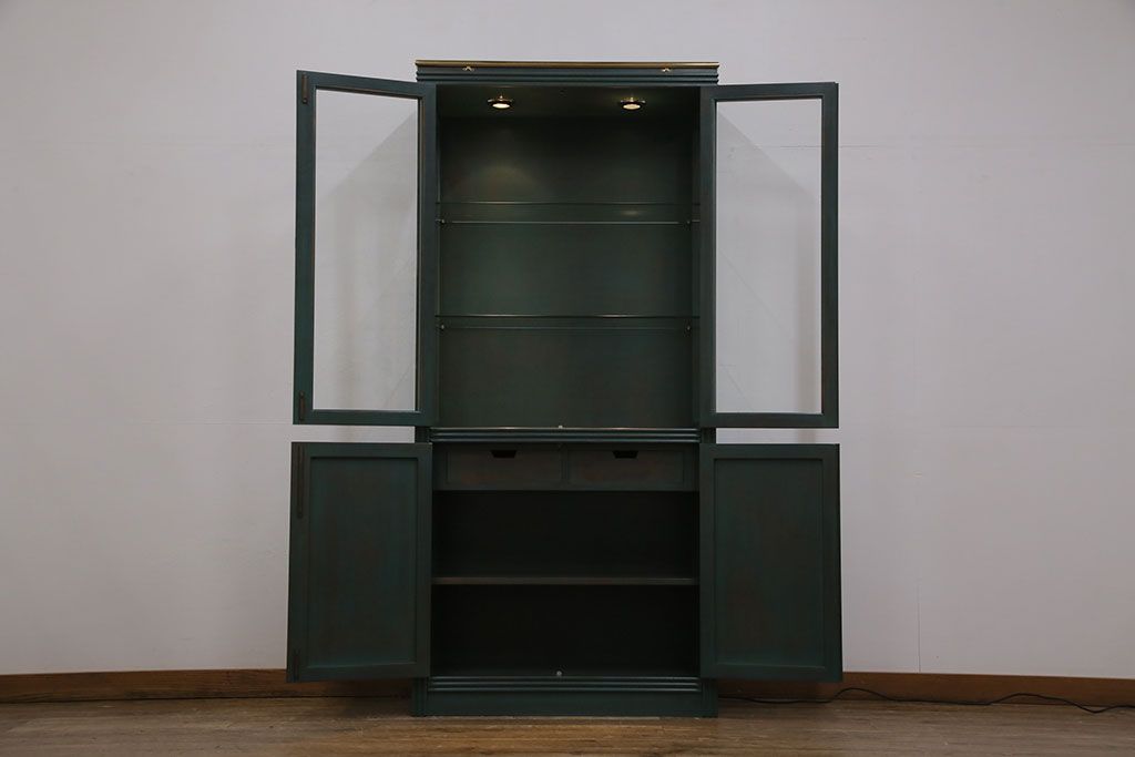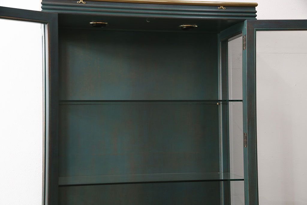 中古 美品 バロッサバレンティ(VARO,S.A. VALENTI) アルタミラ205901SP グリーンカラーが空間のアクセントになるガラスキャビネット(飾り棚、陳列棚、店舗什器)(定価約72万円)(R-049914)