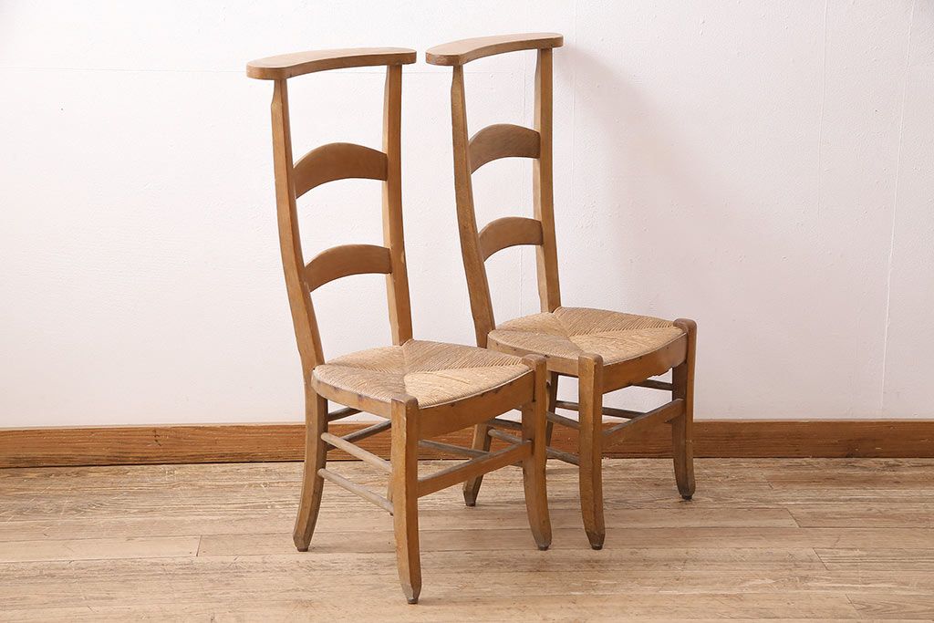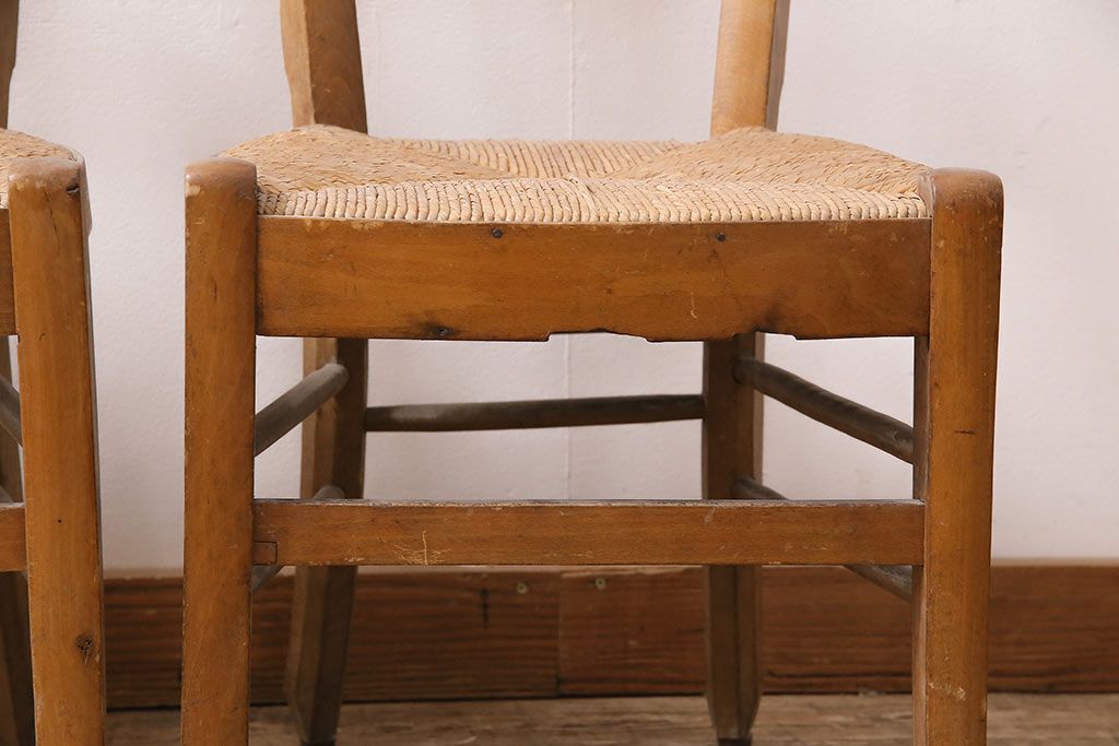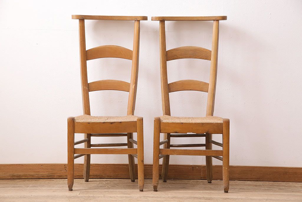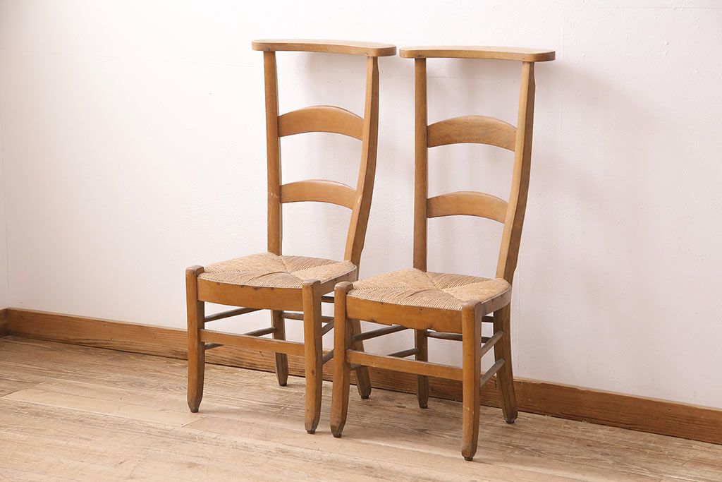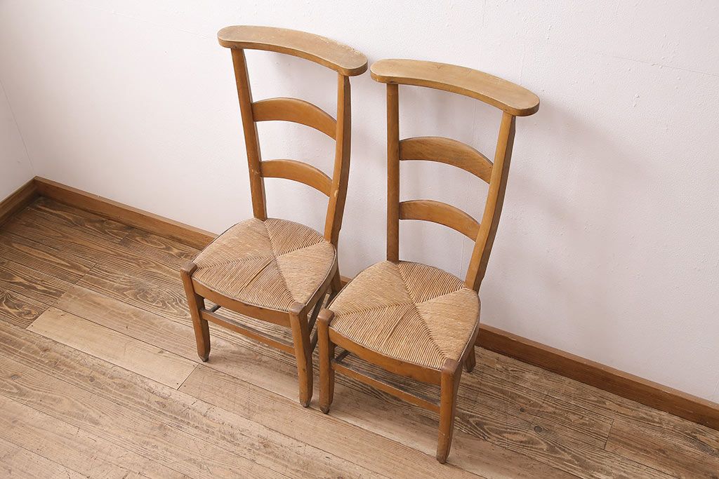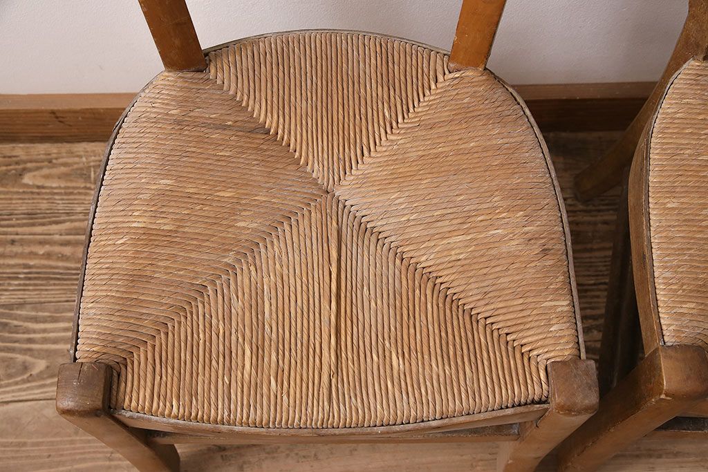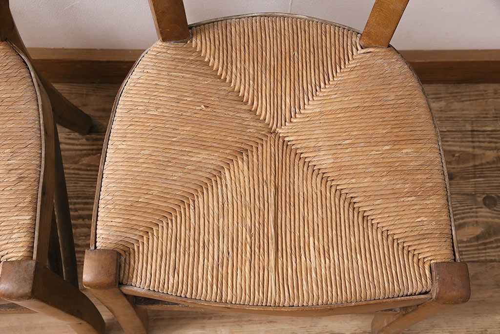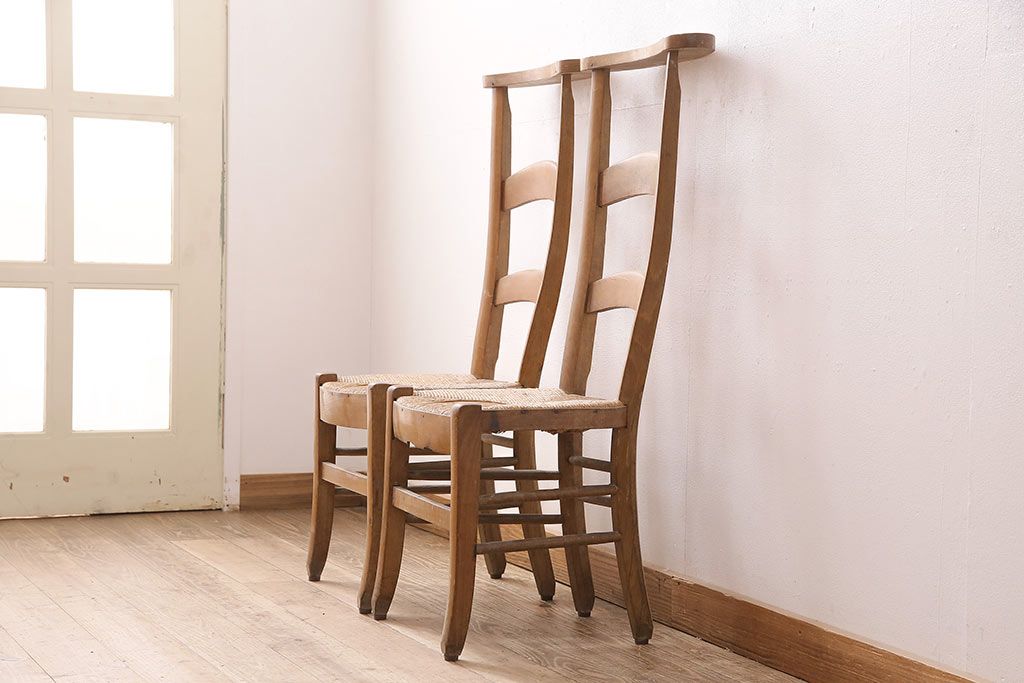 イギリスアンティーク ビーチ材 編み座面のフレンチチャーチチェア2脚セット(椅子、ダイニングチェア)(R-048750)です。