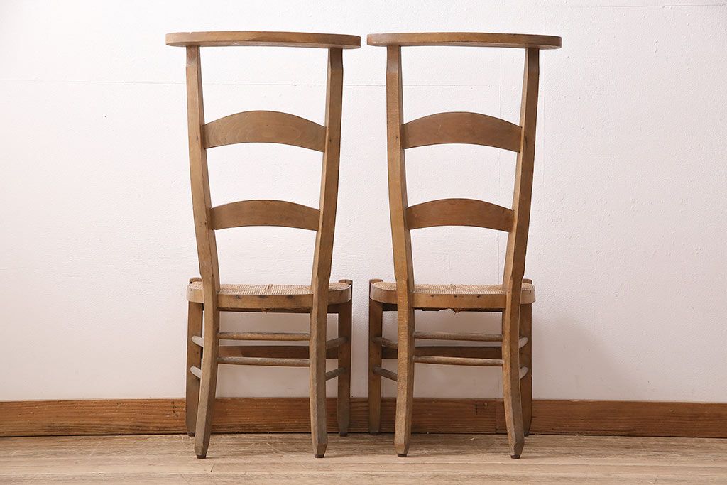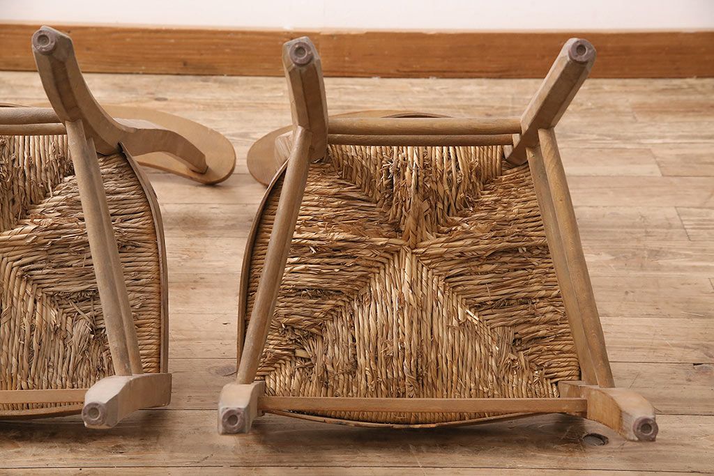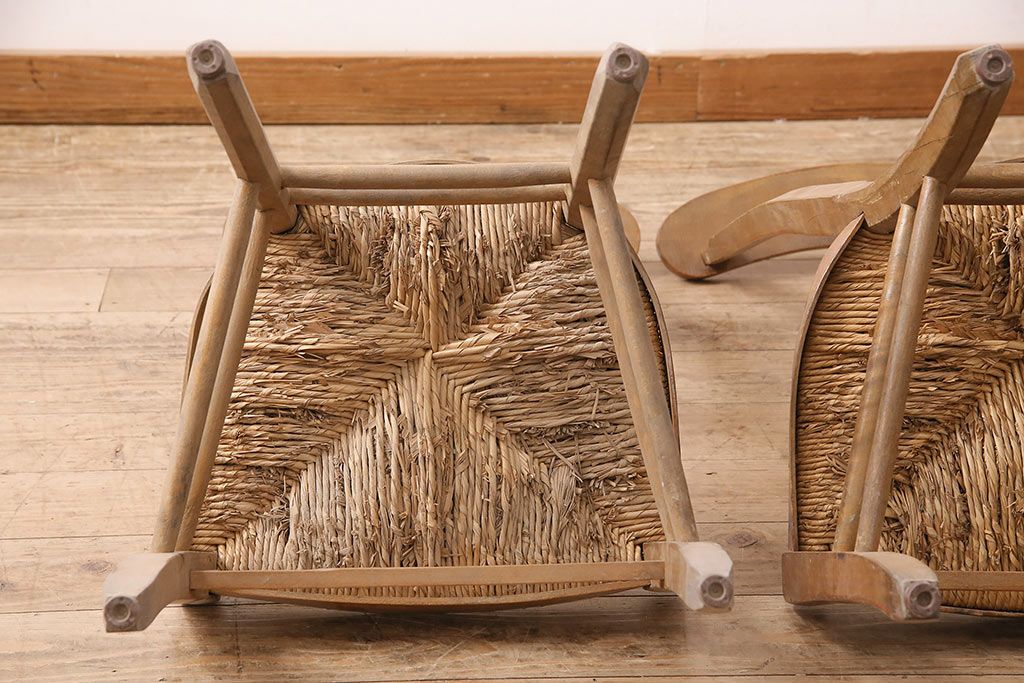 イギリスアンティーク ビーチ材 編み座面のフレンチチャーチチェア2脚セット(椅子、ダイニングチェア)(R-048750)
