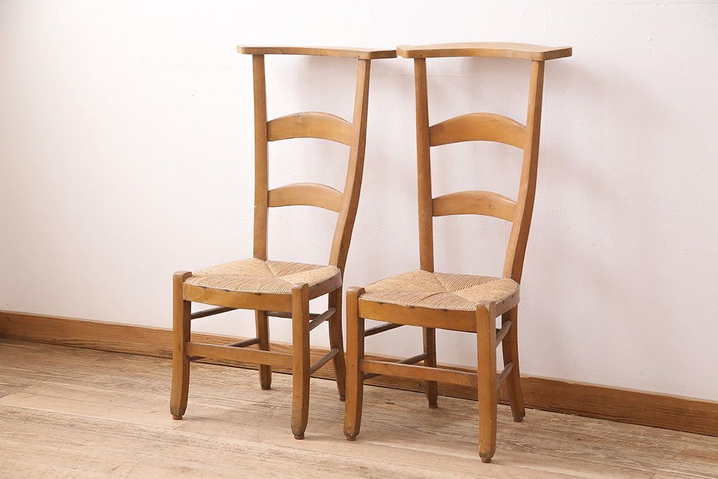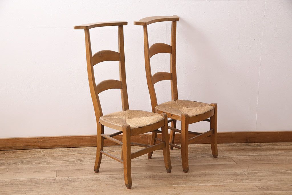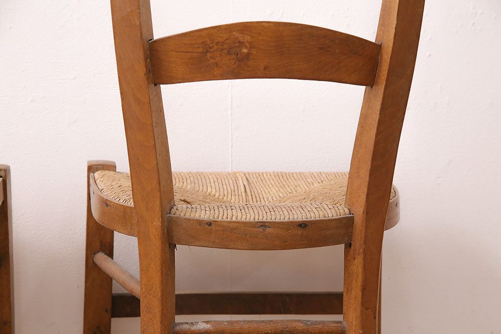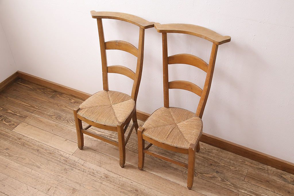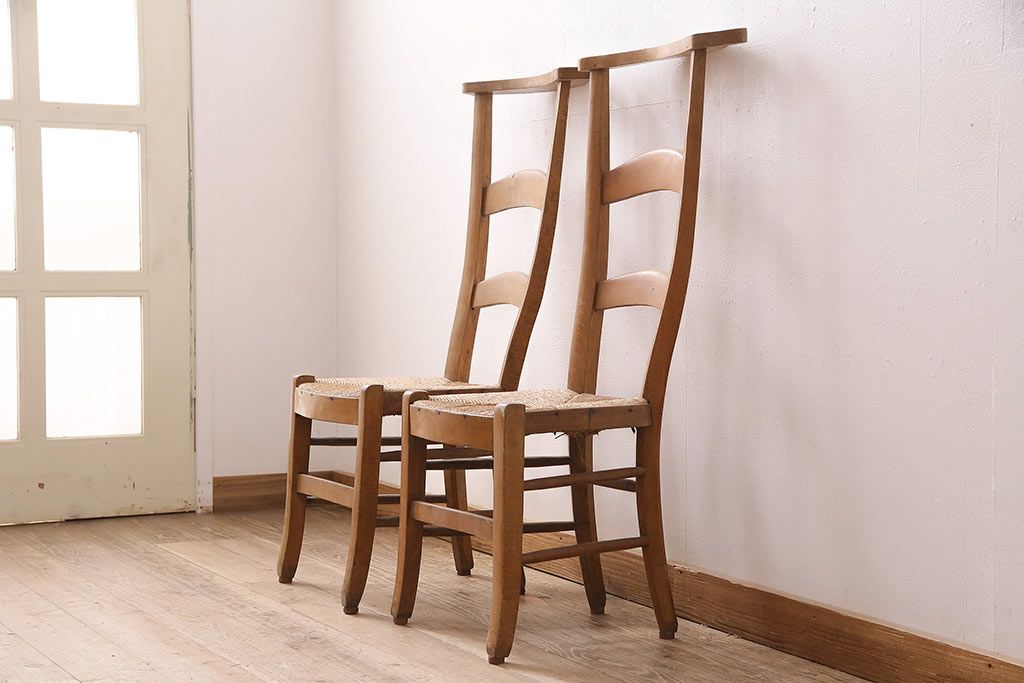 イギリスアンティーク ビーチ材 編み座面のフレンチチャーチチェア2脚セット(椅子、ダイニングチェア)(R-048745)
