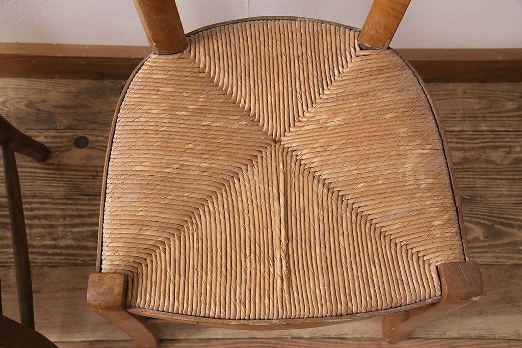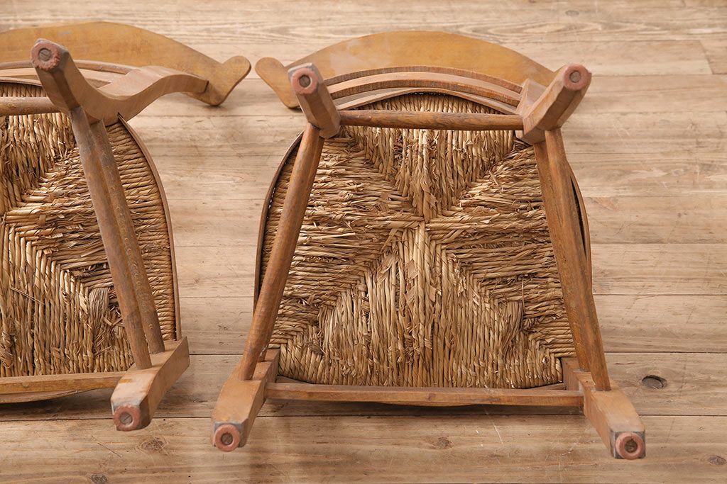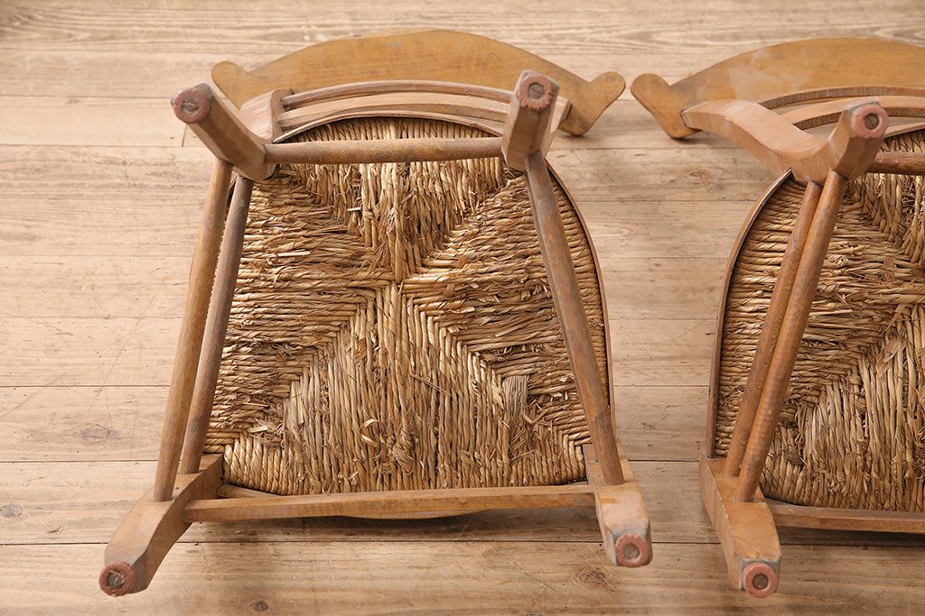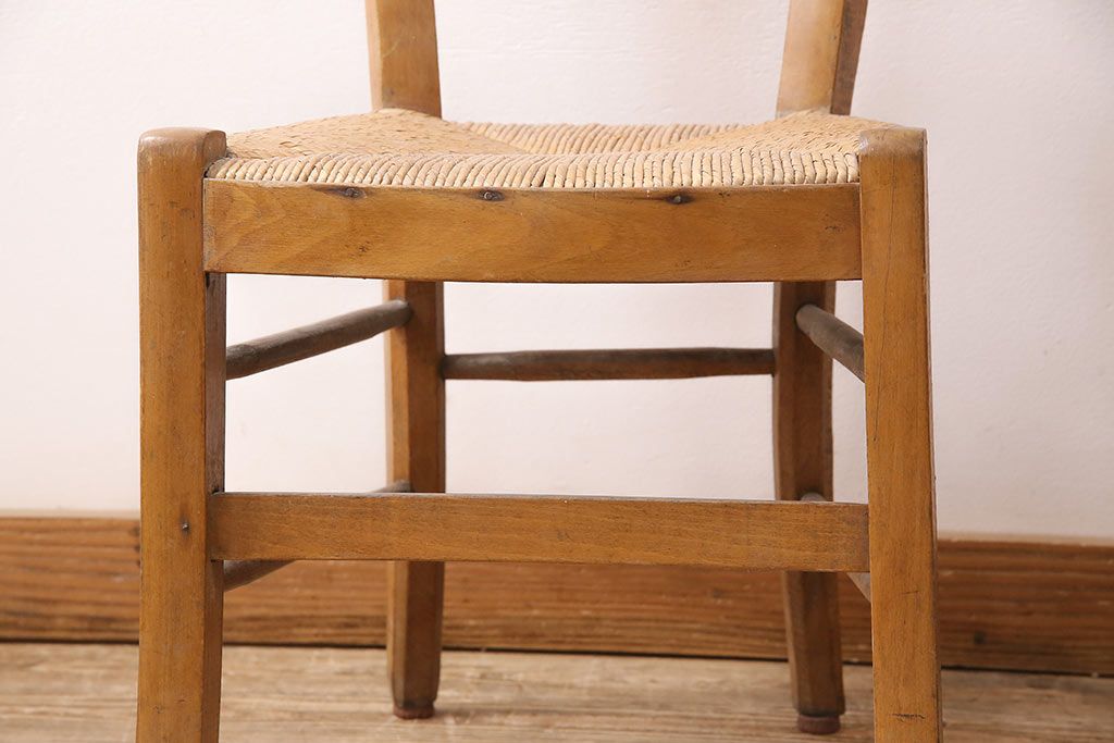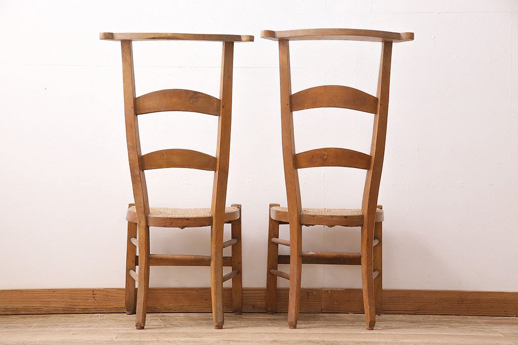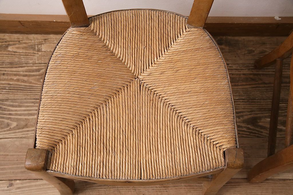 イギリスアンティーク ビーチ材 編み座面のフレンチチャーチチェア2脚セット(椅子、ダイニングチェア)(R-048745)
