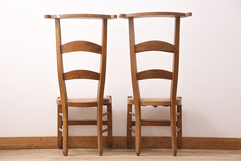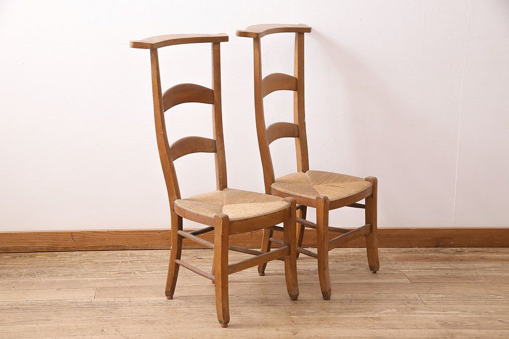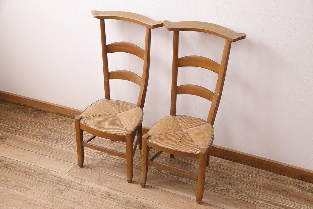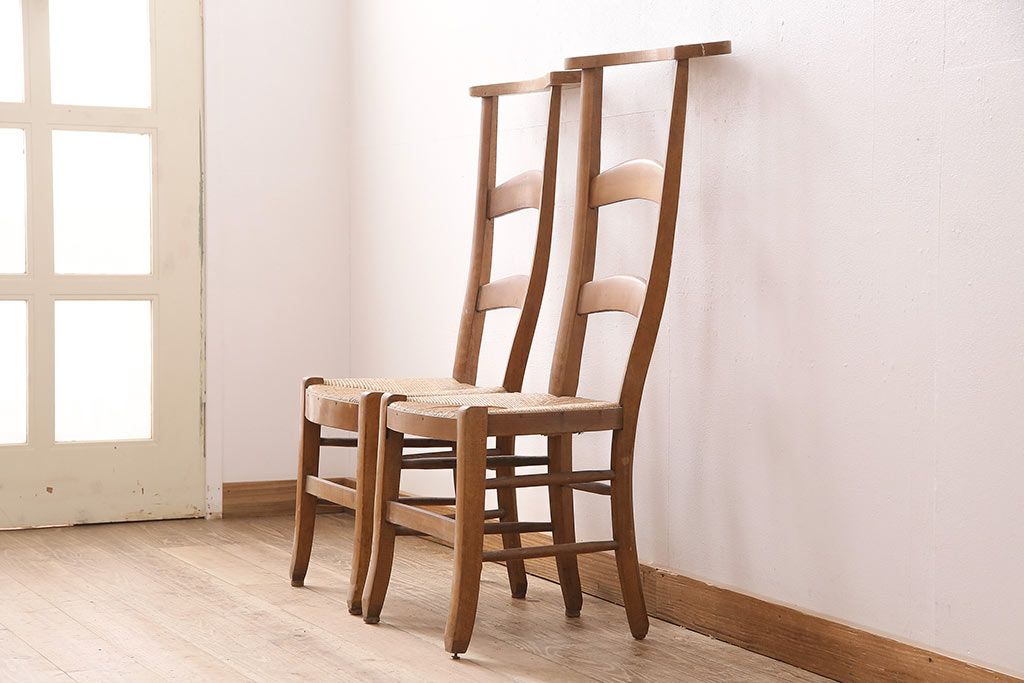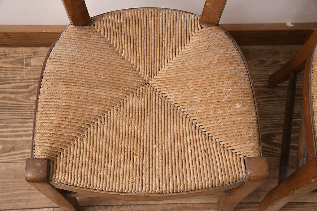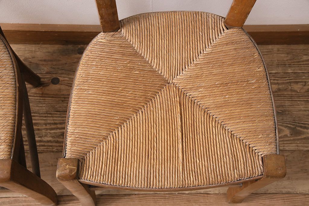 イギリスアンティーク ビーチ材 編み座面のフレンチチャーチチェア2脚セット(椅子、ダイニングチェア)(R-048747)