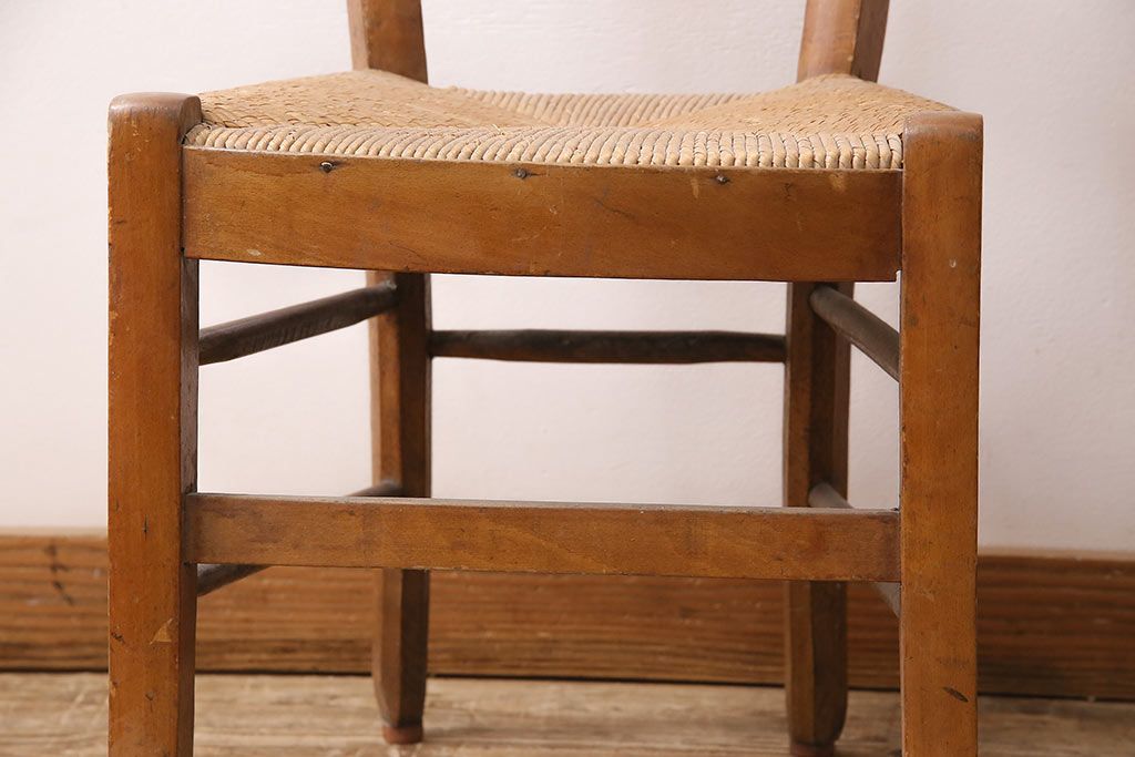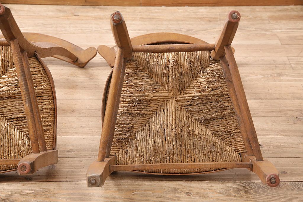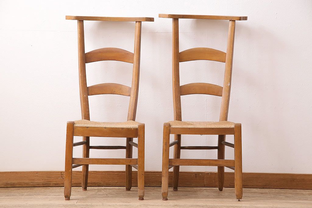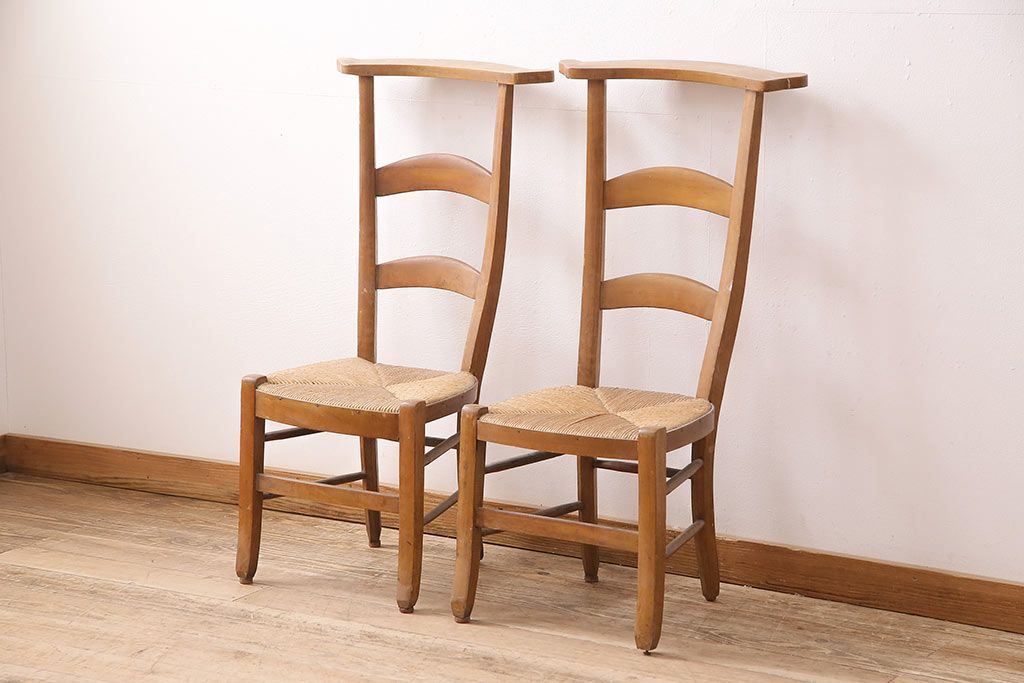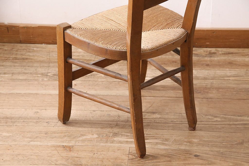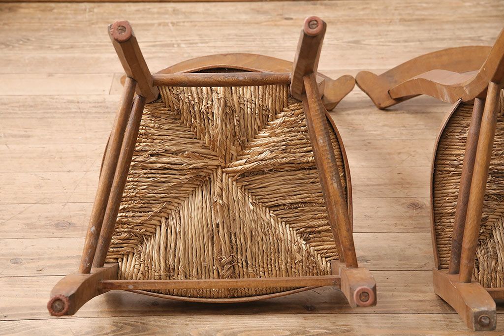 イギリスアンティーク ビーチ材 編み座面のフレンチチャーチチェア2脚セット(椅子、ダイニングチェア)(R-048747)