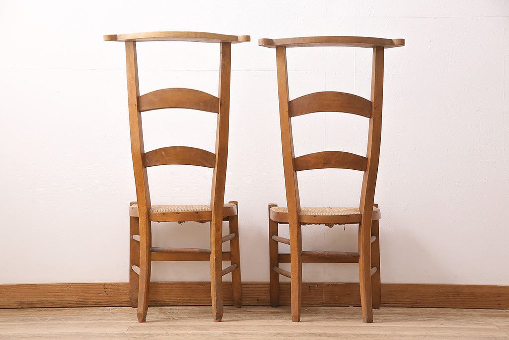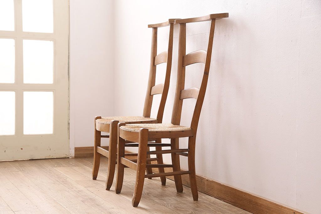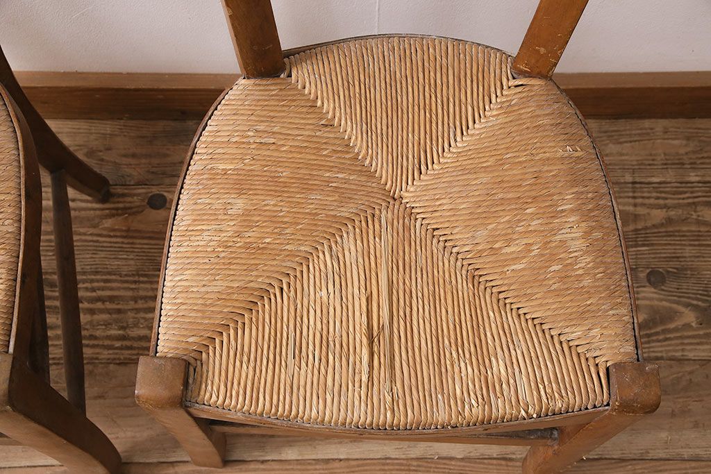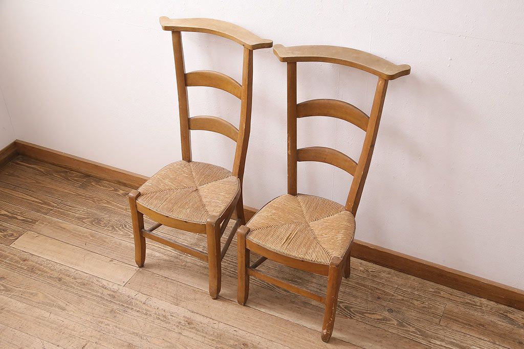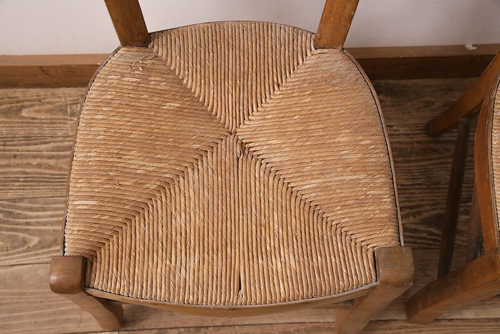 イギリスアンティーク ビーチ材 編み座面のフレンチチャーチチェア2脚セット(椅子、ダイニングチェア)(R-048749)です。