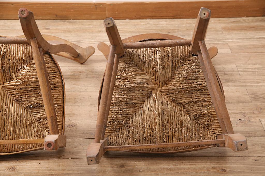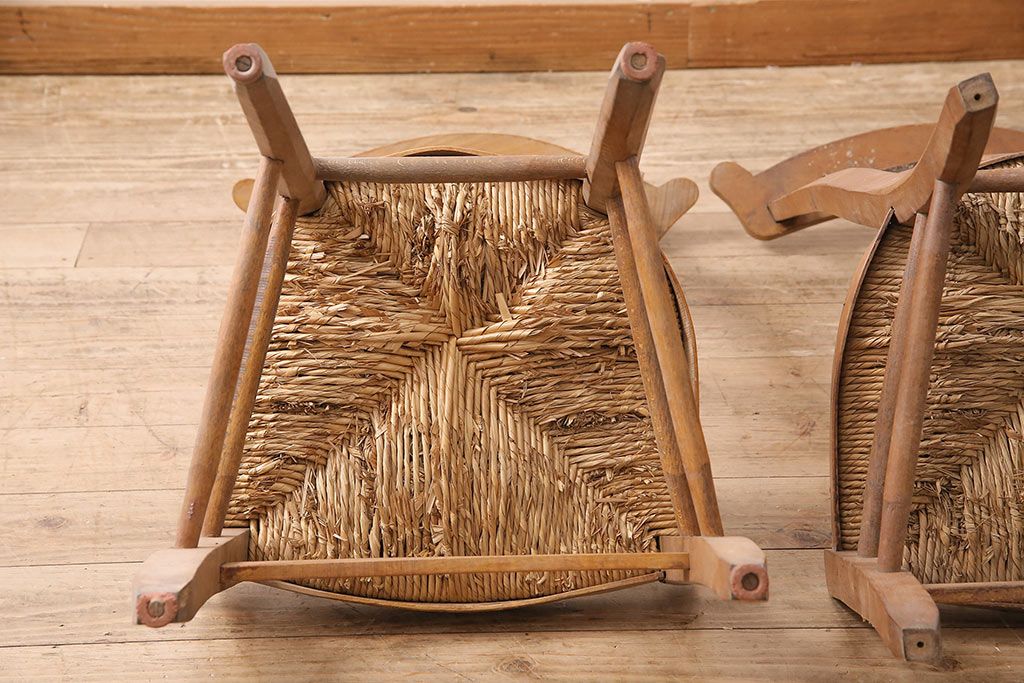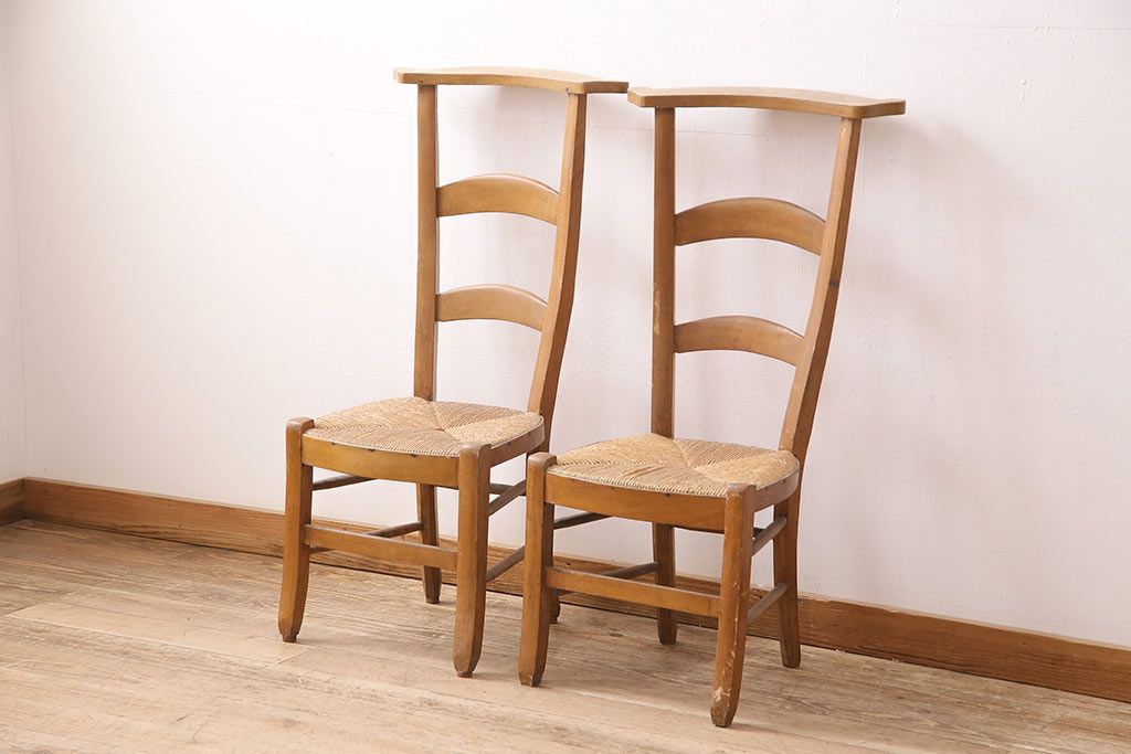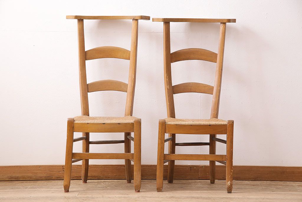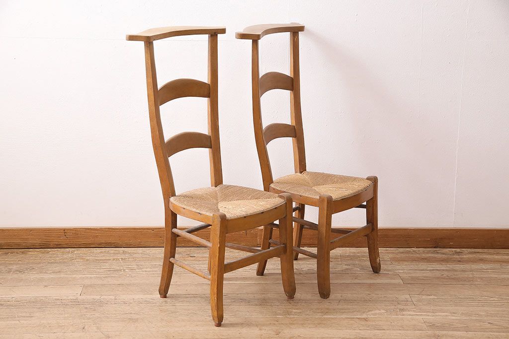 イギリスアンティーク ビーチ材 編み座面のフレンチチャーチチェア2脚セット(椅子、ダイニングチェア)(R-048749)です。