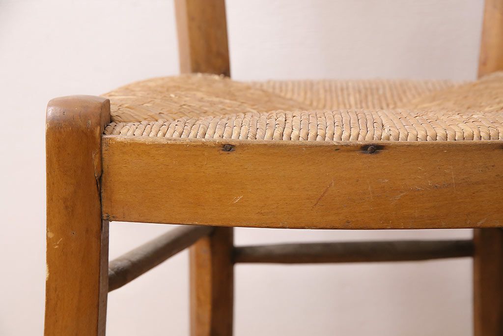 イギリスアンティーク ビーチ材 編み座面のフレンチチャーチチェア2脚セット(椅子、ダイニングチェア)(R-048749)