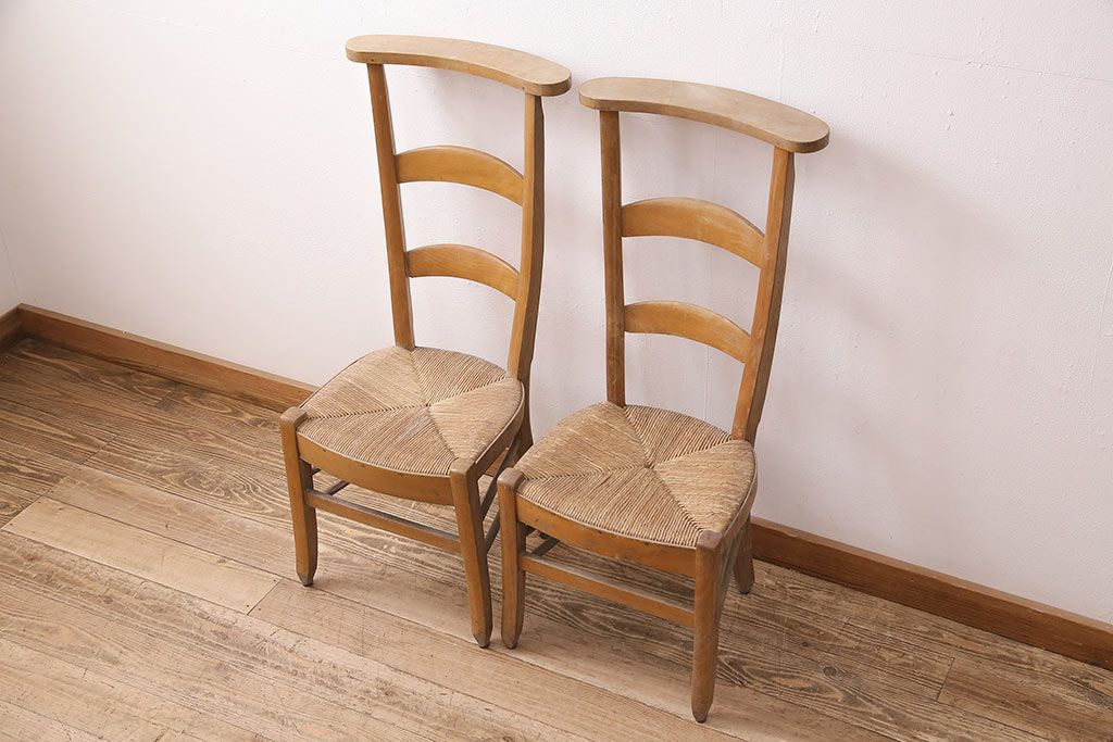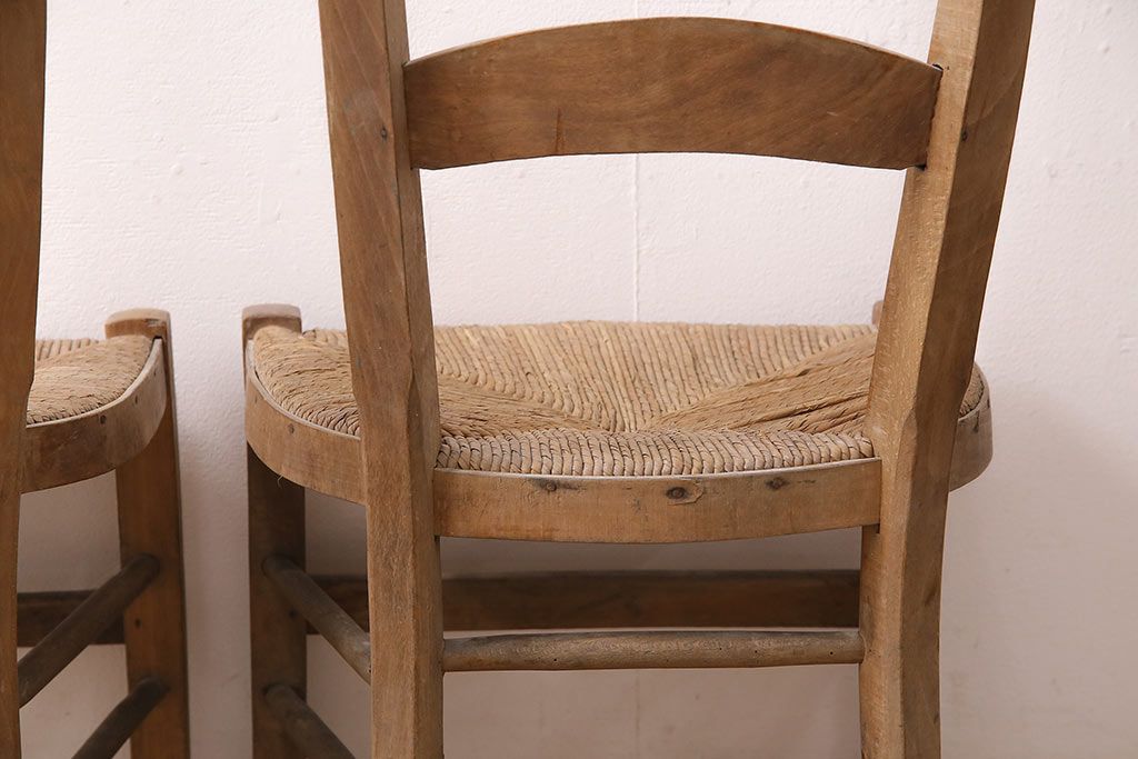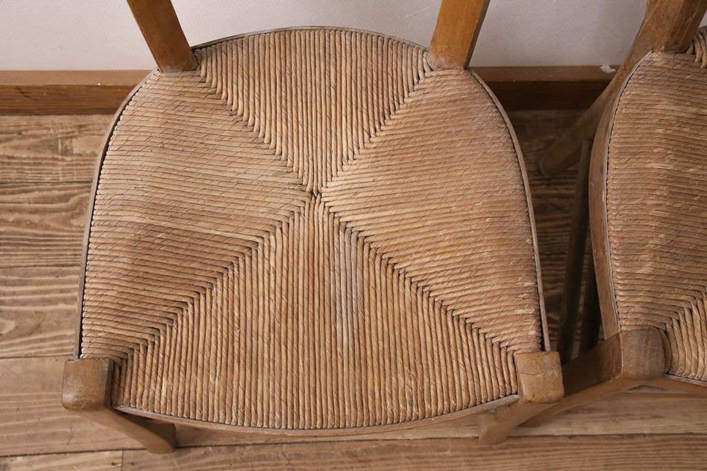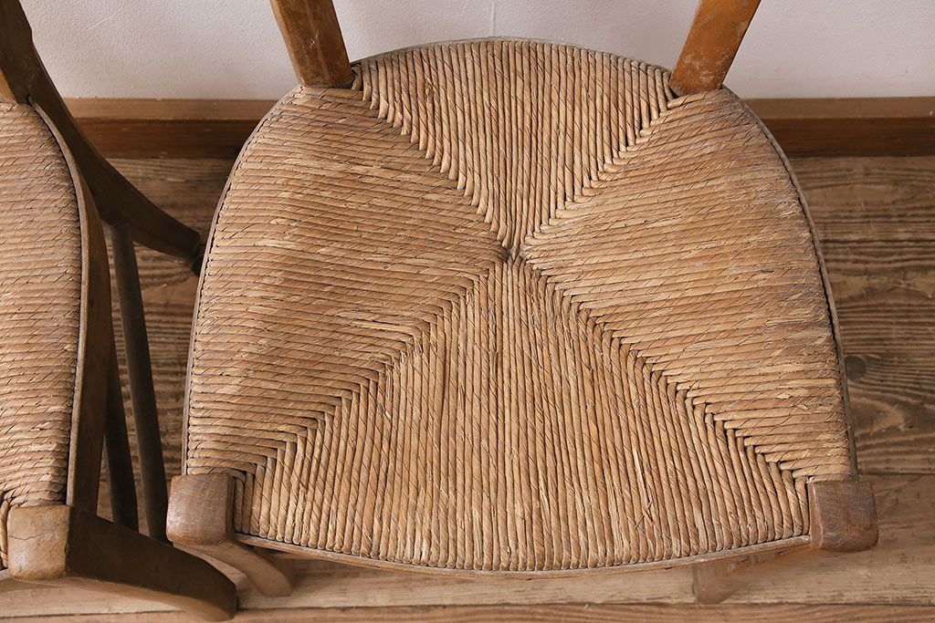椅子・ベンチ> チャーチチェア > 【簡易リペア限定品】イギリスアンティーク ビーチ材 編み座面のフレンチチャーチチェア2脚セット(椅子、イス、ダイニングチェア)(R-048751)