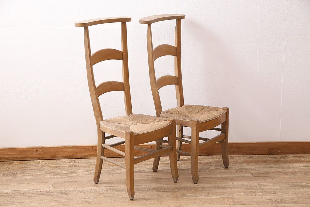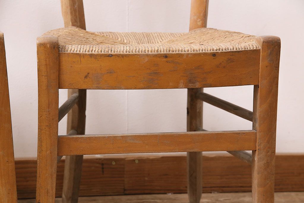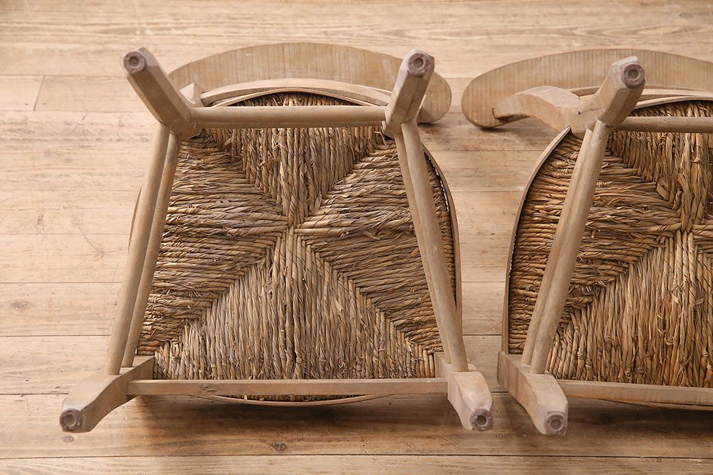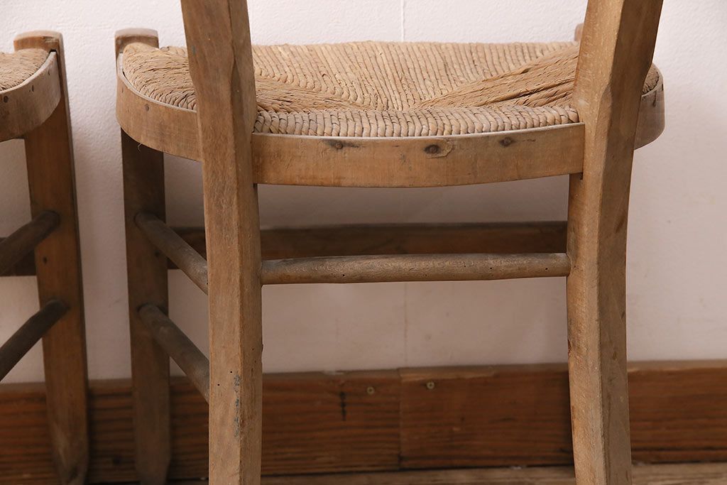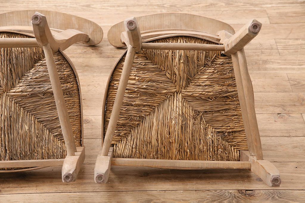 椅子・ベンチ> チャーチチェア > 【簡易リペア限定品】イギリスアンティーク ビーチ材 編み座面のフレンチチャーチチェア2脚セット(椅子、イス、ダイニングチェア)(R-048751)
