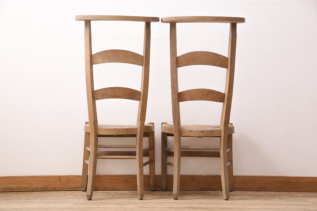 椅子・ベンチ> ダイニングチェア > 【簡易リペア限定品】イギリスアンティーク ビーチ材 編み座面のフレンチチャーチチェア2脚セット(椅子、イス、ダイニングチェア)(R-048751)
